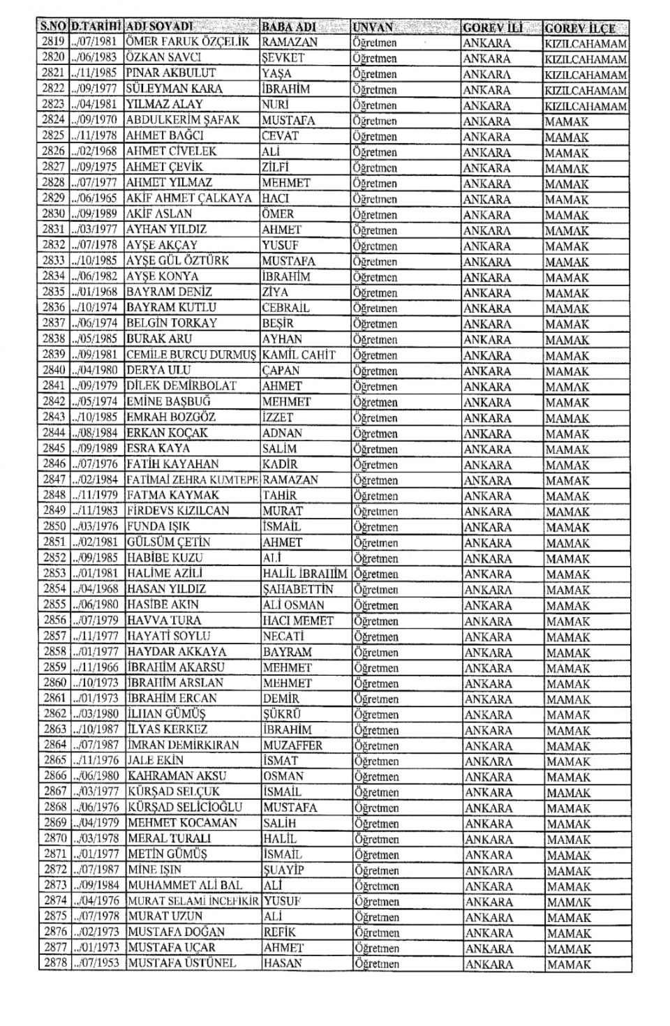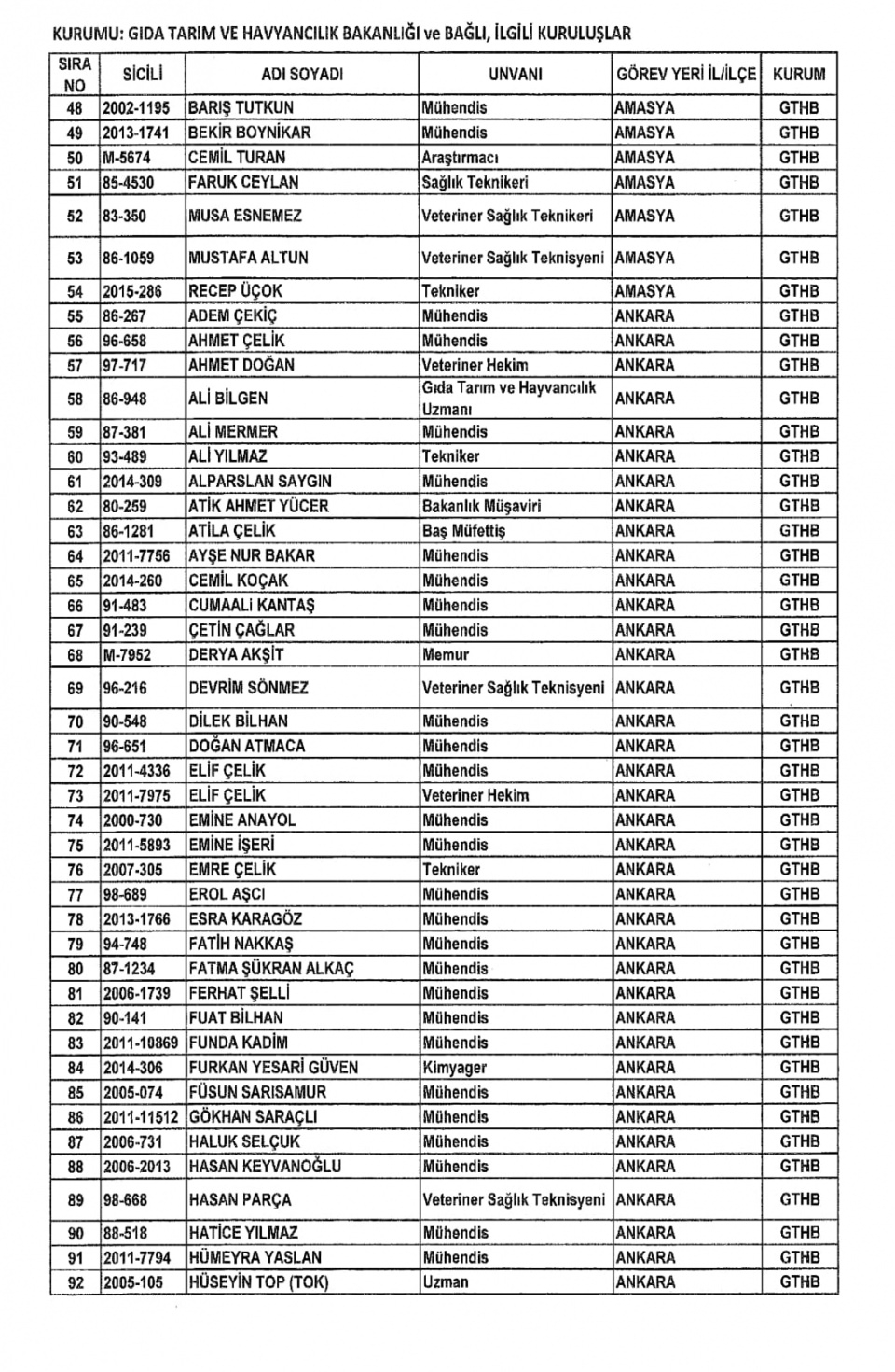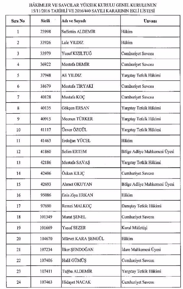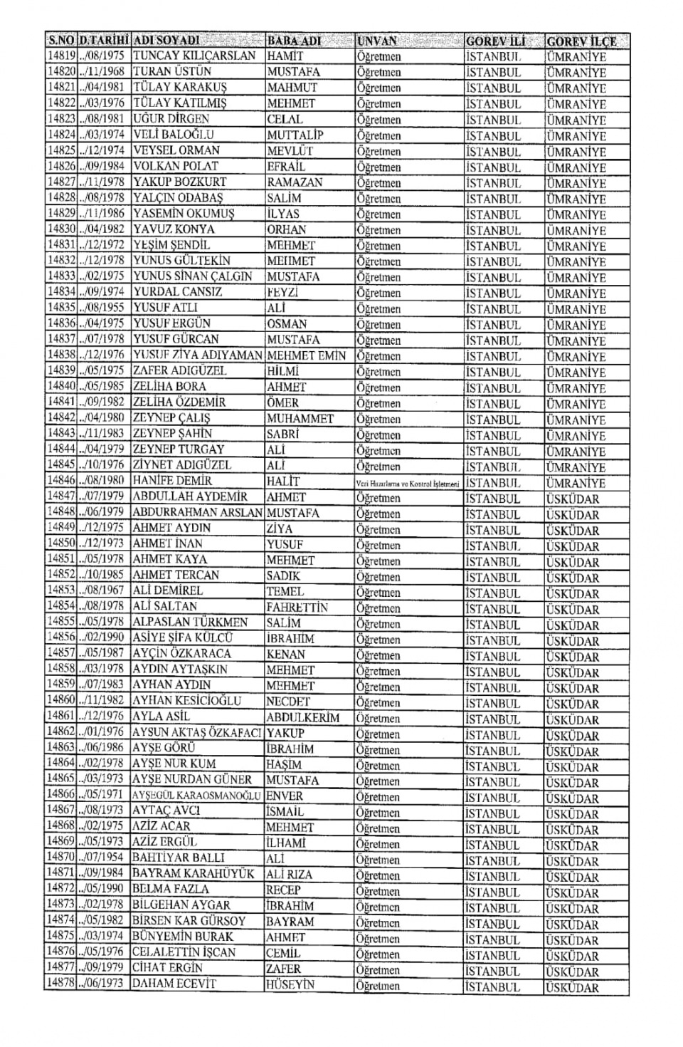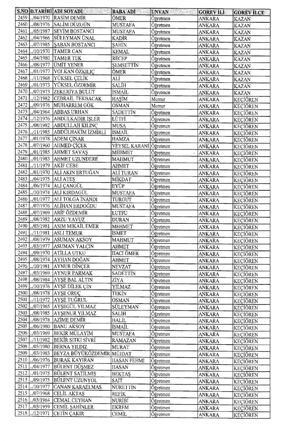 Kararda, daha önce Resmi gazete'de yayımlanan '667 sayılı Olağanüstü Hal Kapsamında Alınan Tedbirlere İlişkin Kanun Hükmünde Kararnamenin (KHK) 3'üncü maddesi uyarınca ismi ekli listede bulunan kişilerin FETÖ/PDY örgütü ile iltisak ve irtibatları olduğunun sabit görüldüğü' için meslekten çıkarıldıkları belirtildi. (DHA)