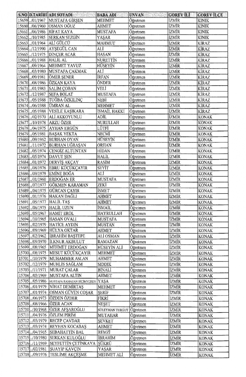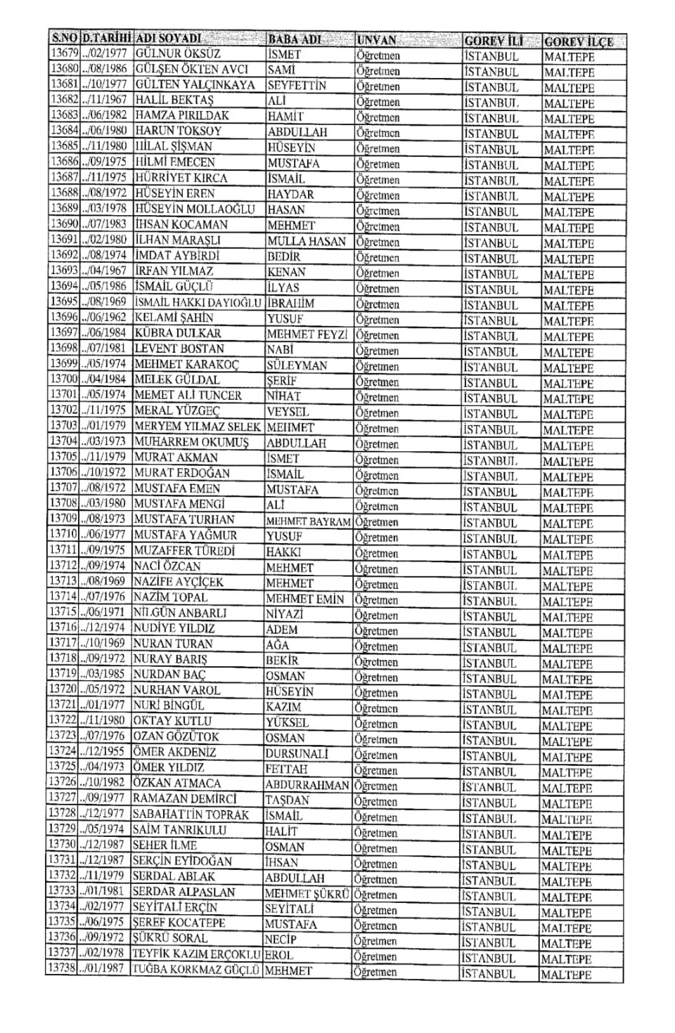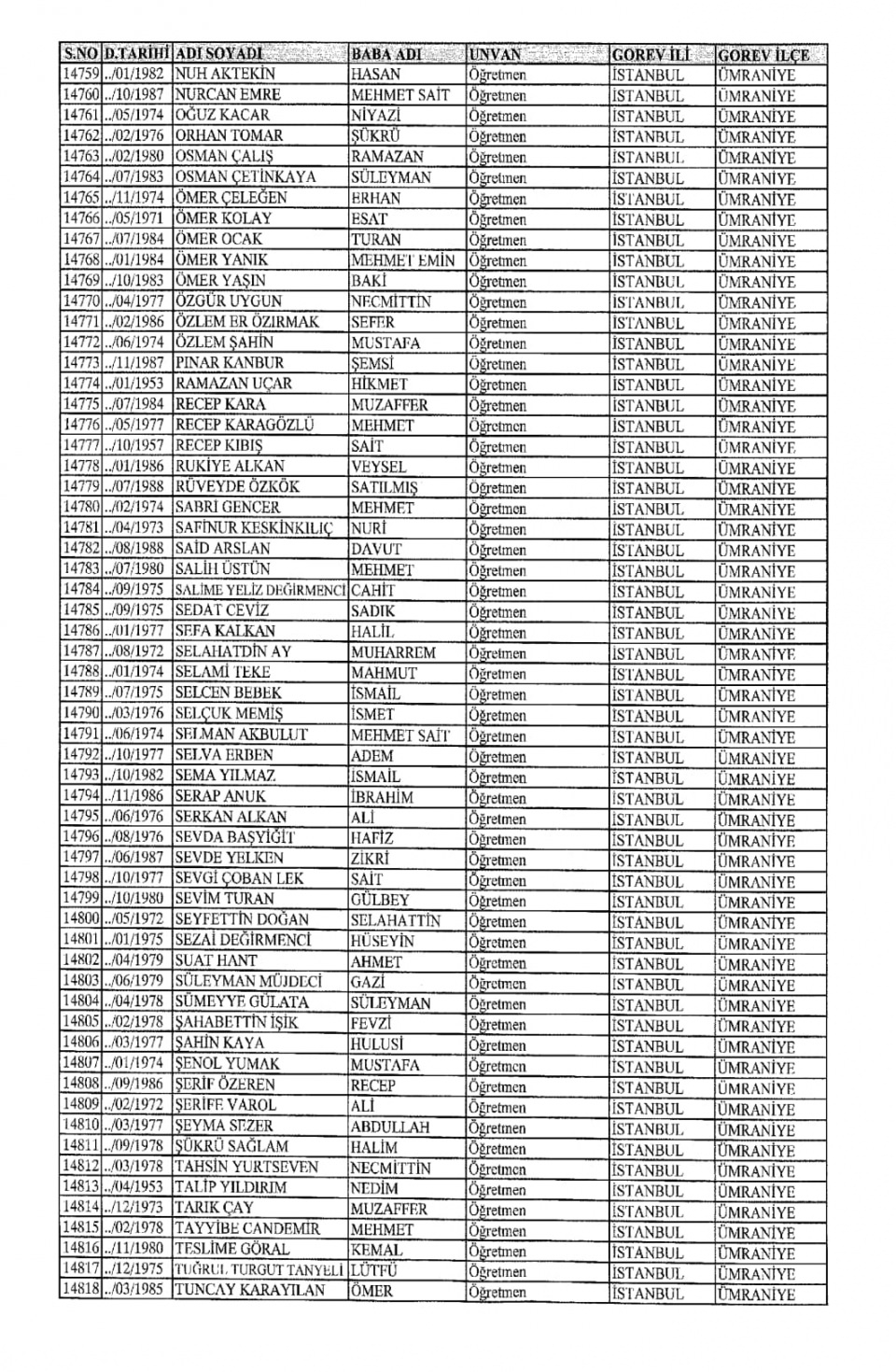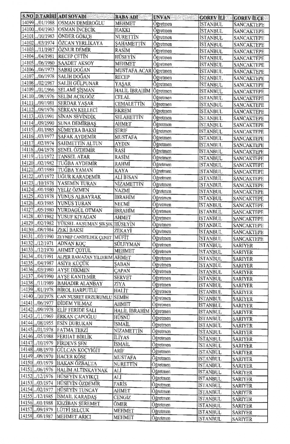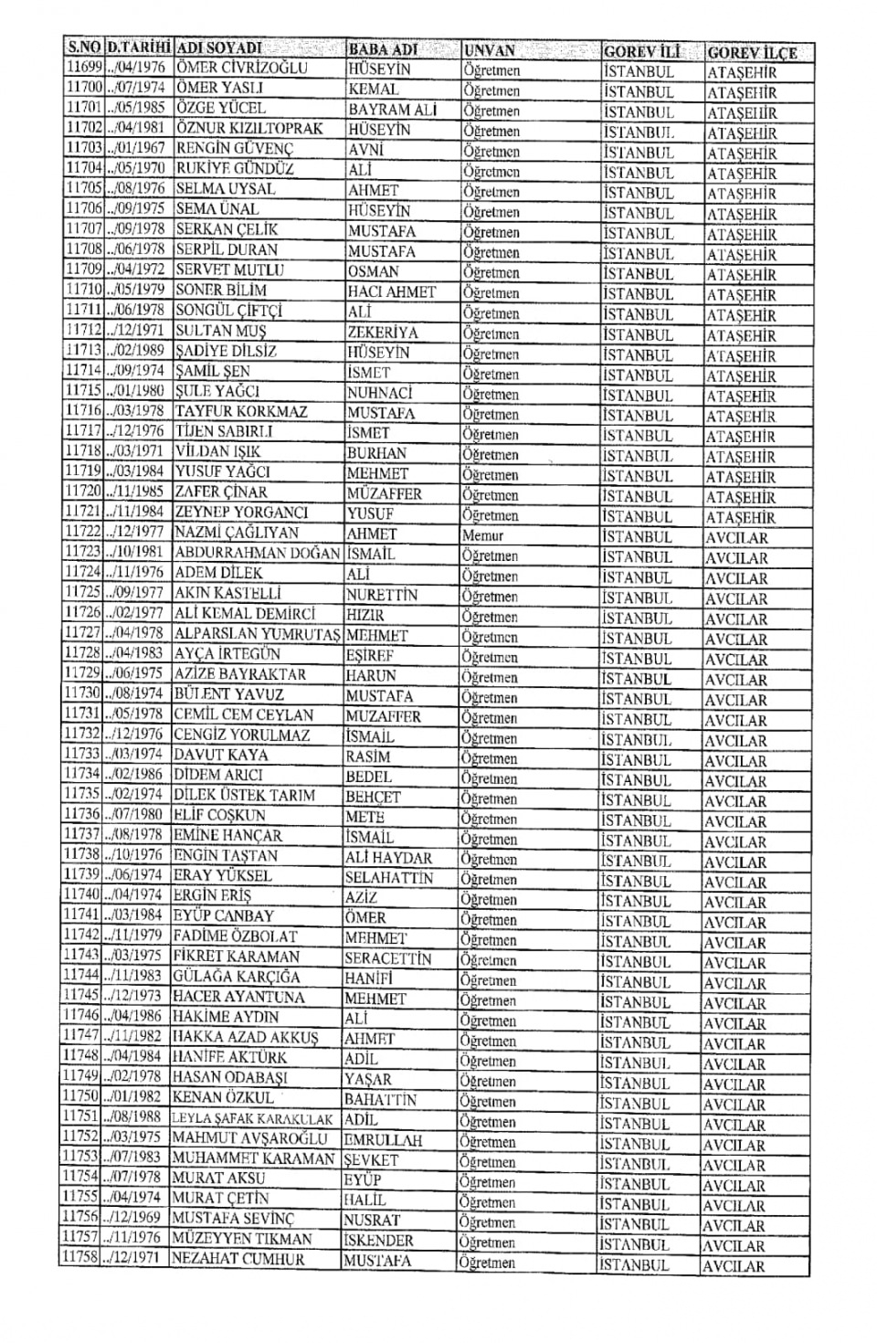 Kararda, daha önce Resmi gazete'de yayımlanan '667 sayılı Olağanüstü Hal Kapsamında Alınan Tedbirlere İlişkin Kanun Hükmünde Kararnamenin (KHK) 3'üncü maddesi uyarınca ismi ekli listede bulunan kişilerin FETÖ/PDY örgütü ile iltisak ve irtibatları olduğunun sabit görüldüğü' için meslekten çıkarıldıkları belirtildi. (DHA)