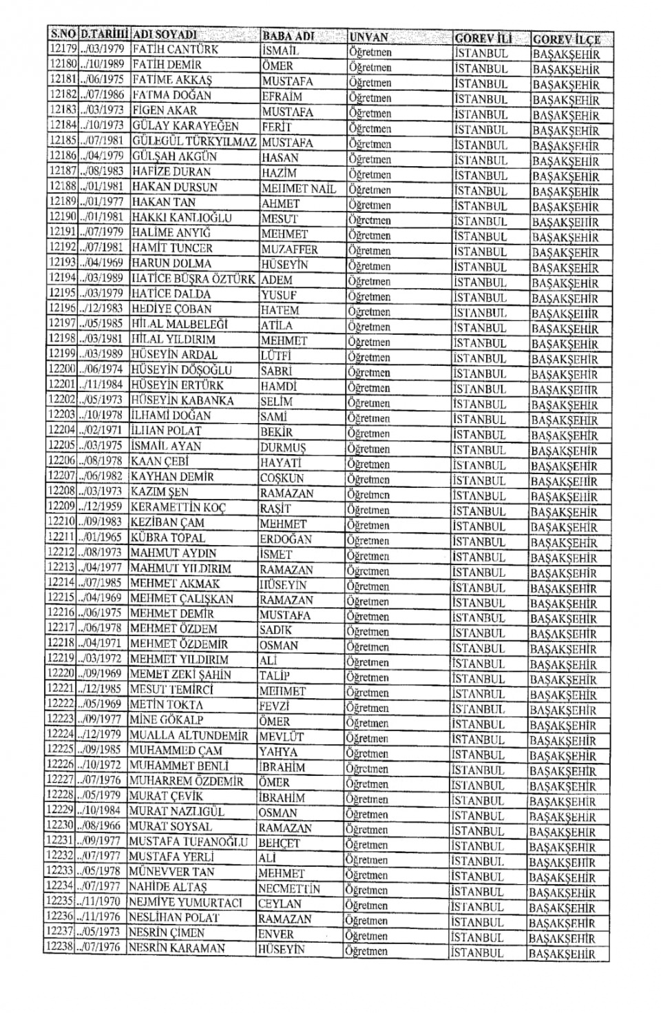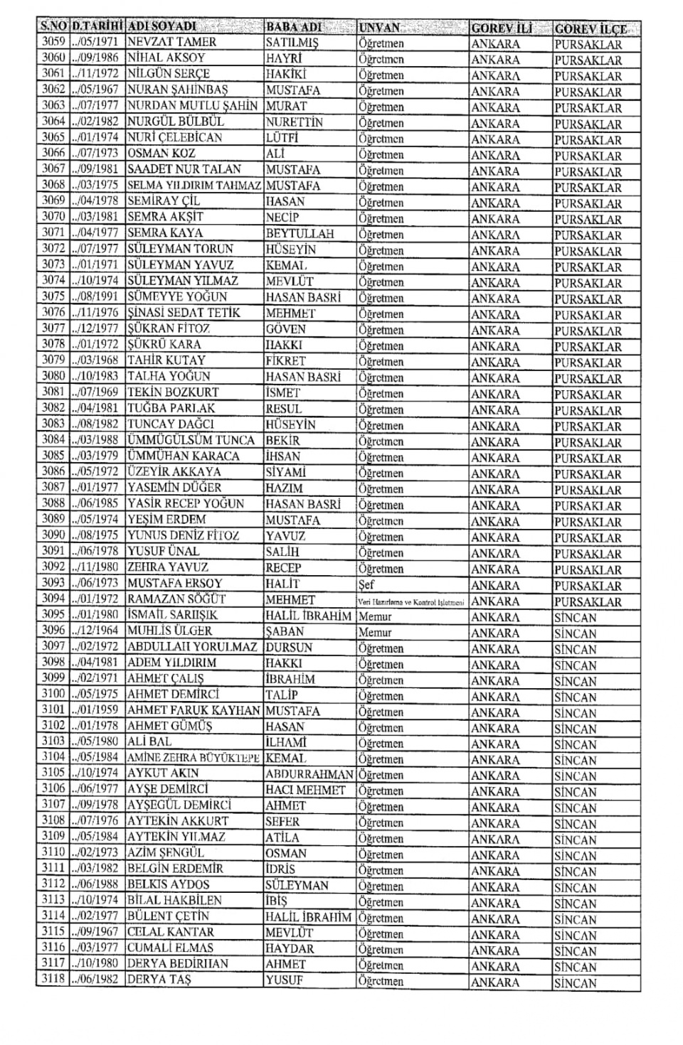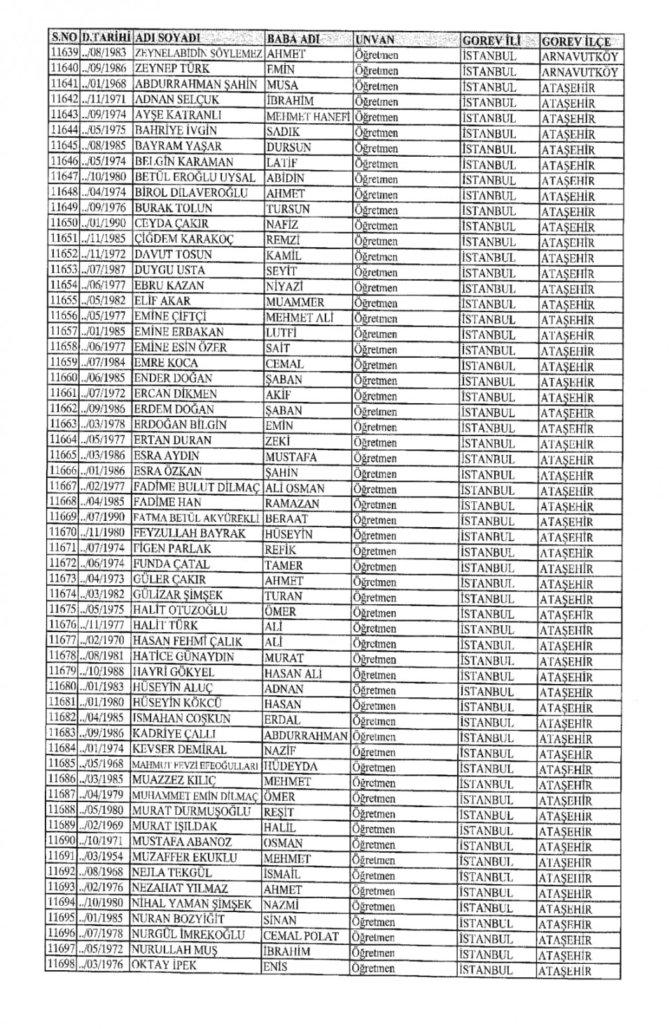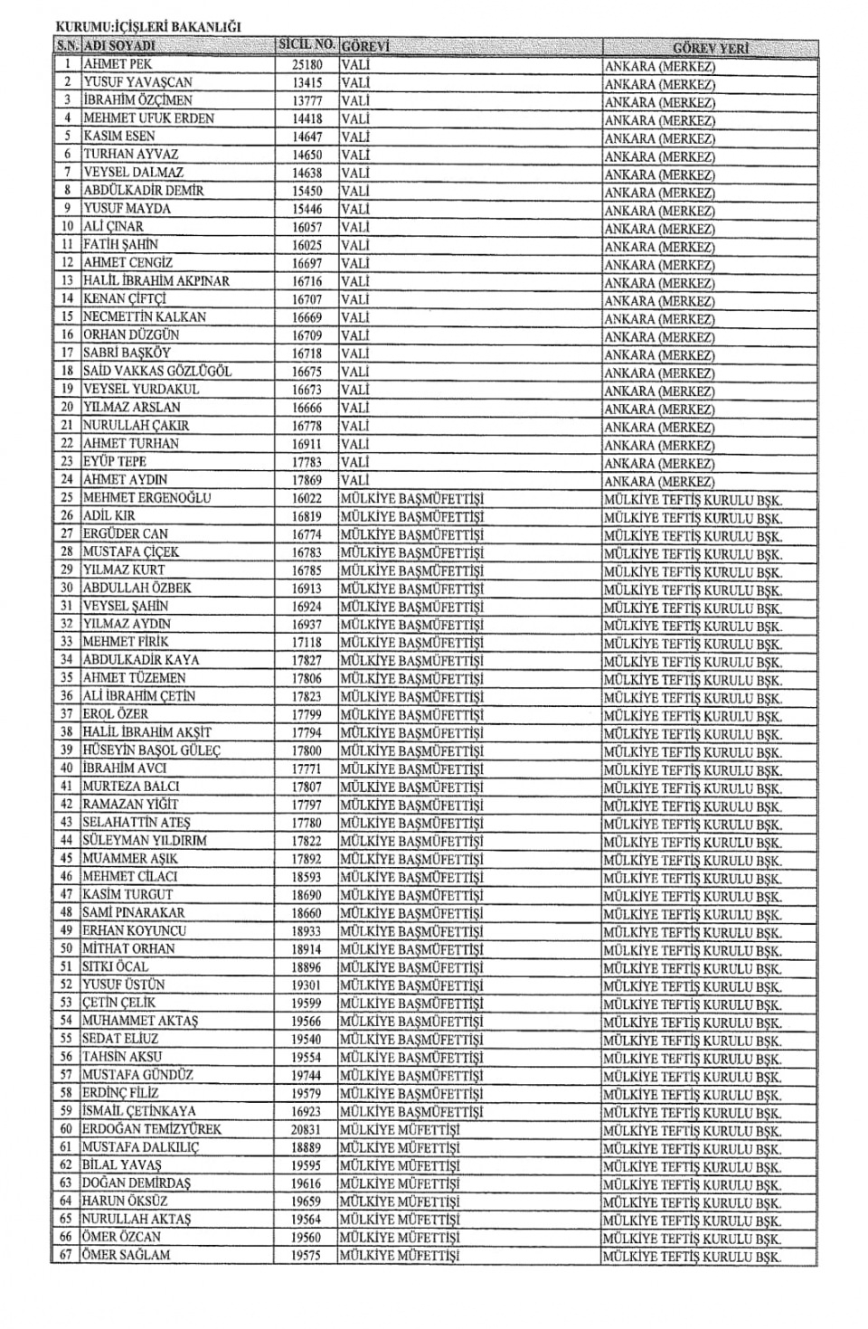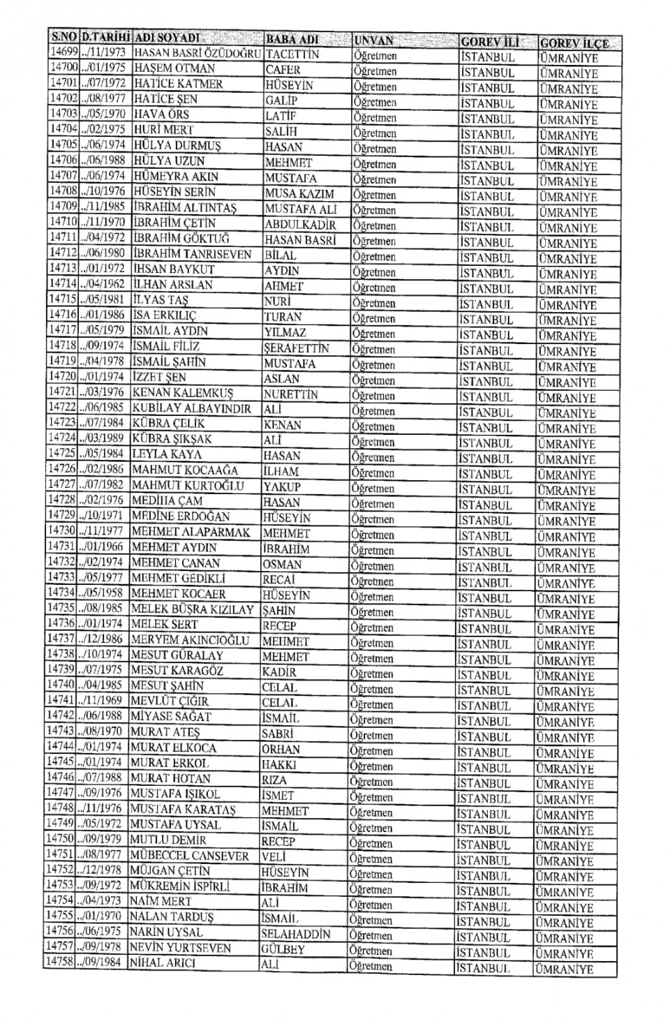 Kararda, daha önce Resmi gazete'de yayımlanan '667 sayılı Olağanüstü Hal Kapsamında Alınan Tedbirlere İlişkin Kanun Hükmünde Kararnamenin (KHK) 3'üncü maddesi uyarınca ismi ekli listede bulunan kişilerin FETÖ/PDY örgütü ile iltisak ve irtibatları olduğunun sabit görüldüğü' için meslekten çıkarıldıkları belirtildi. (DHA)