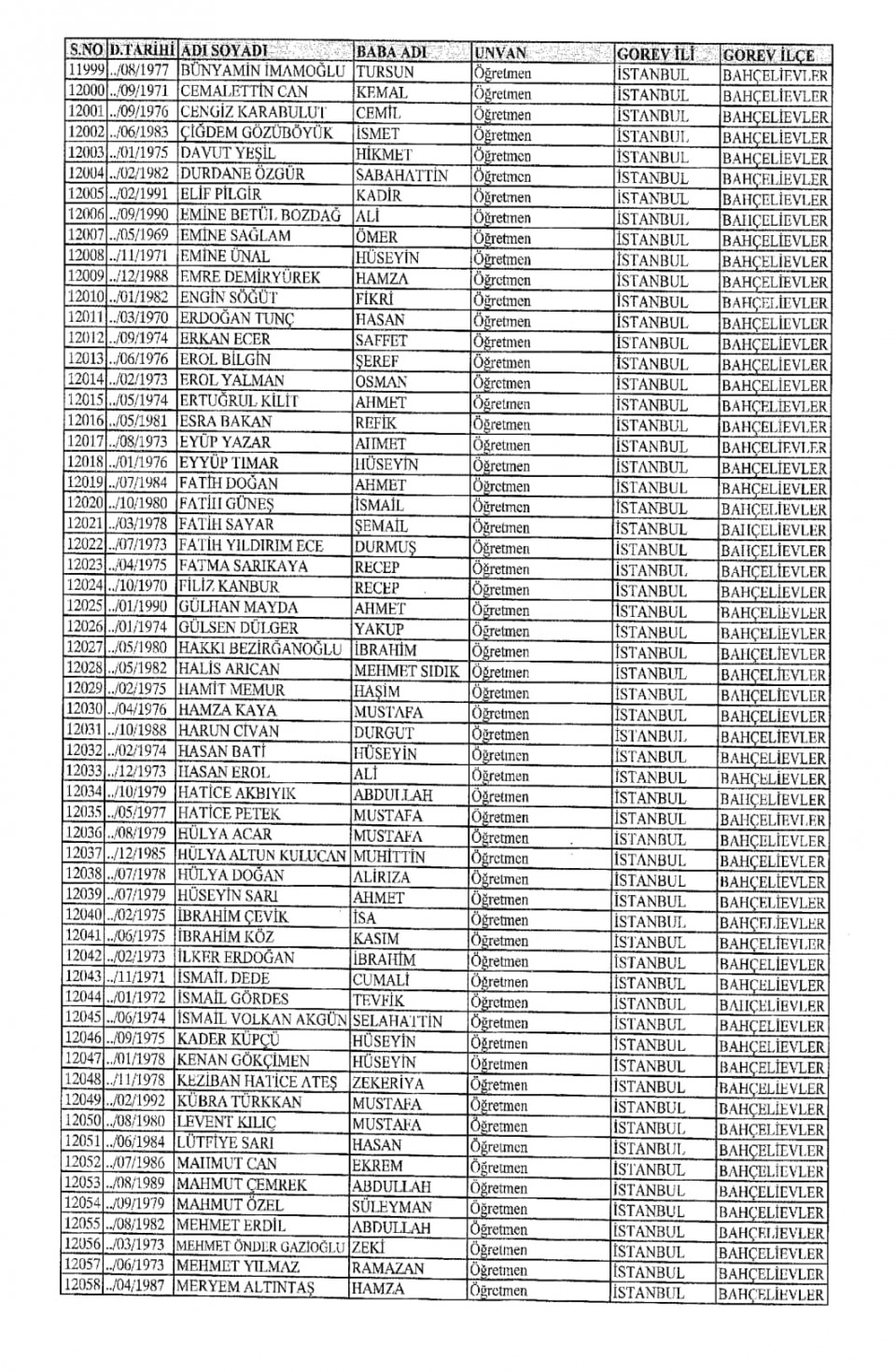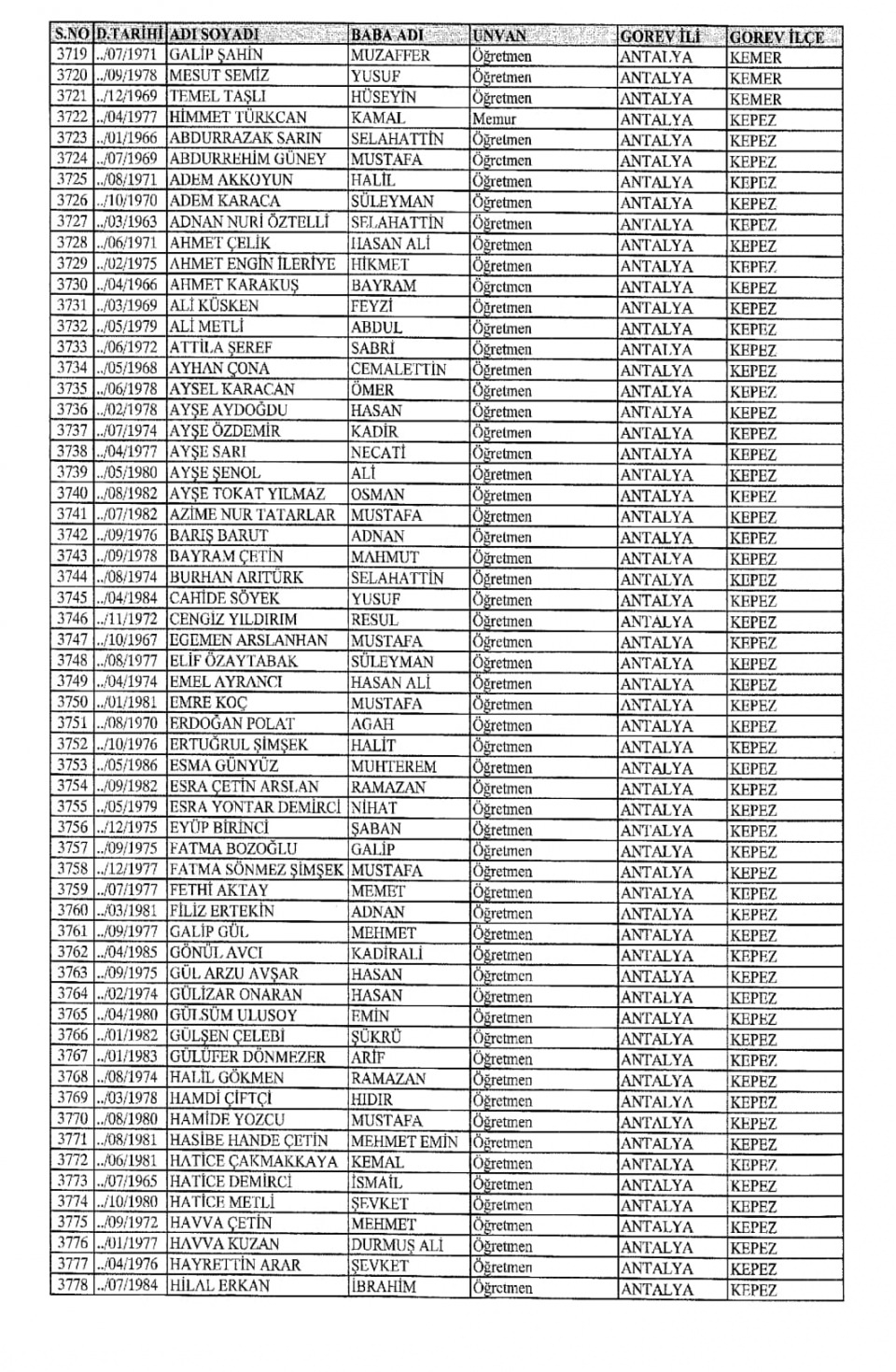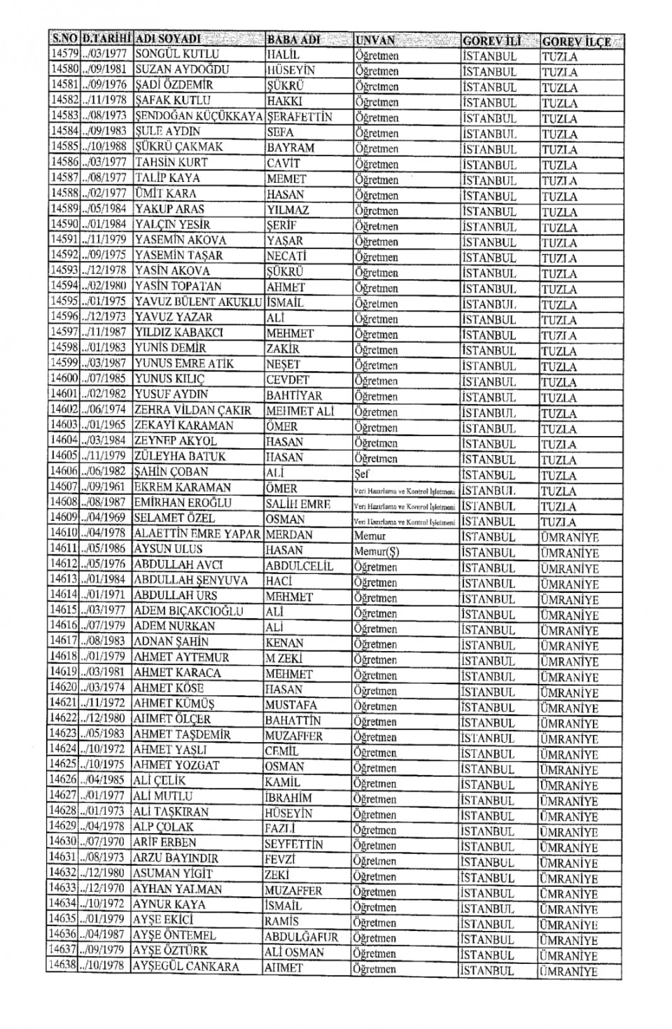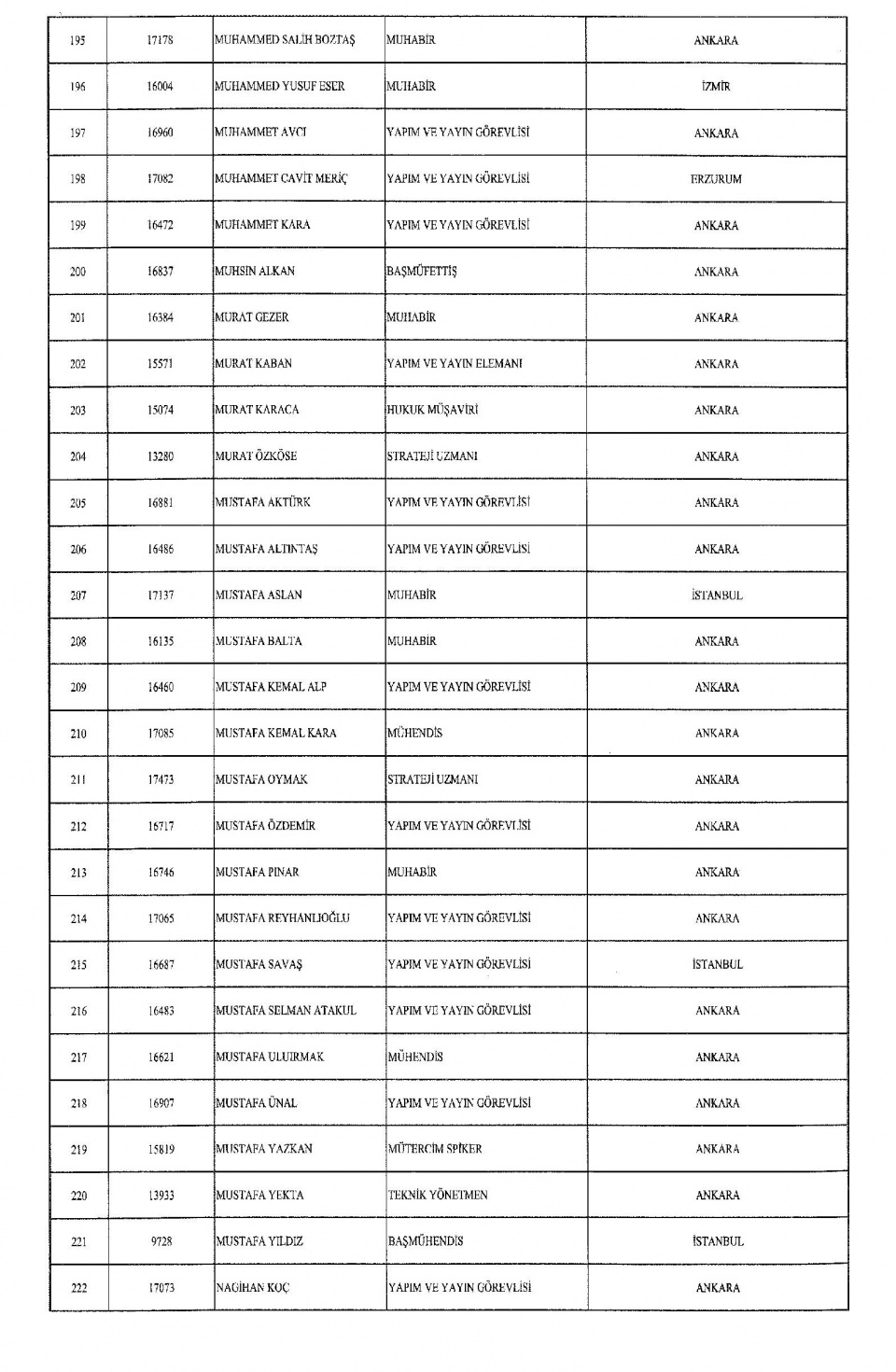 Kararda, daha önce Resmi gazete'de yayımlanan '667 sayılı Olağanüstü Hal Kapsamında Alınan Tedbirlere İlişkin Kanun Hükmünde Kararnamenin (KHK) 3'üncü maddesi uyarınca ismi ekli listede bulunan kişilerin FETÖ/PDY örgütü ile iltisak ve irtibatları olduğunun sabit görüldüğü' için meslekten çıkarıldıkları belirtildi. (DHA)