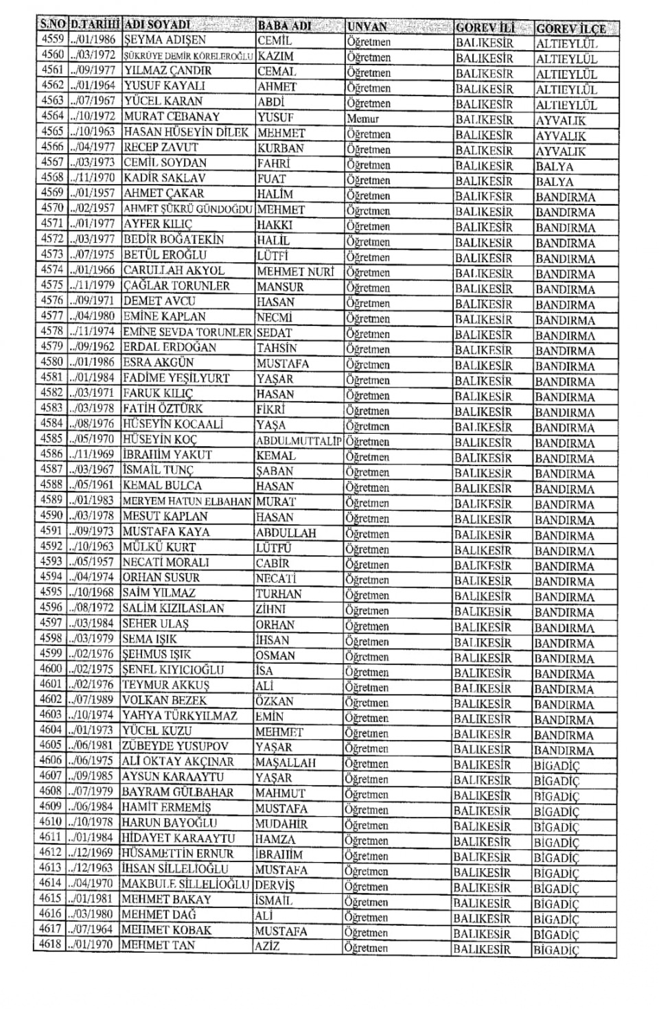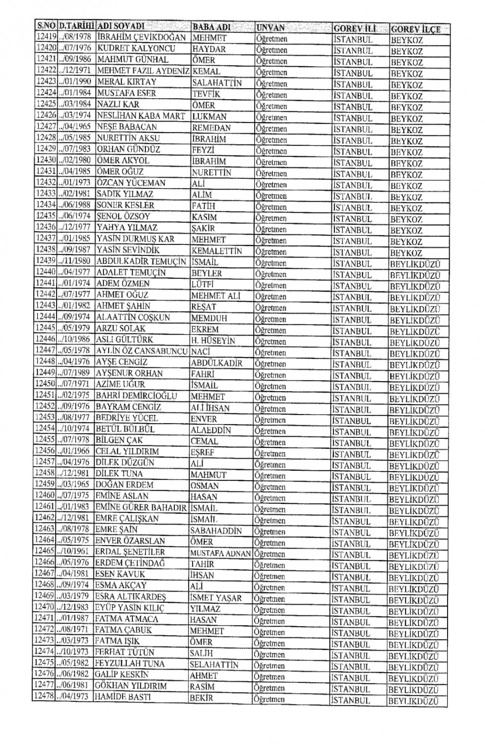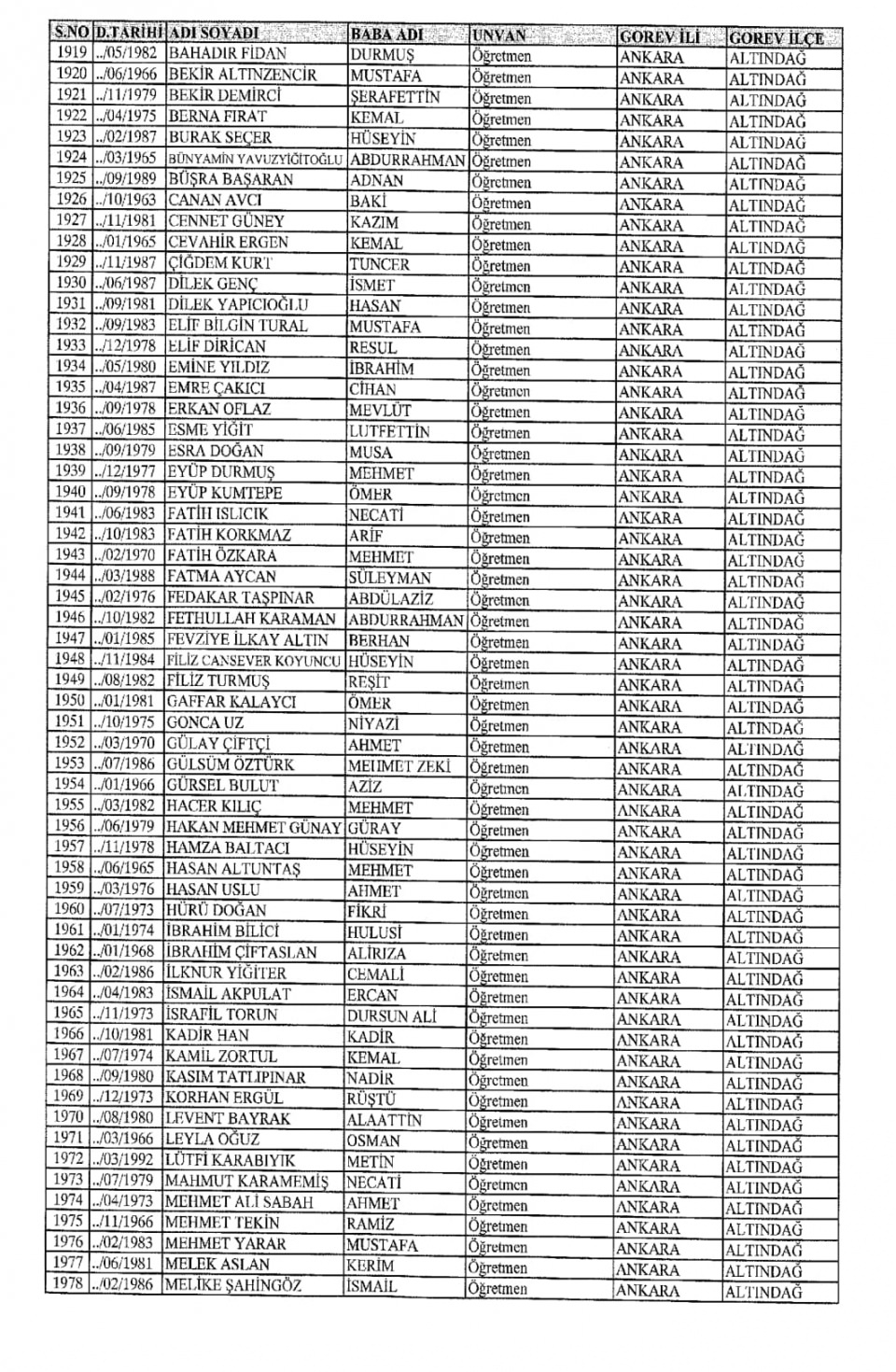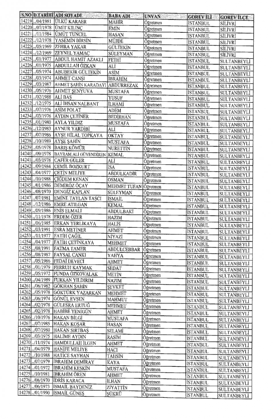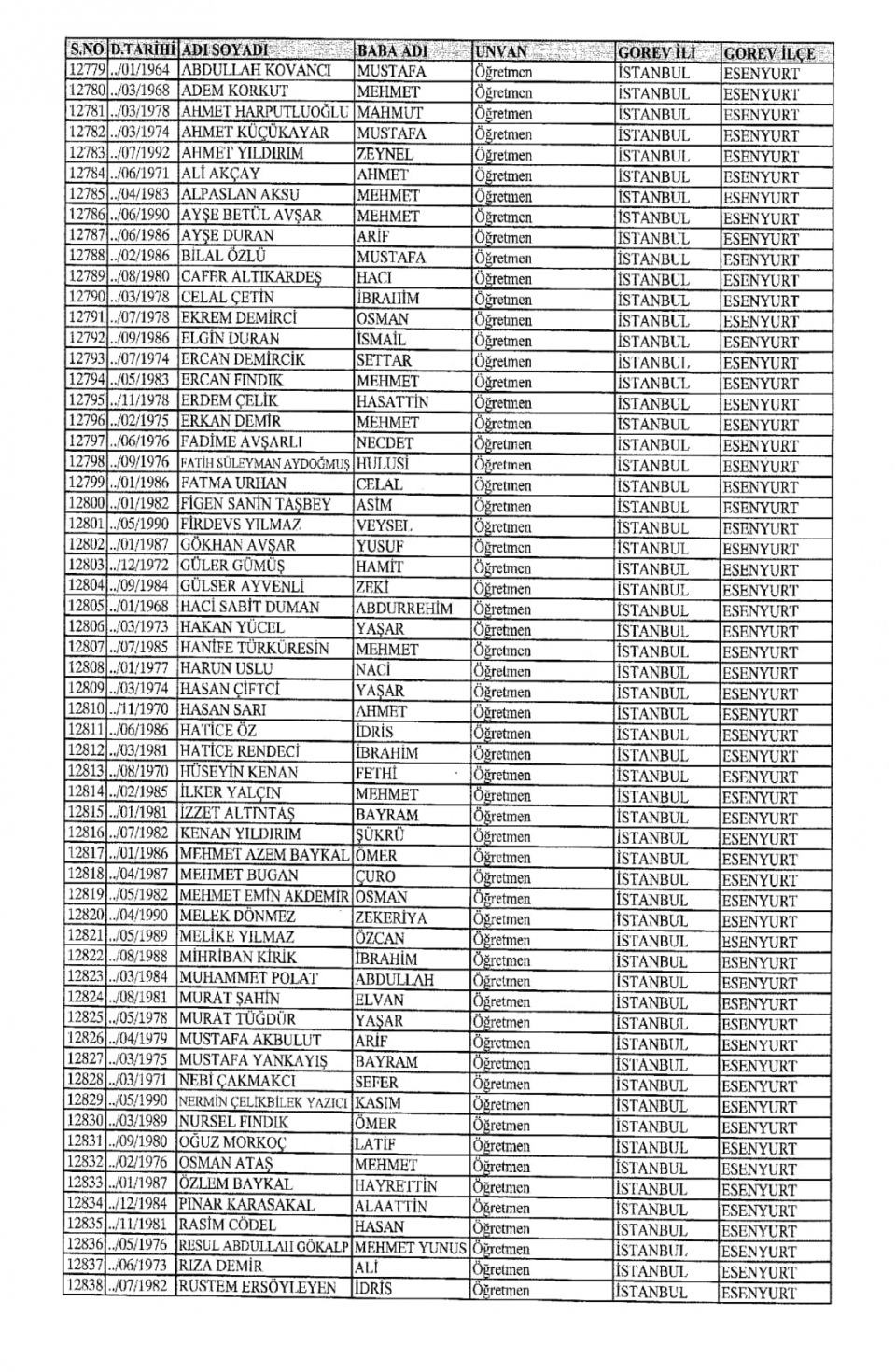 Kararda, daha önce Resmi gazete'de yayımlanan '667 sayılı Olağanüstü Hal Kapsamında Alınan Tedbirlere İlişkin Kanun Hükmünde Kararnamenin (KHK) 3'üncü maddesi uyarınca ismi ekli listede bulunan kişilerin FETÖ/PDY örgütü ile iltisak ve irtibatları olduğunun sabit görüldüğü' için meslekten çıkarıldıkları belirtildi. (DHA)