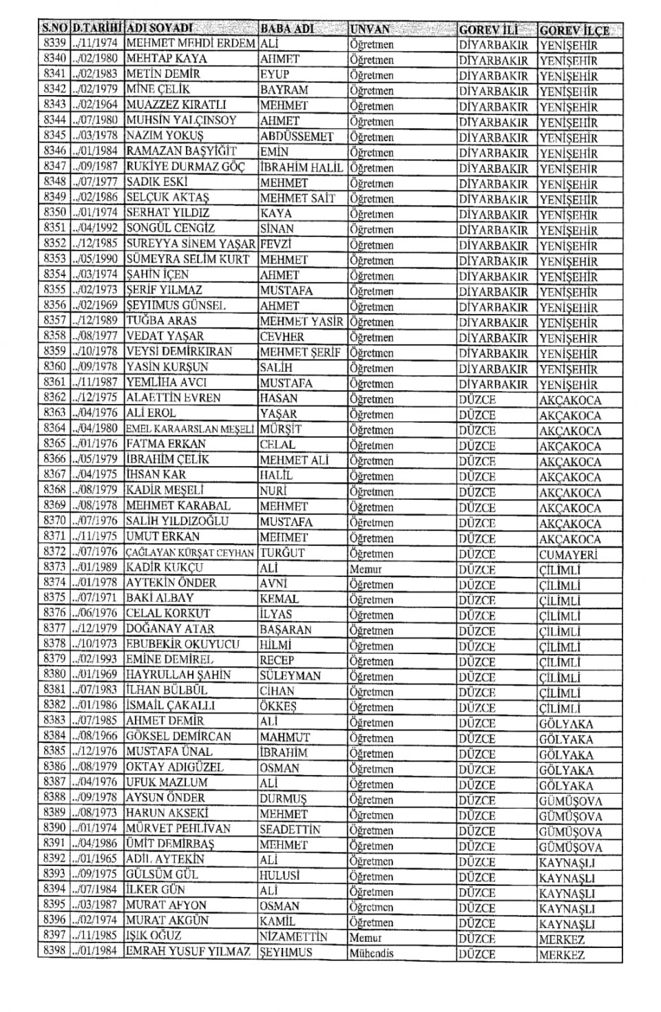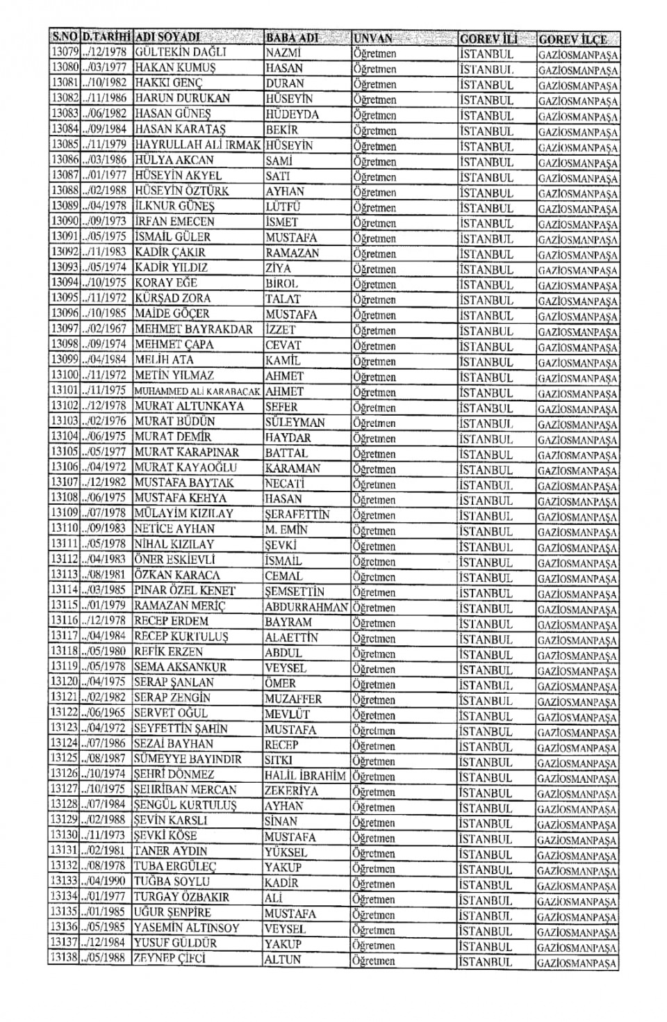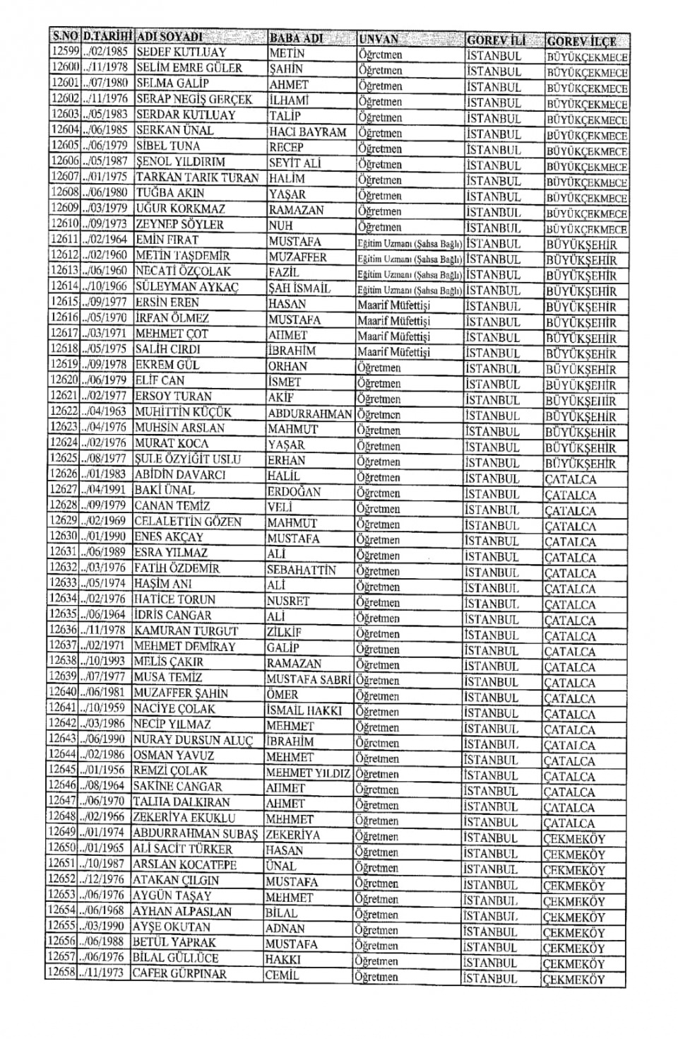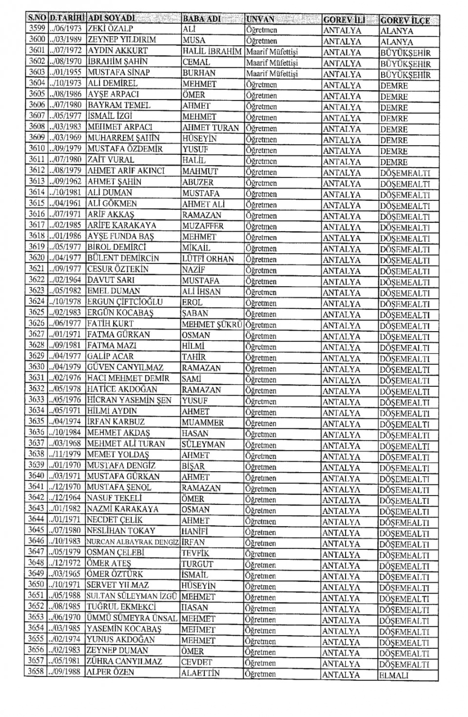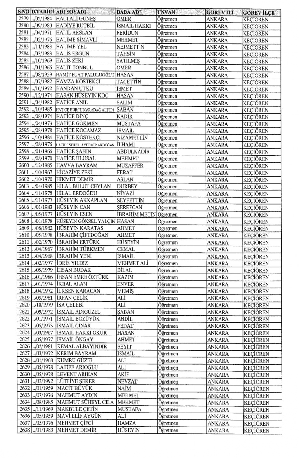 Kararda, daha önce Resmi gazete'de yayımlanan '667 sayılı Olağanüstü Hal Kapsamında Alınan Tedbirlere İlişkin Kanun Hükmünde Kararnamenin (KHK) 3'üncü maddesi uyarınca ismi ekli listede bulunan kişilerin FETÖ/PDY örgütü ile iltisak ve irtibatları olduğunun sabit görüldüğü' için meslekten çıkarıldıkları belirtildi. (DHA)