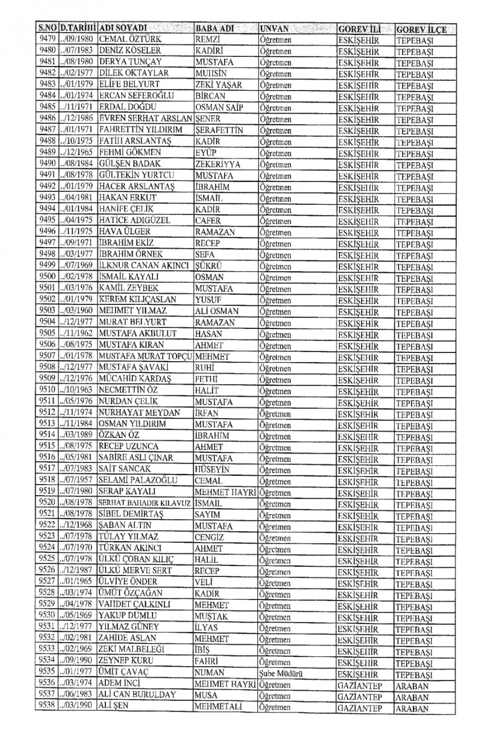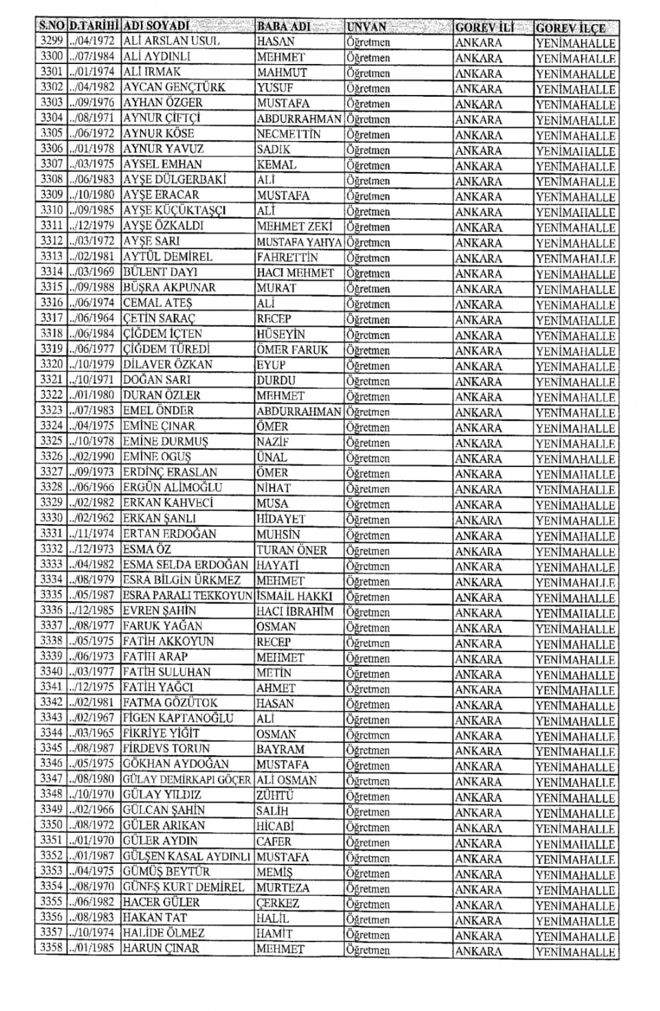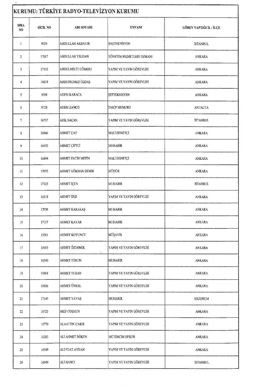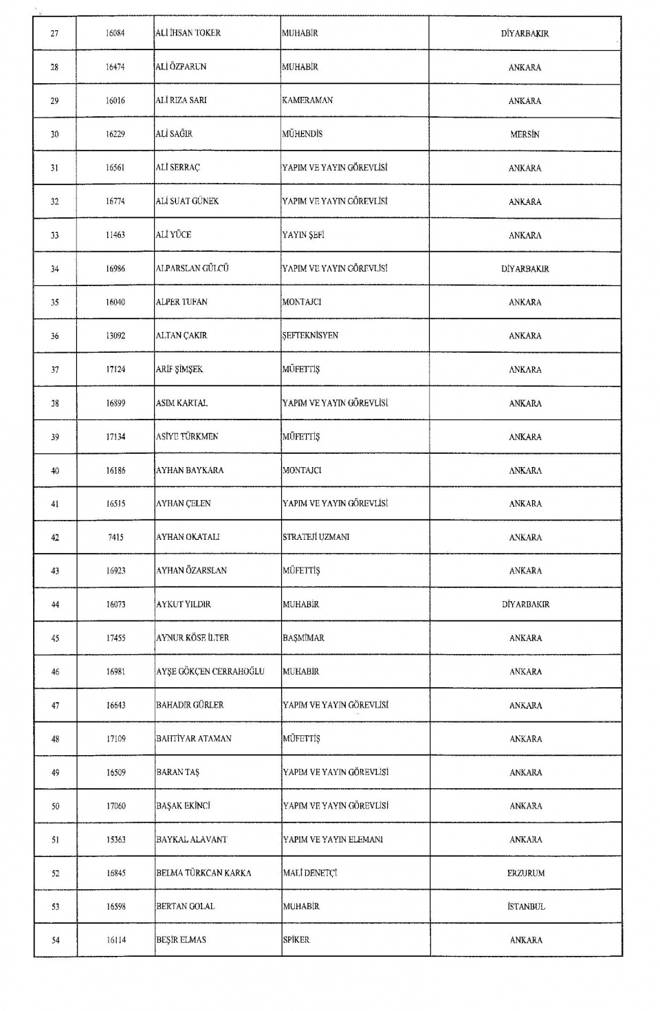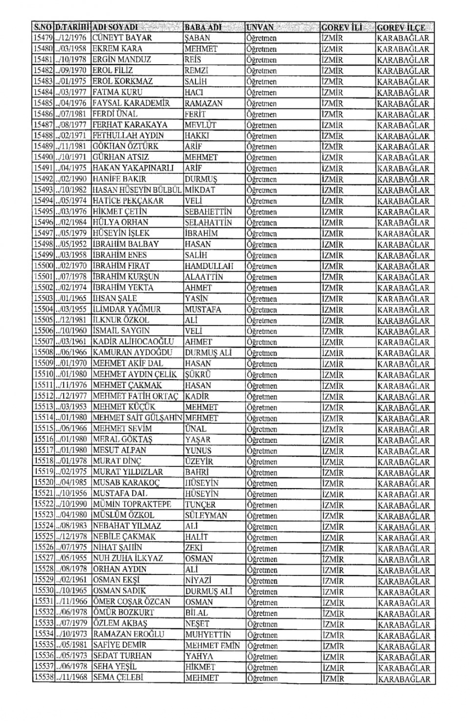 Kararda, daha önce Resmi gazete'de yayımlanan '667 sayılı Olağanüstü Hal Kapsamında Alınan Tedbirlere İlişkin Kanun Hükmünde Kararnamenin (KHK) 3'üncü maddesi uyarınca ismi ekli listede bulunan kişilerin FETÖ/PDY örgütü ile iltisak ve irtibatları olduğunun sabit görüldüğü' için meslekten çıkarıldıkları belirtildi. (DHA)