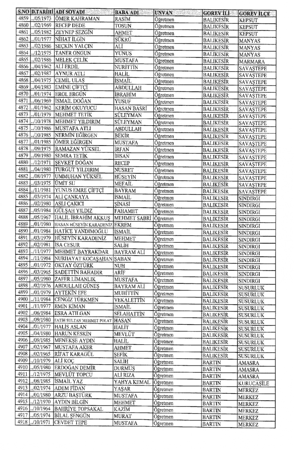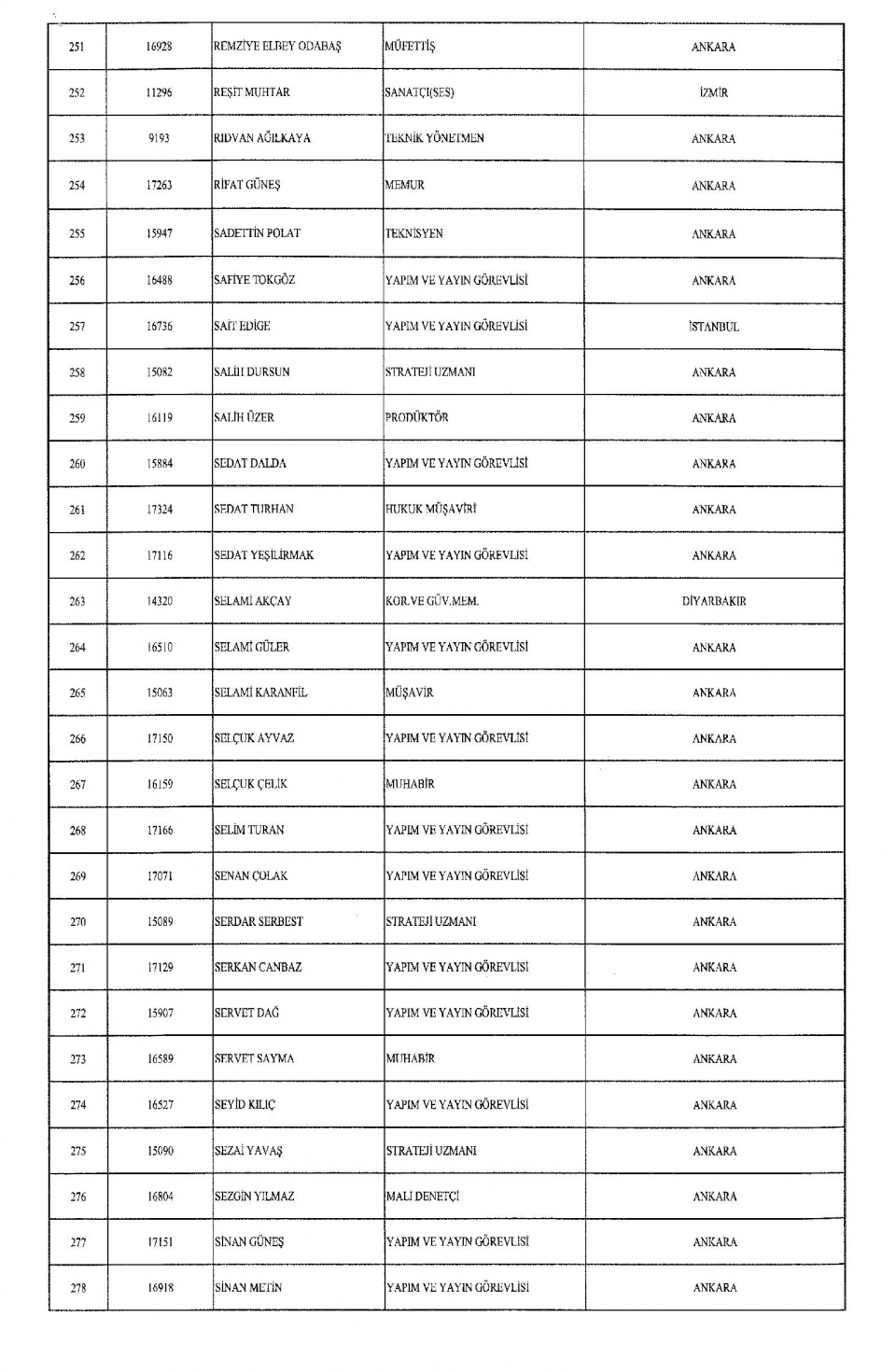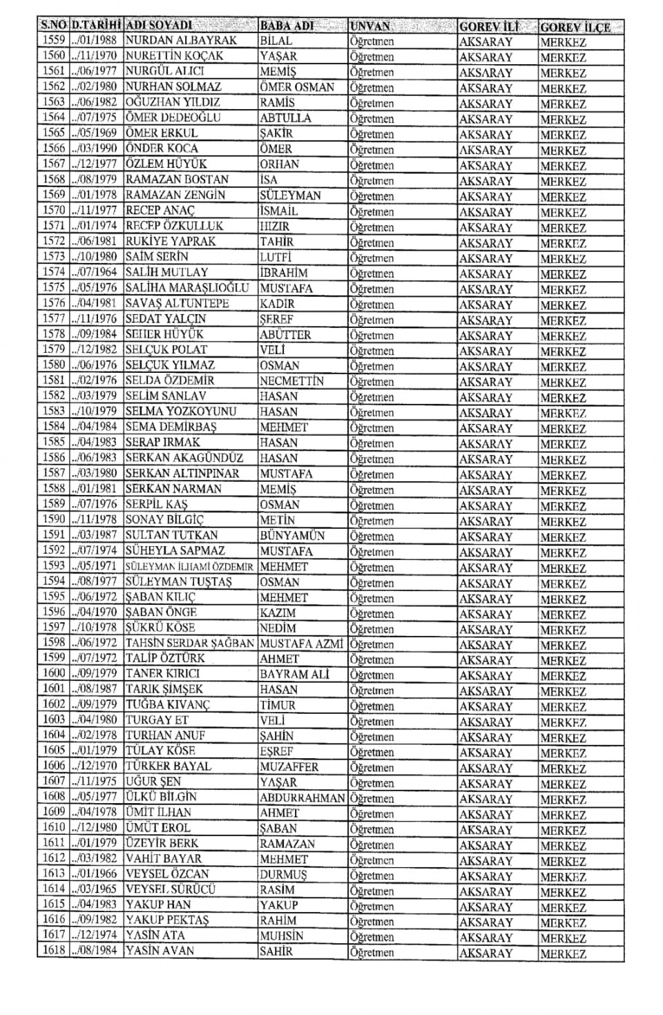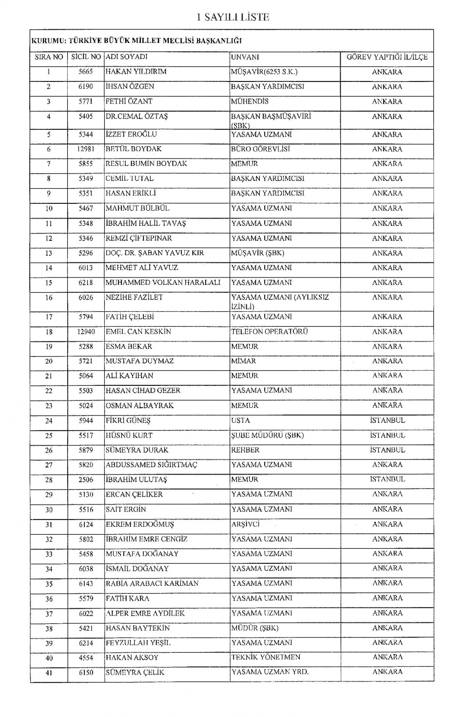 Kararda, daha önce Resmi gazete'de yayımlanan '667 sayılı Olağanüstü Hal Kapsamında Alınan Tedbirlere İlişkin Kanun Hükmünde Kararnamenin (KHK) 3'üncü maddesi uyarınca ismi ekli listede bulunan kişilerin FETÖ/PDY örgütü ile iltisak ve irtibatları olduğunun sabit görüldüğü' için meslekten çıkarıldıkları belirtildi. (DHA)