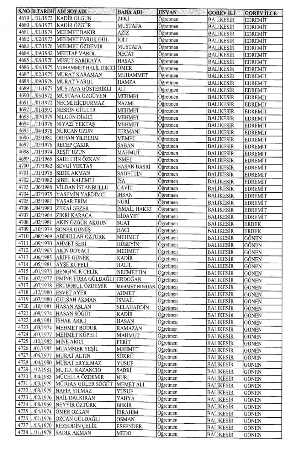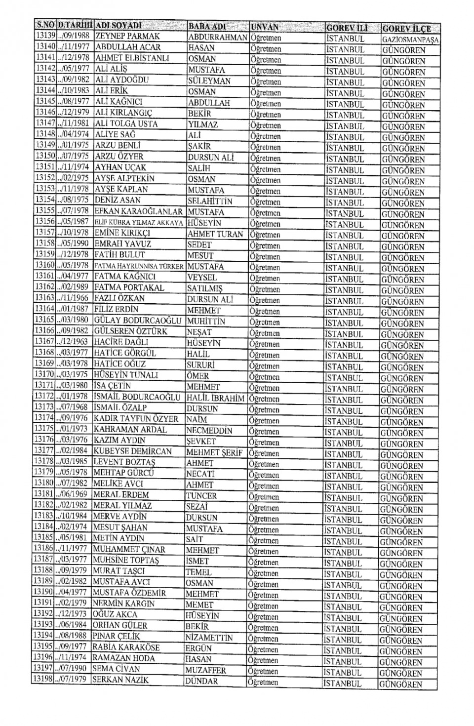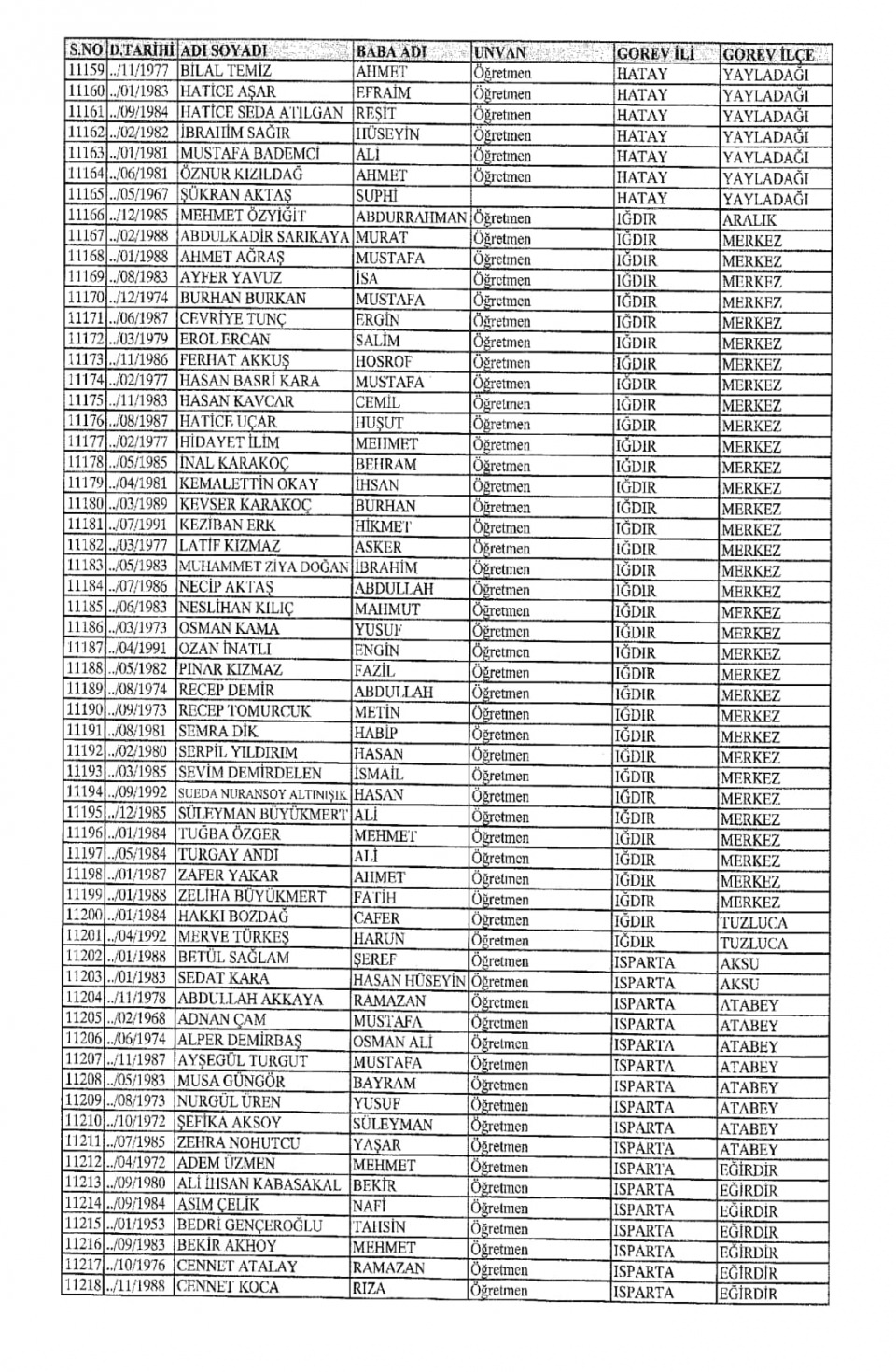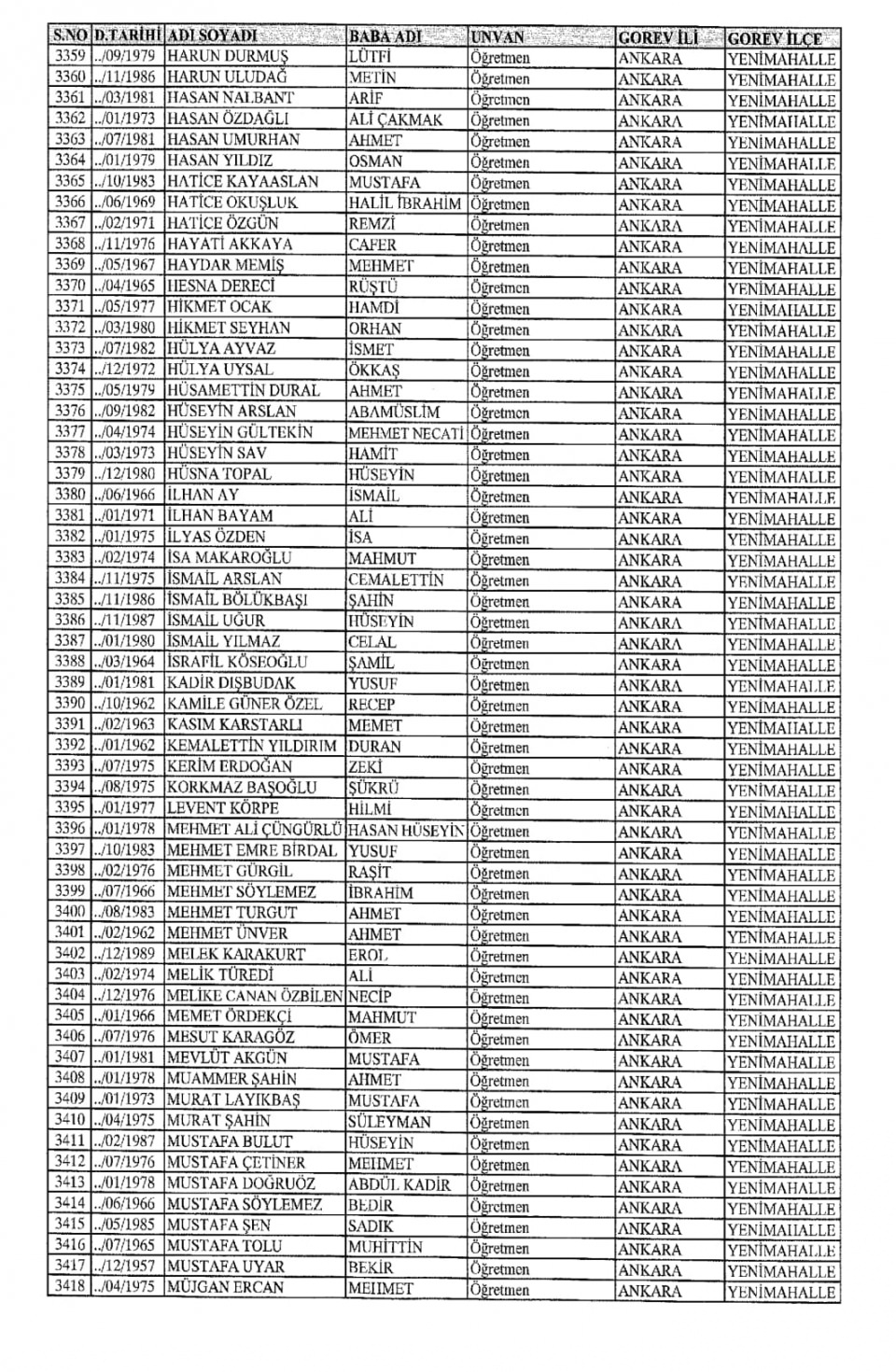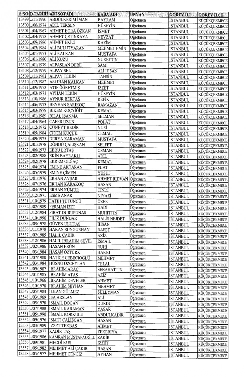 Kararda, daha önce Resmi gazete'de yayımlanan '667 sayılı Olağanüstü Hal Kapsamında Alınan Tedbirlere İlişkin Kanun Hükmünde Kararnamenin (KHK) 3'üncü maddesi uyarınca ismi ekli listede bulunan kişilerin FETÖ/PDY örgütü ile iltisak ve irtibatları olduğunun sabit görüldüğü' için meslekten çıkarıldıkları belirtildi. (DHA)
