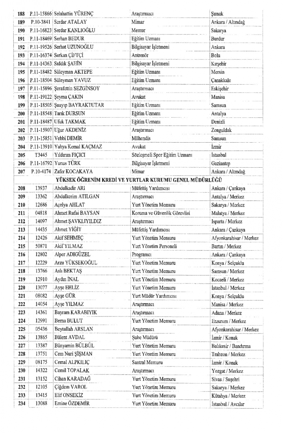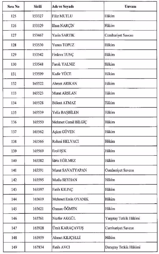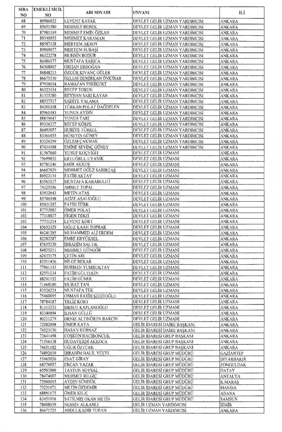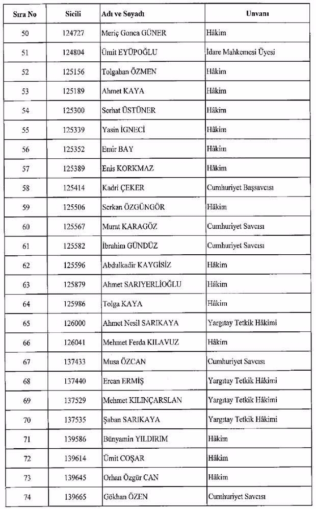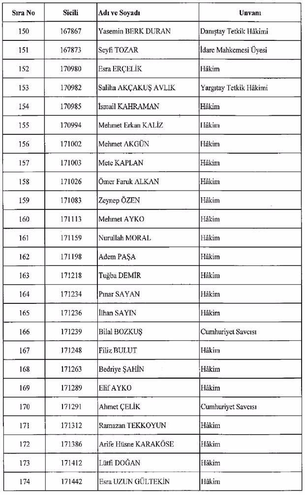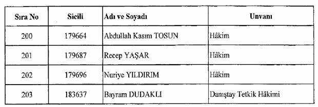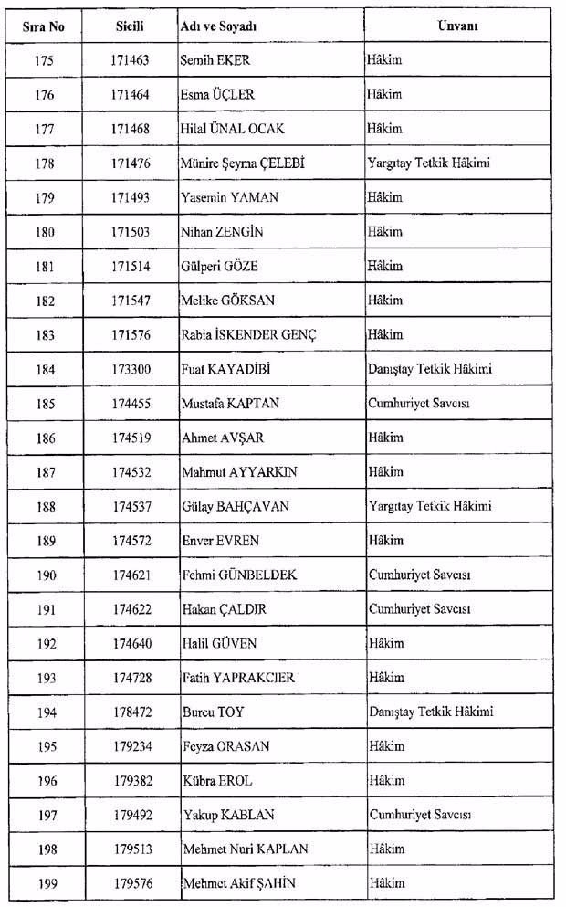 1 vergi mahkemesi üyesi ve 1 kurul müfettişi olmak üzere toplam 203 kişi meslekten ihraç edildi.