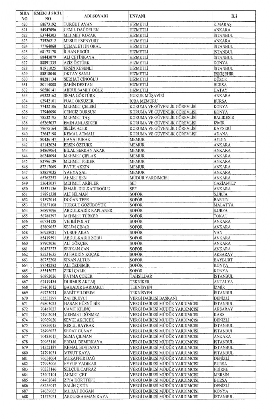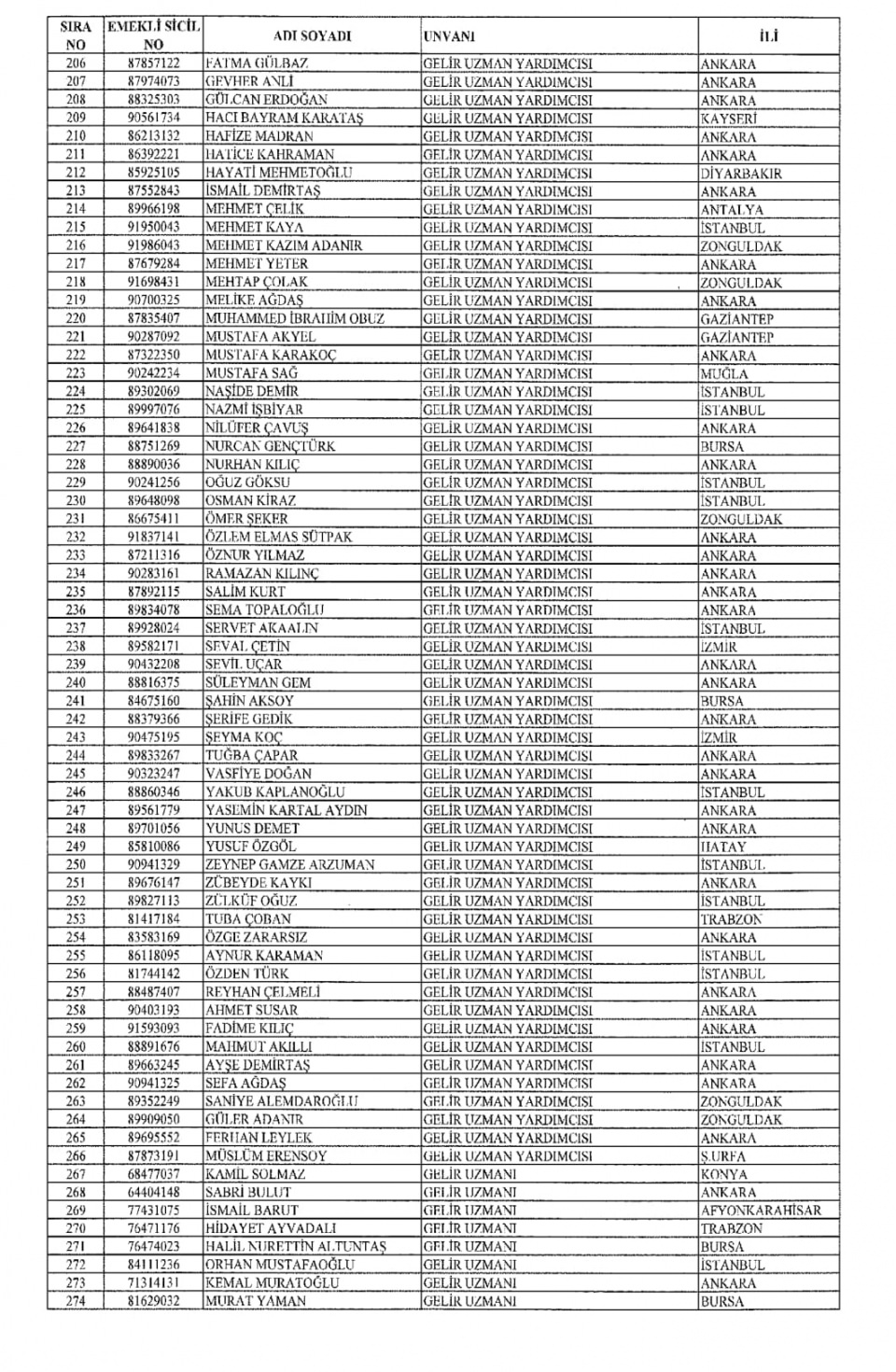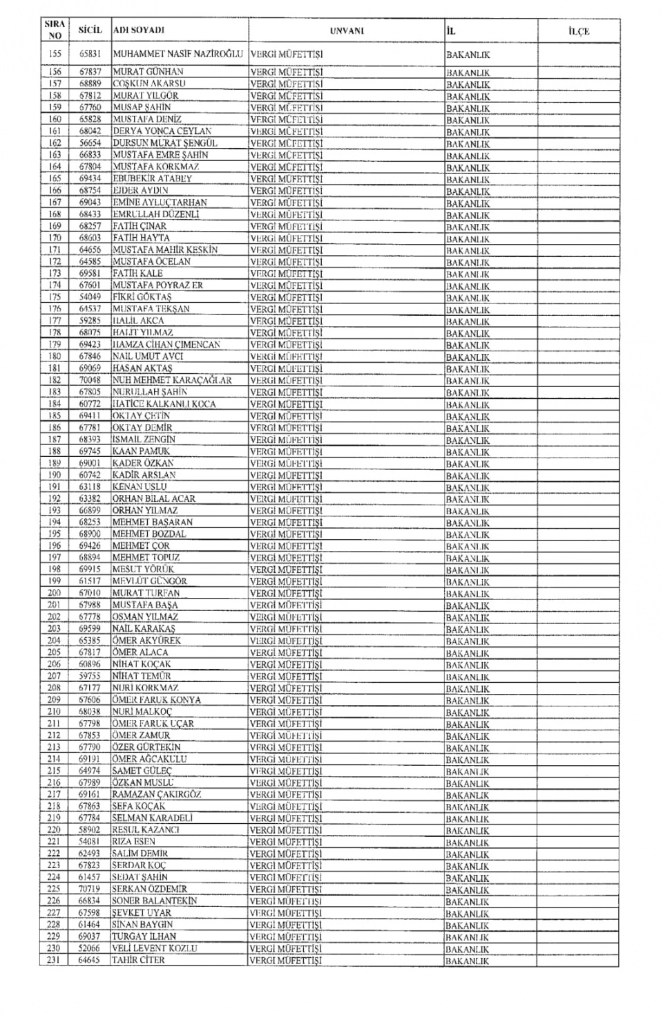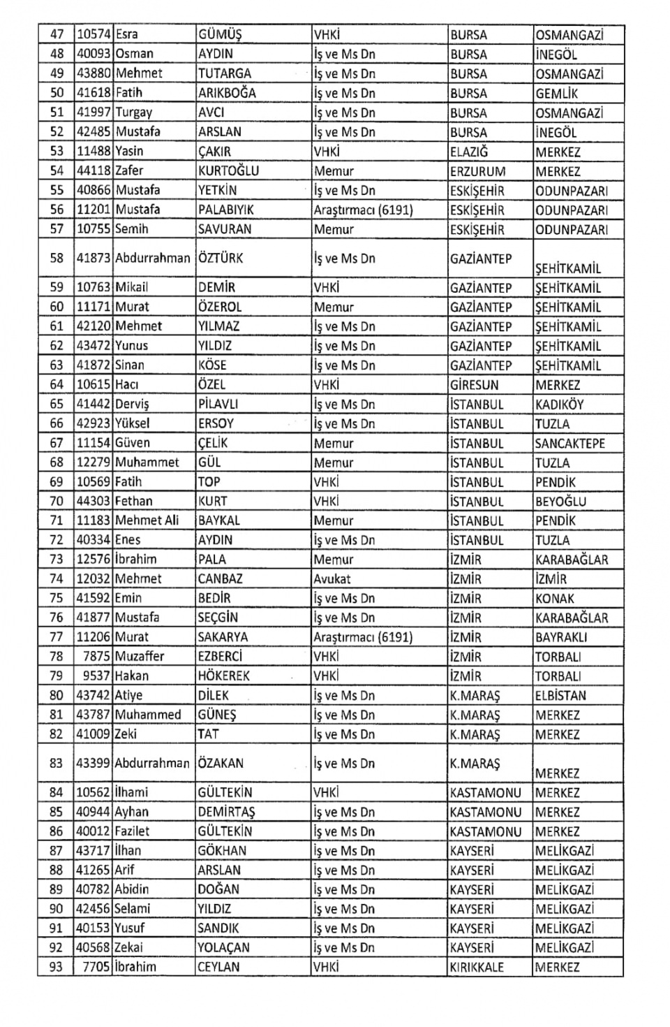 1 vergi mahkemesi üyesi ve 1 kurul müfettişi olmak üzere toplam 203 kişi meslekten ihraç edildi.