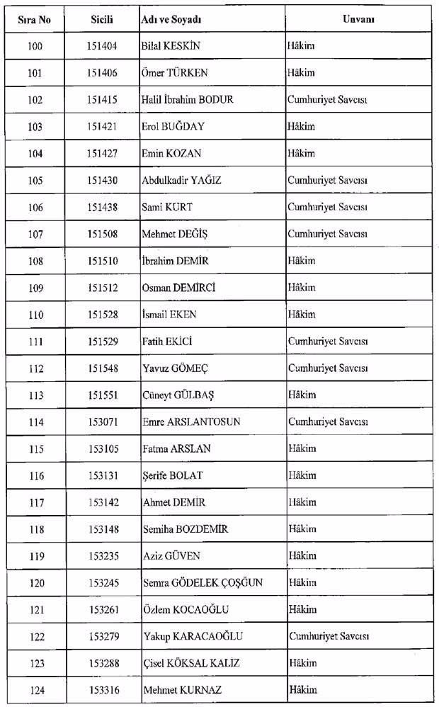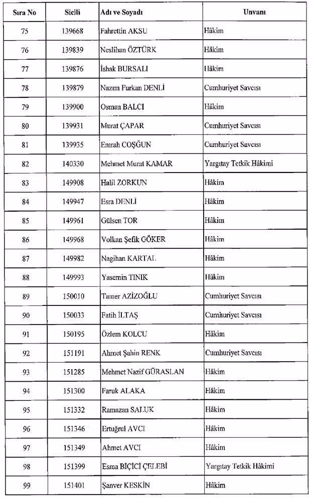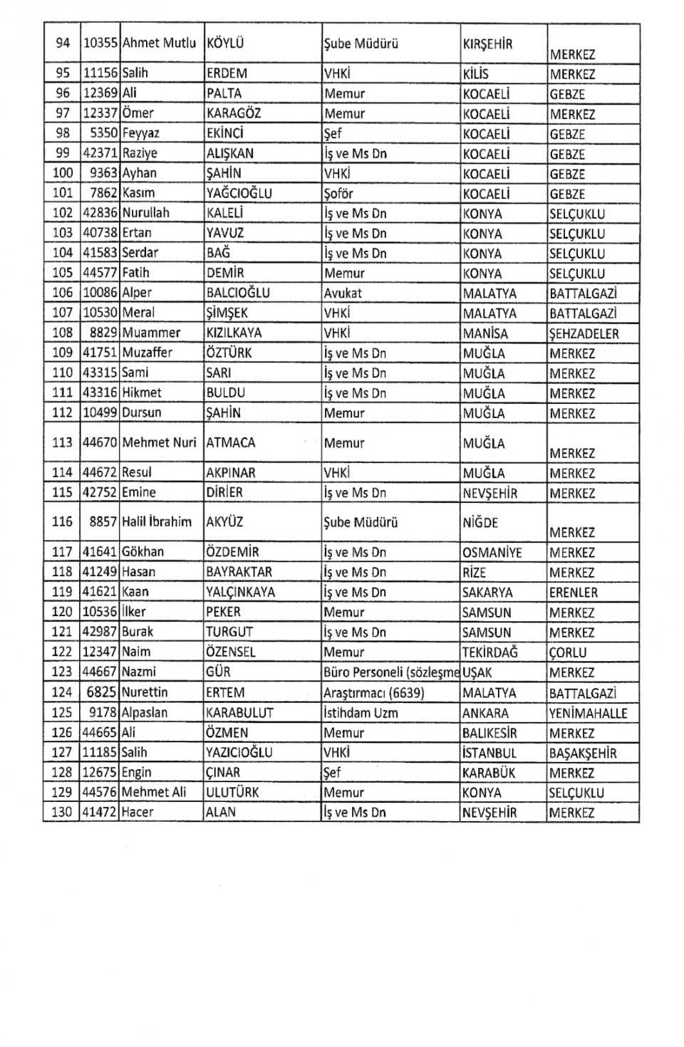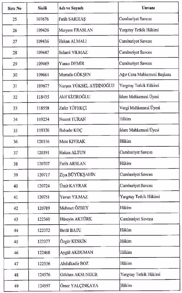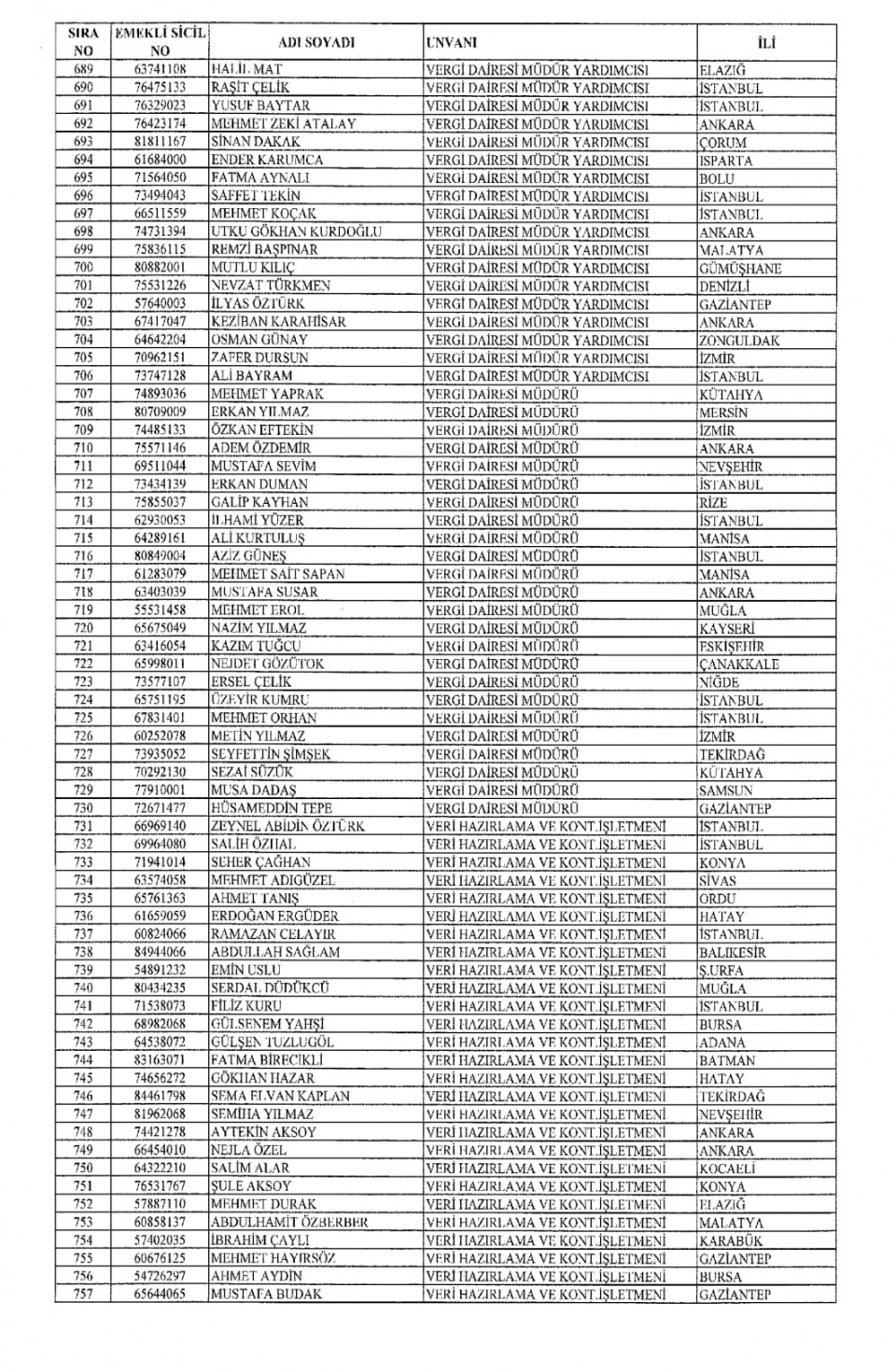 1 vergi mahkemesi üyesi ve 1 kurul müfettişi olmak üzere toplam 203 kişi meslekten ihraç edildi.