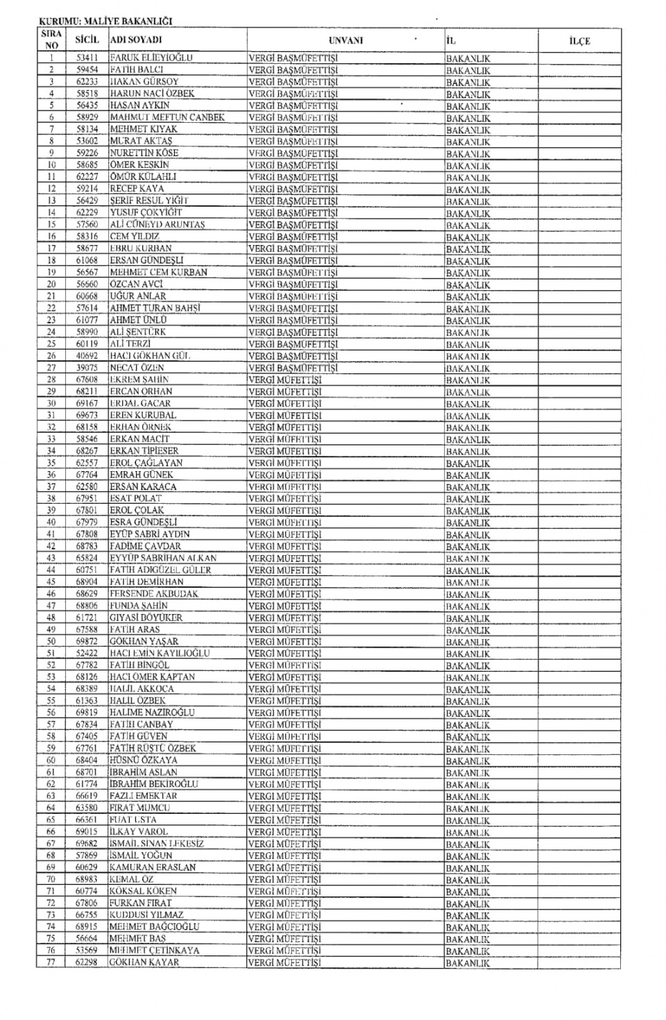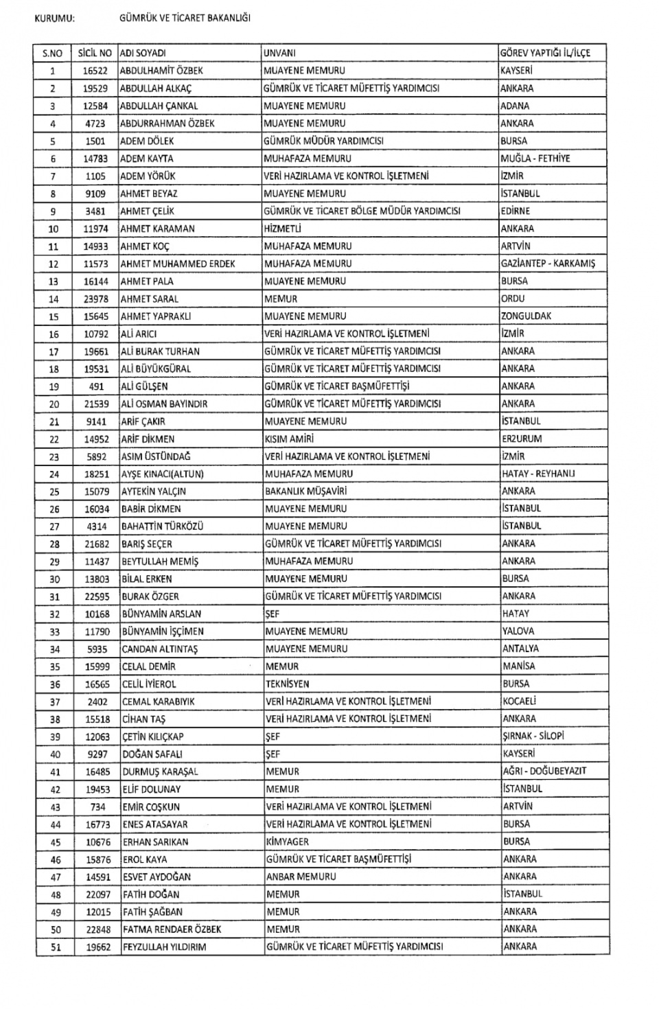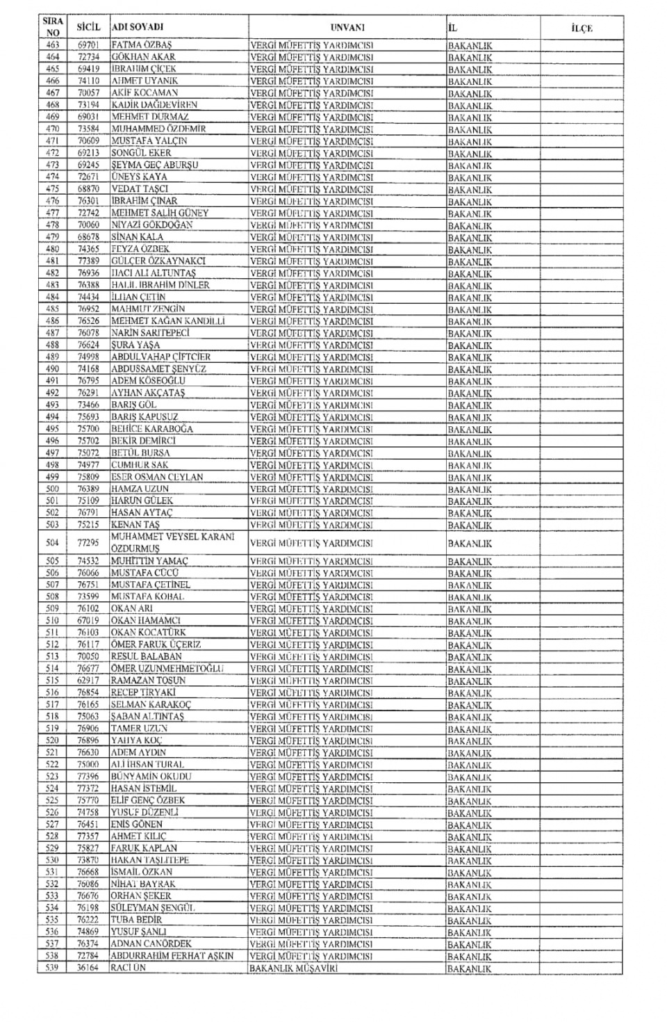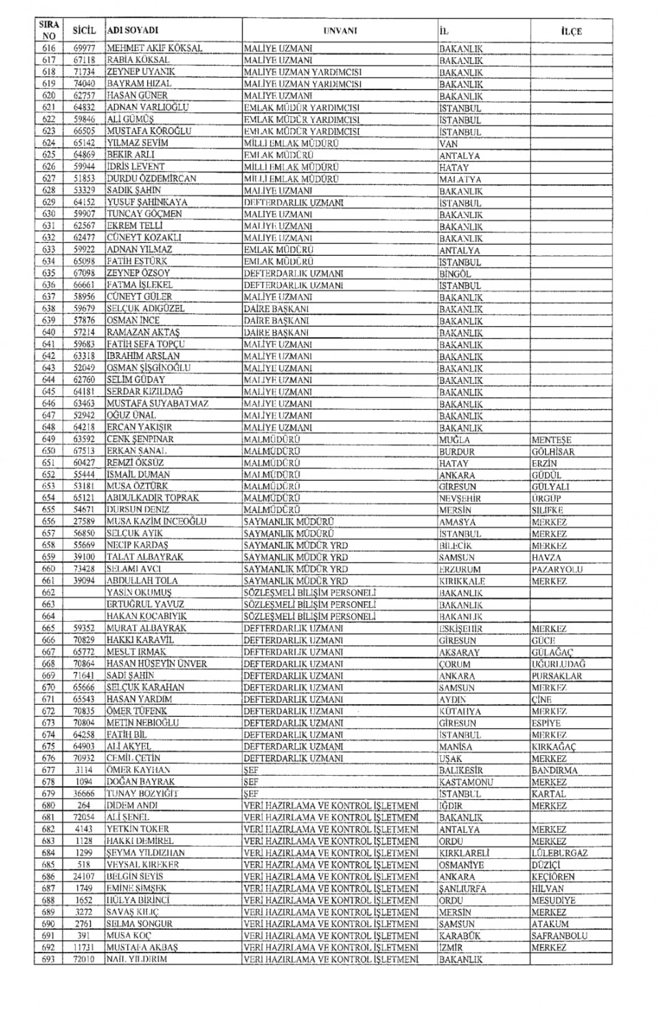1 vergi mahkemesi üyesi ve 1 kurul müfettişi olmak üzere toplam 203 kişi meslekten ihraç edildi.