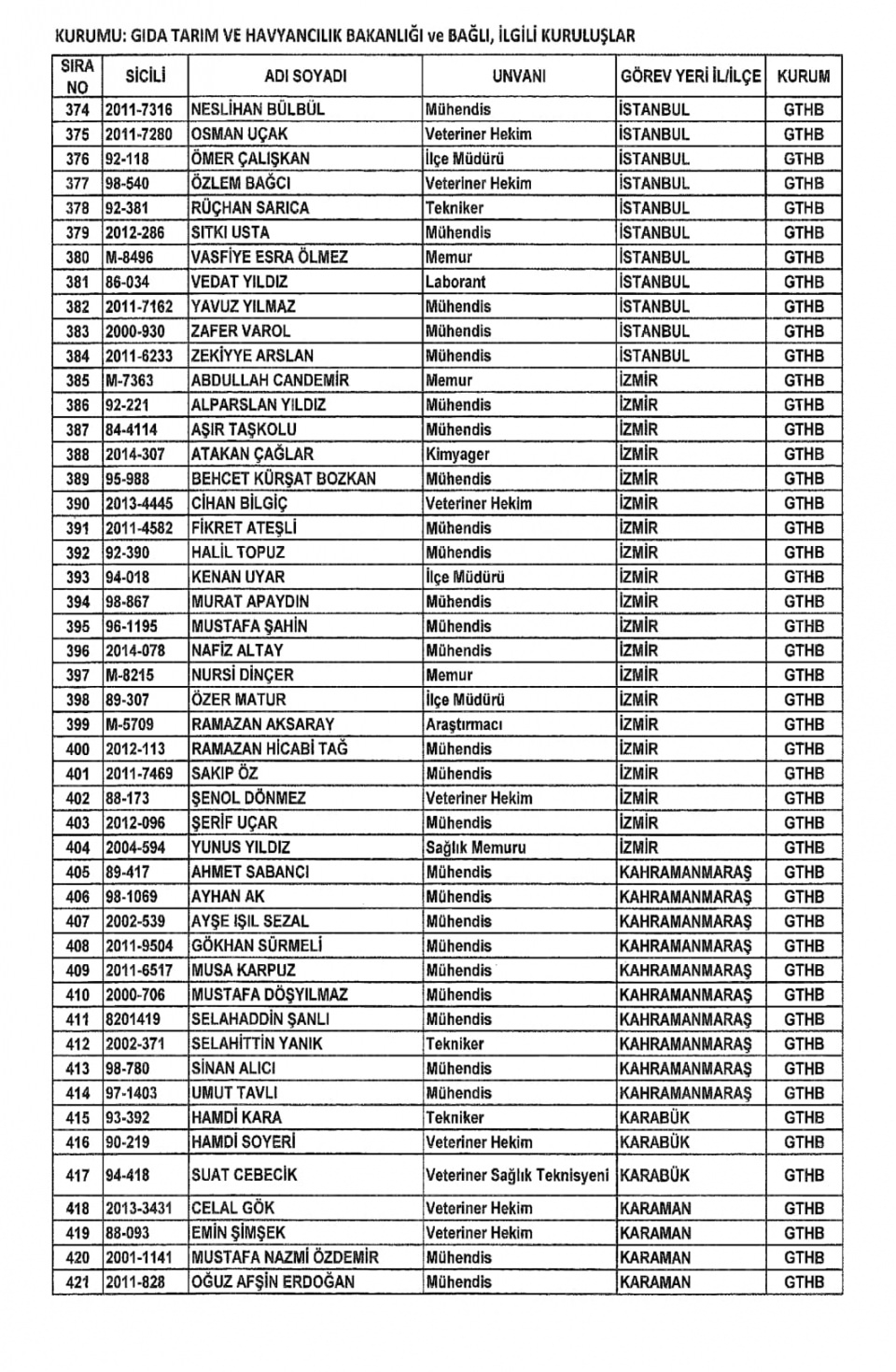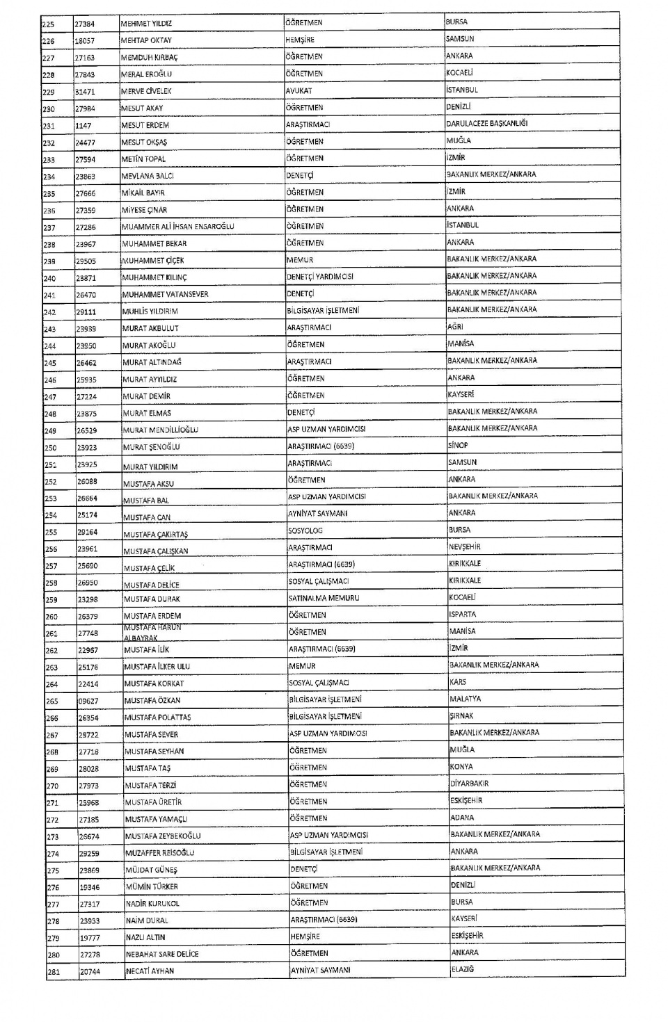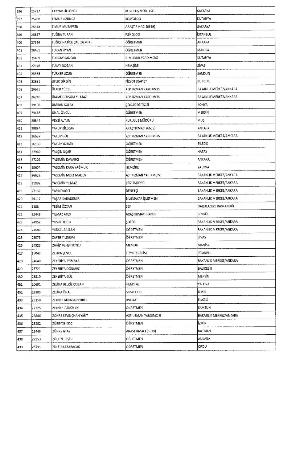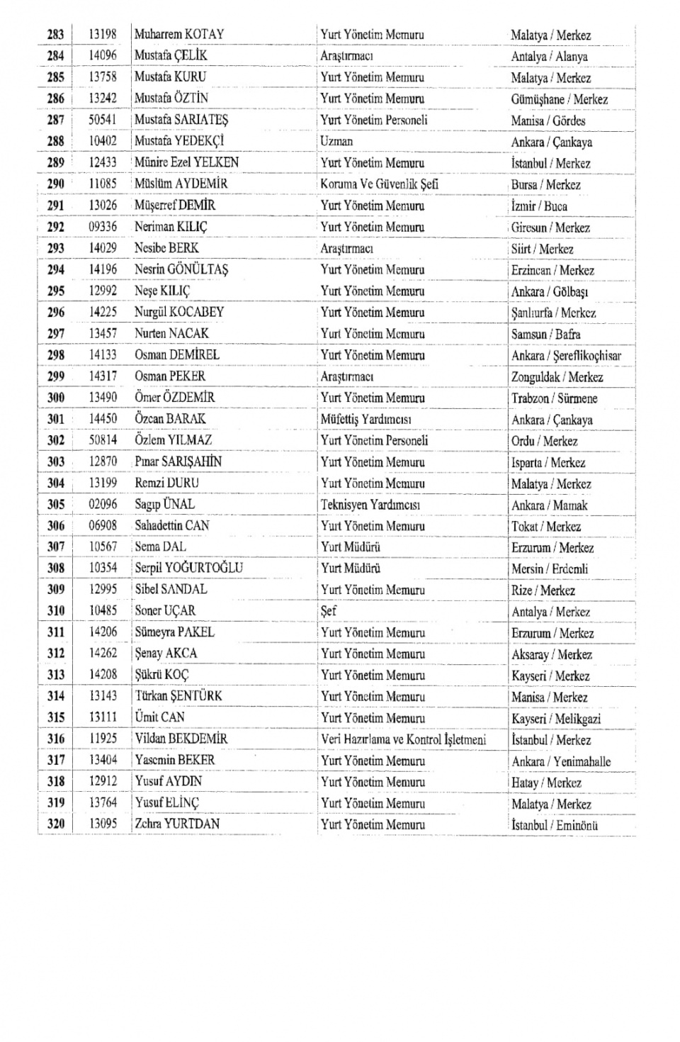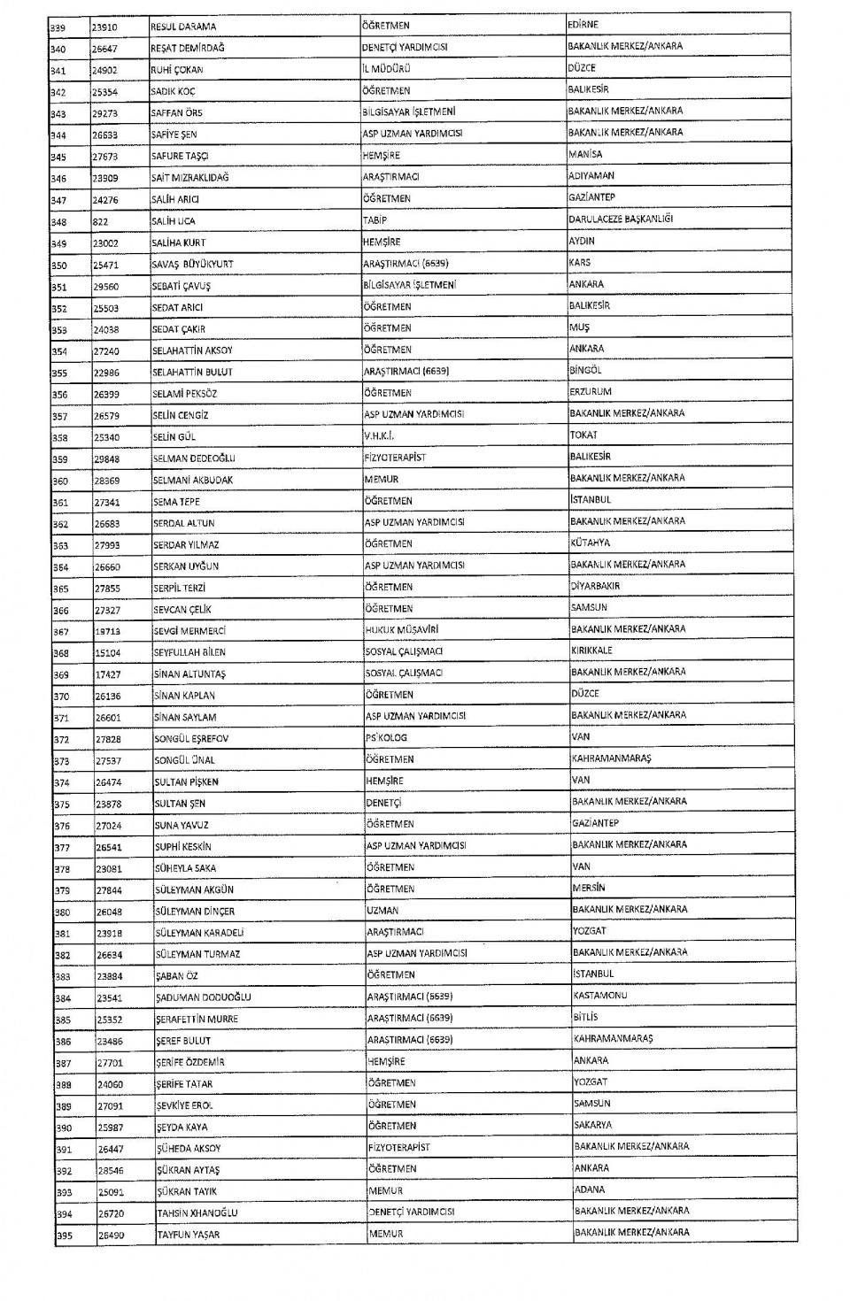 Kamudaki işlerine son verilenlerden 28 bin 163'ü Milli Eğitim Bakanlığı, 2 bin 18'i Sağlık Bakanlığı ve bağlı kuruluşları, 733'ü Gıda, Tarım ve Hayvancılık Bakanlığı ve bağlı kuruluşları, bin 519'u Diyanet İşleri Başkanlığı, 439'u Aile ve Sosyal Politikalar Bakanlığı personelinden oluşuyor.
