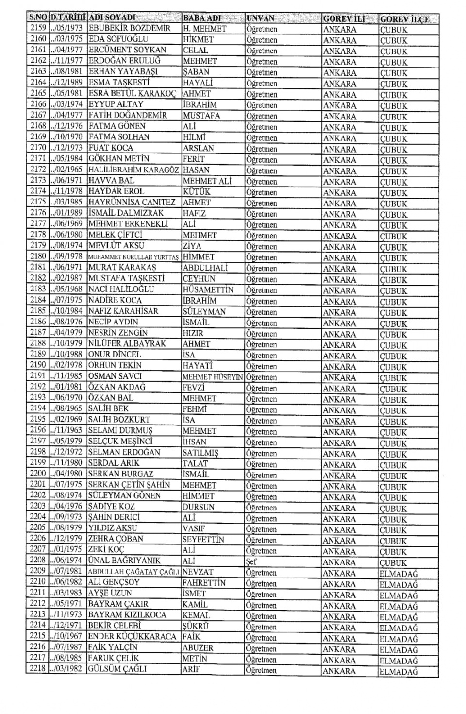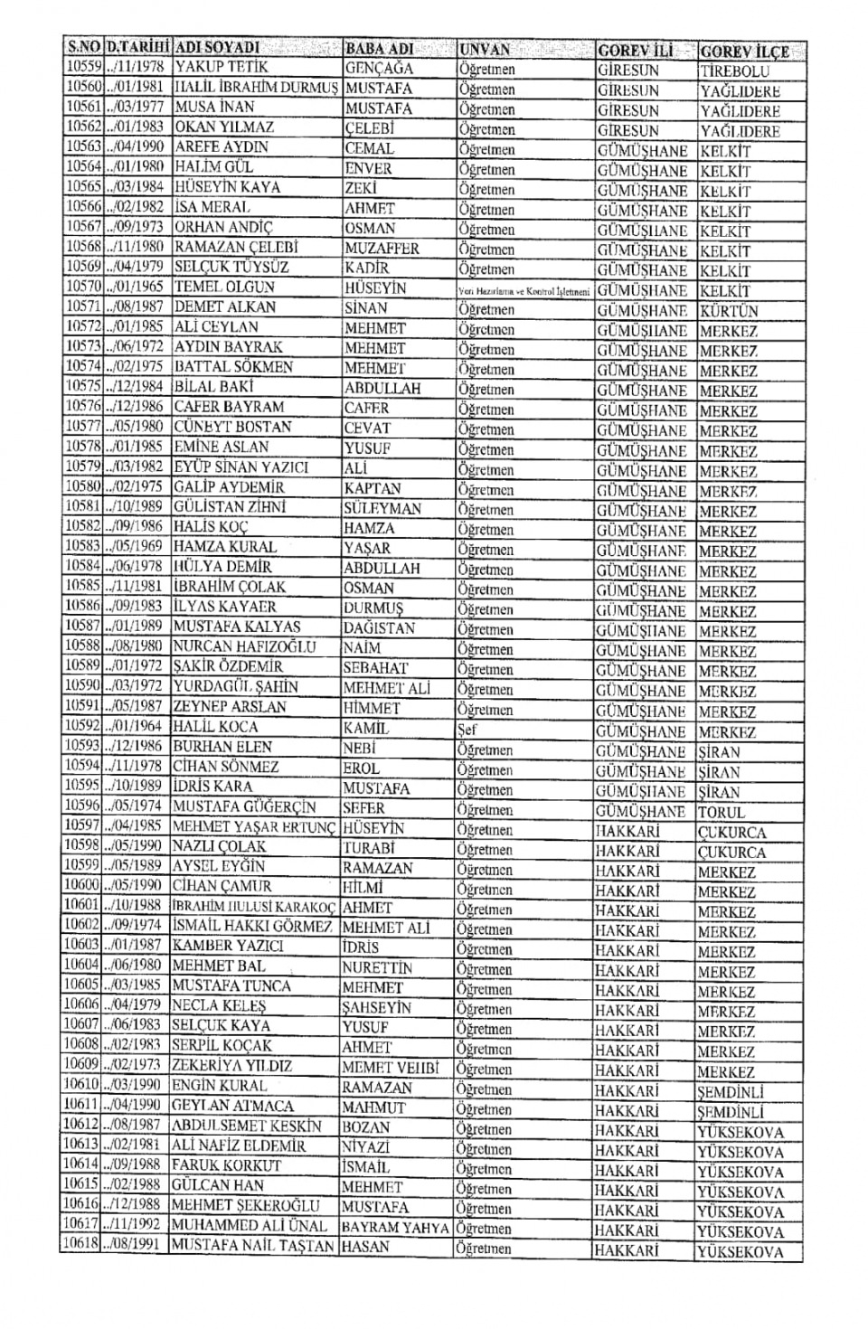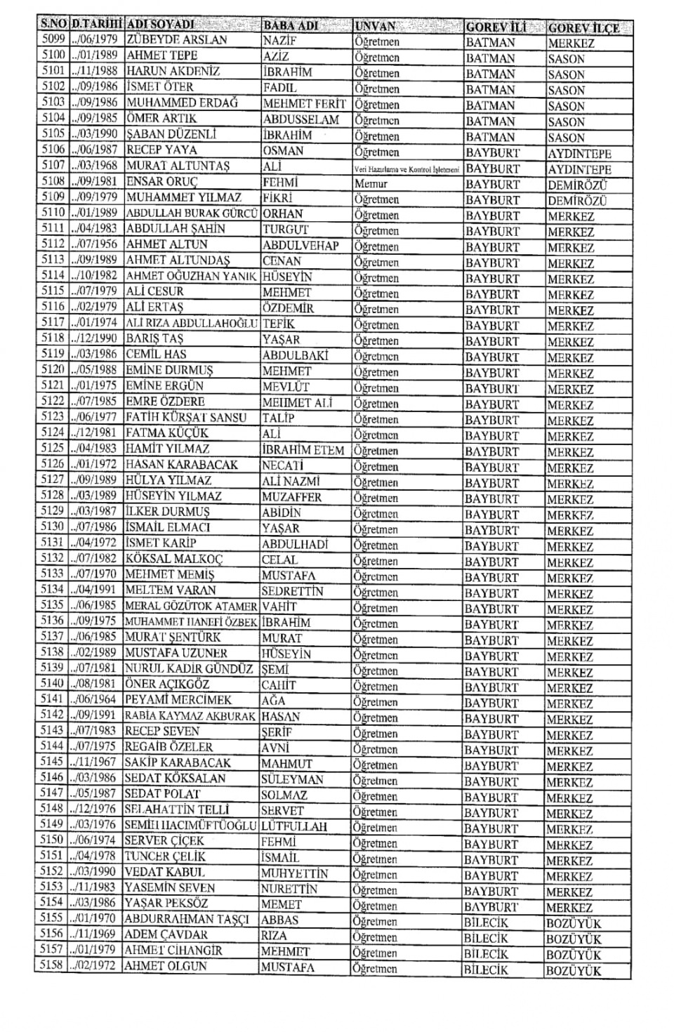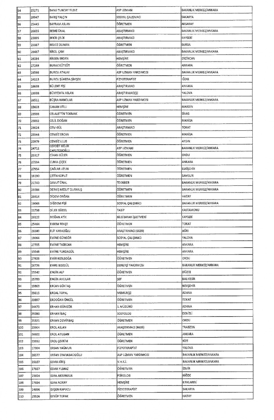 Kamudaki işlerine son verilenlerden 28 bin 163'ü Milli Eğitim Bakanlığı, 2 bin 18'i Sağlık Bakanlığı ve bağlı kuruluşları, 733'ü Gıda, Tarım ve Hayvancılık Bakanlığı ve bağlı kuruluşları, bin 519'u Diyanet İşleri Başkanlığı, 439'u Aile ve Sosyal Politikalar Bakanlığı personelinden oluşuyor.