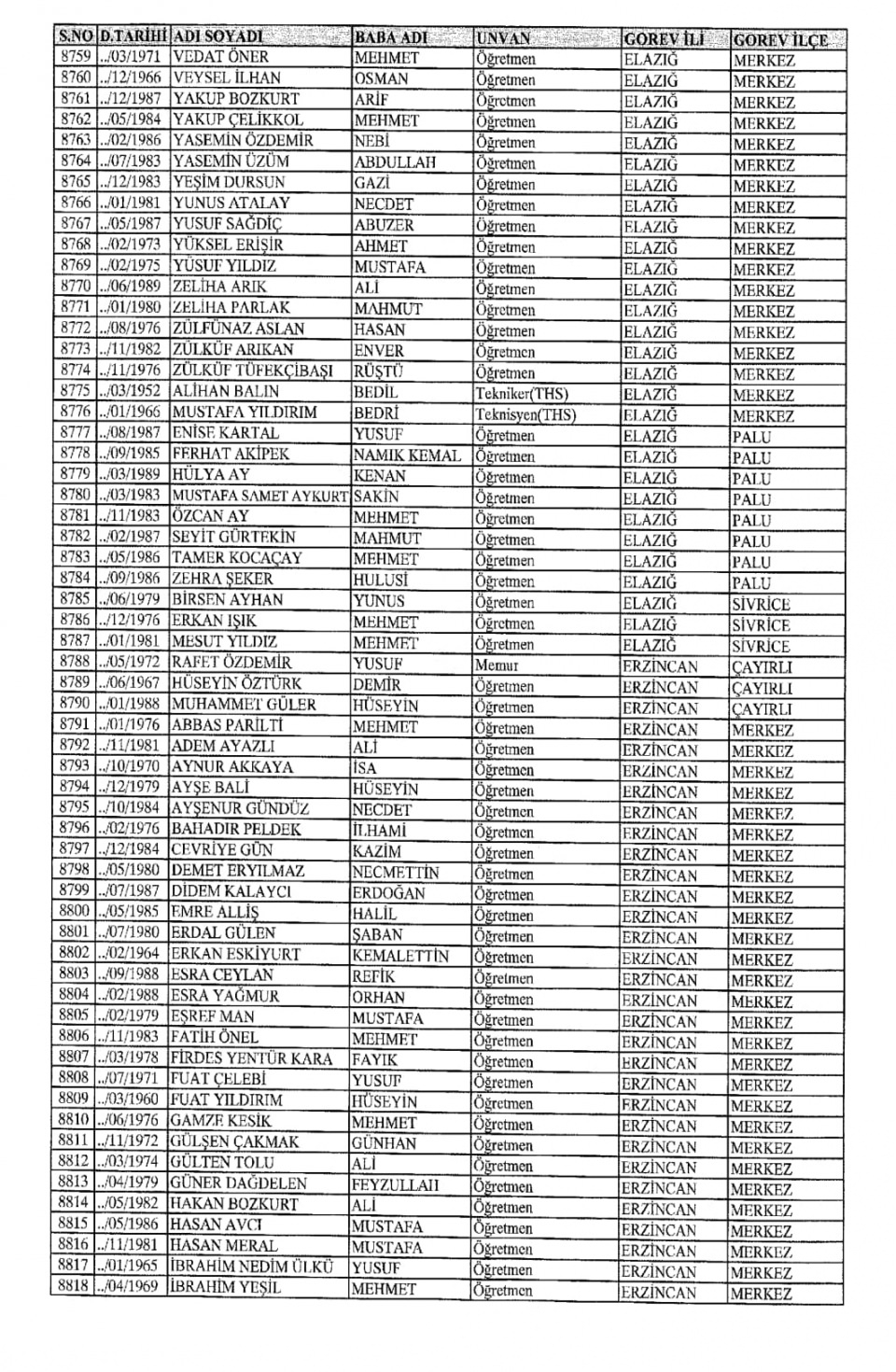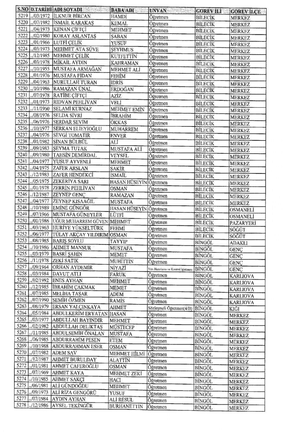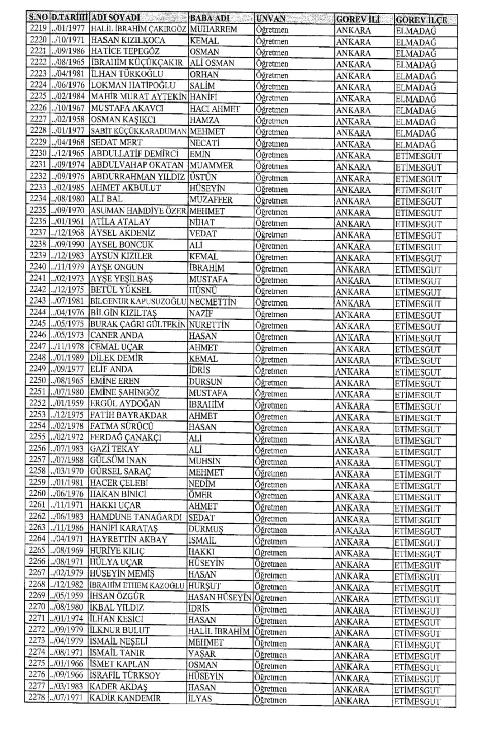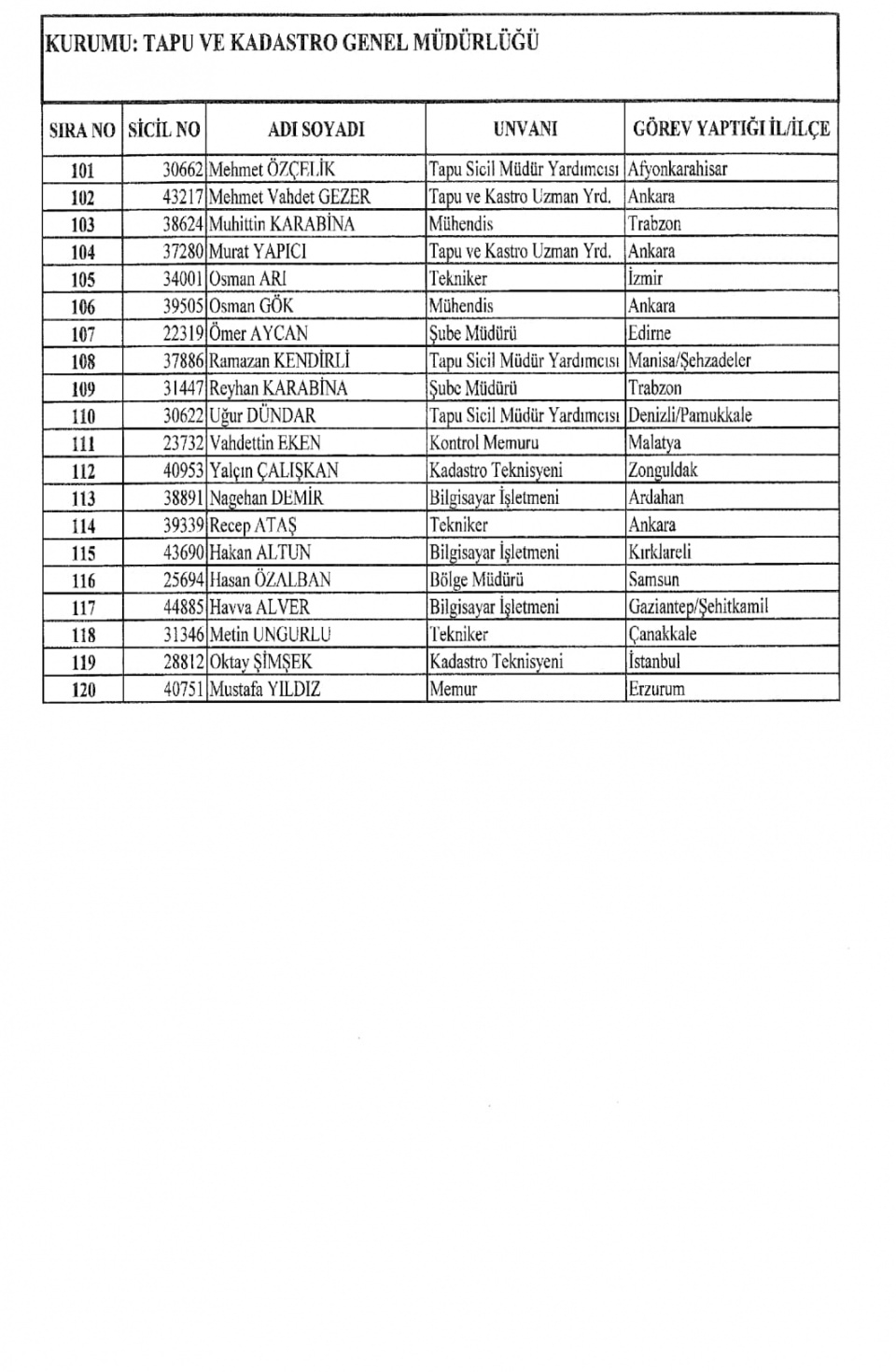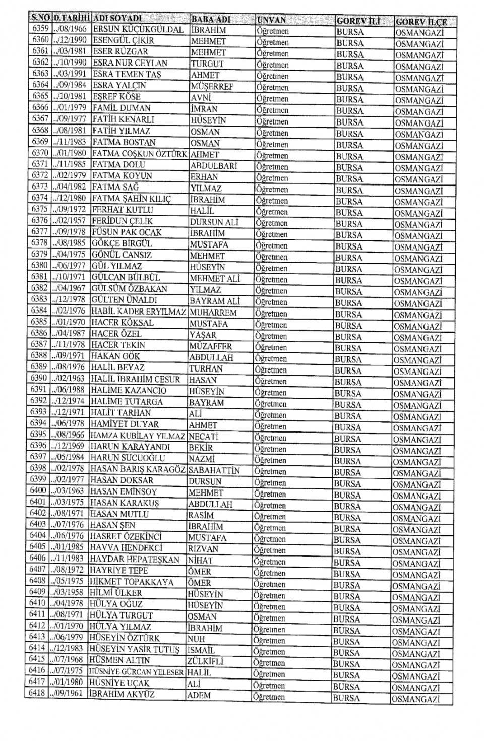 Kamudaki işlerine son verilenlerden 28 bin 163'ü Milli Eğitim Bakanlığı, 2 bin 18'i Sağlık Bakanlığı ve bağlı kuruluşları, 733'ü Gıda, Tarım ve Hayvancılık Bakanlığı ve bağlı kuruluşları, bin 519'u Diyanet İşleri Başkanlığı, 439'u Aile ve Sosyal Politikalar Bakanlığı personelinden oluşuyor.