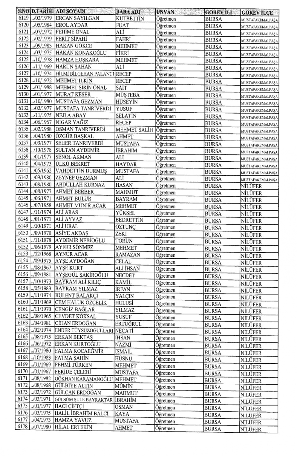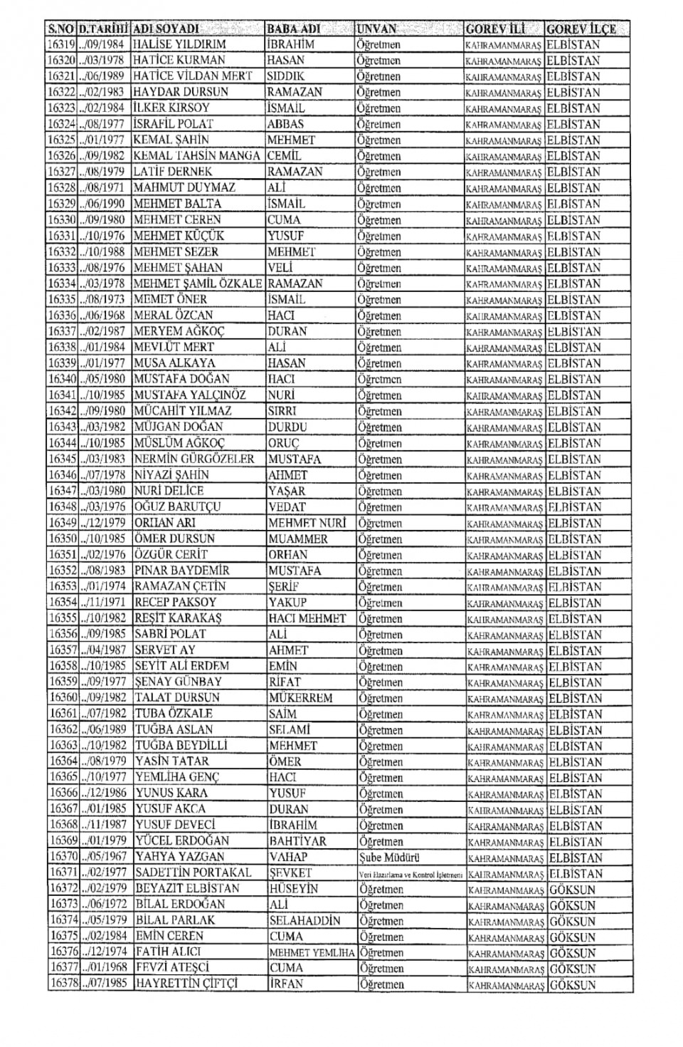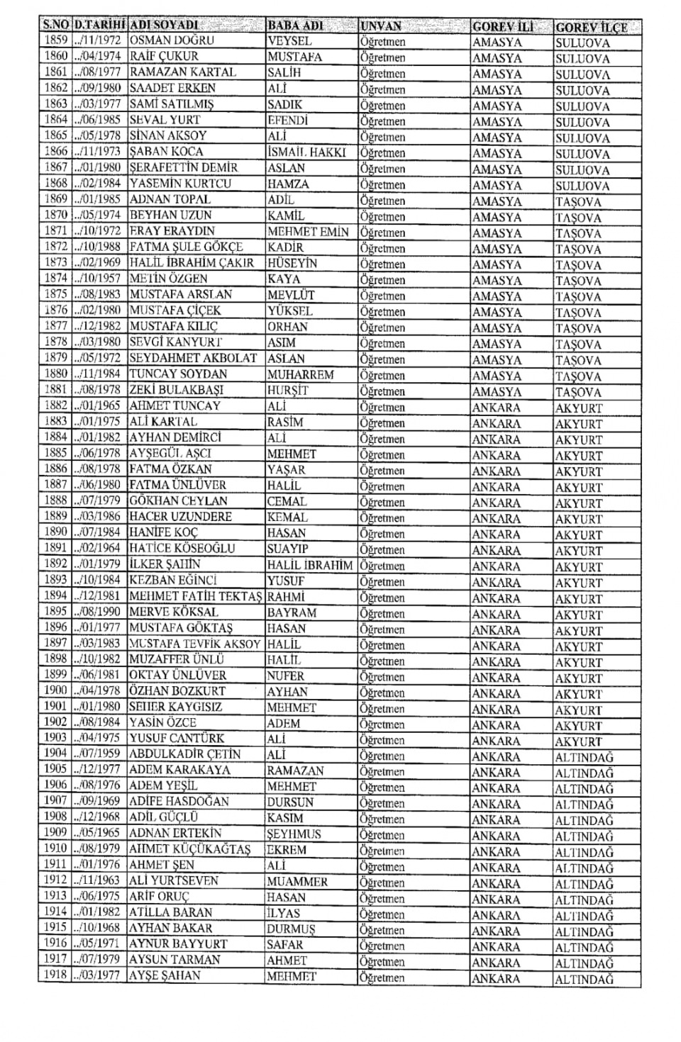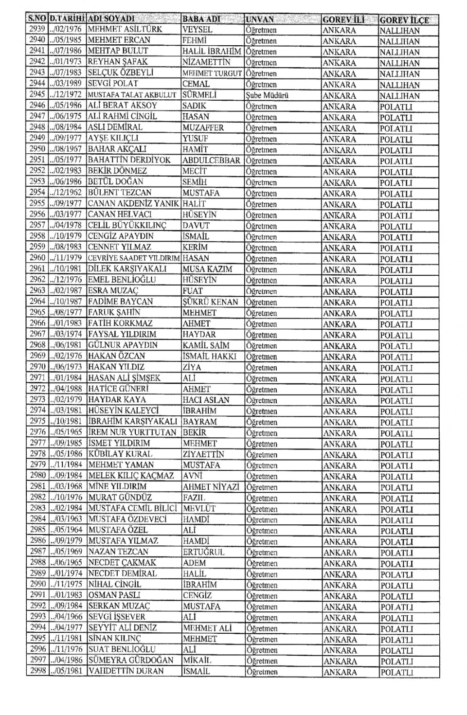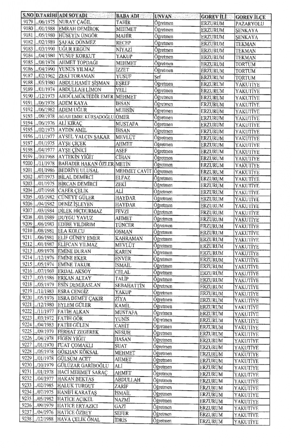 Kamudaki işlerine son verilenlerden 28 bin 163'ü Milli Eğitim Bakanlığı, 2 bin 18'i Sağlık Bakanlığı ve bağlı kuruluşları, 733'ü Gıda, Tarım ve Hayvancılık Bakanlığı ve bağlı kuruluşları, bin 519'u Diyanet İşleri Başkanlığı, 439'u Aile ve Sosyal Politikalar Bakanlığı personelinden oluşuyor.