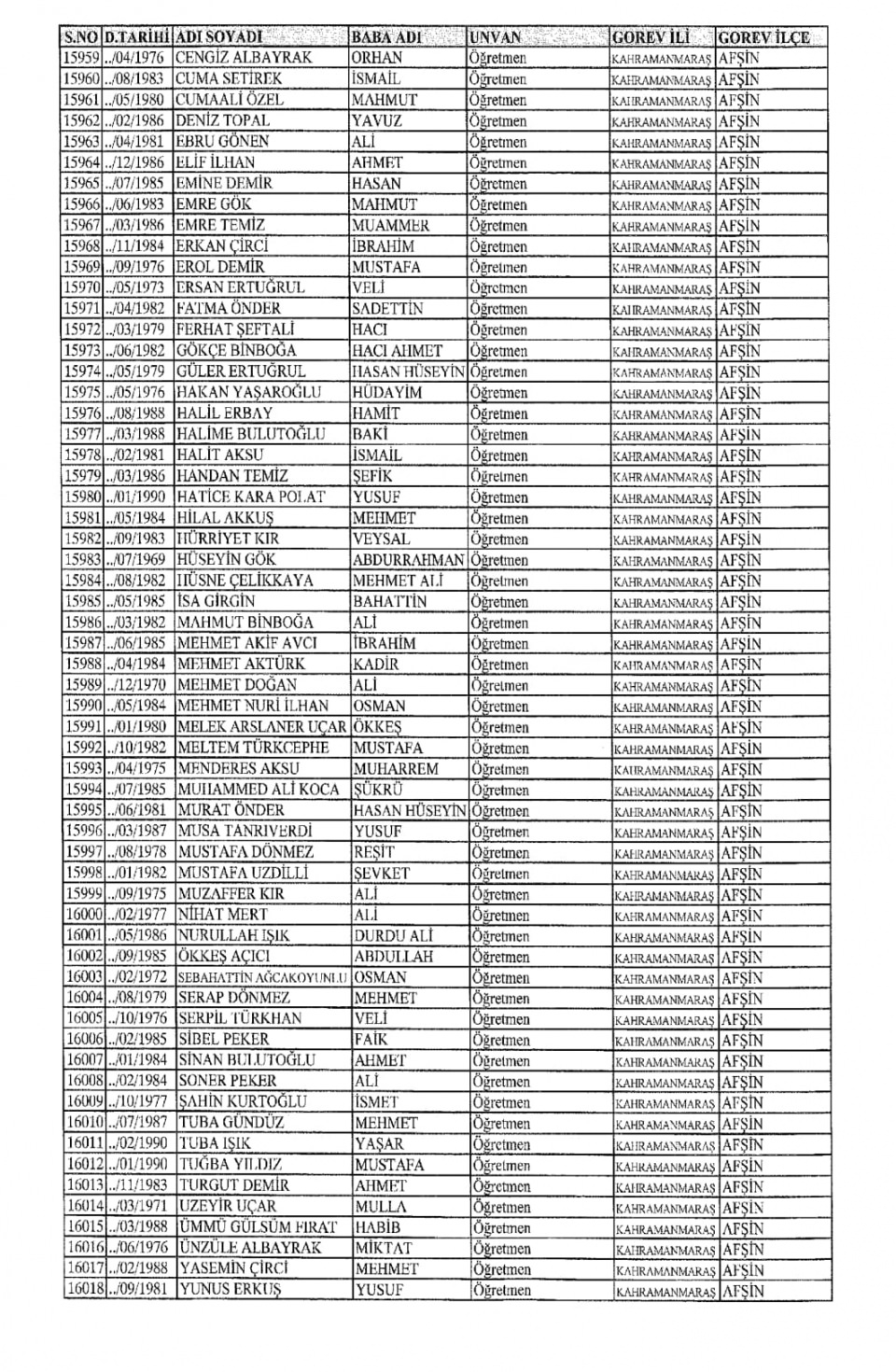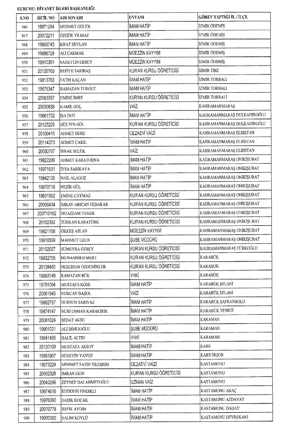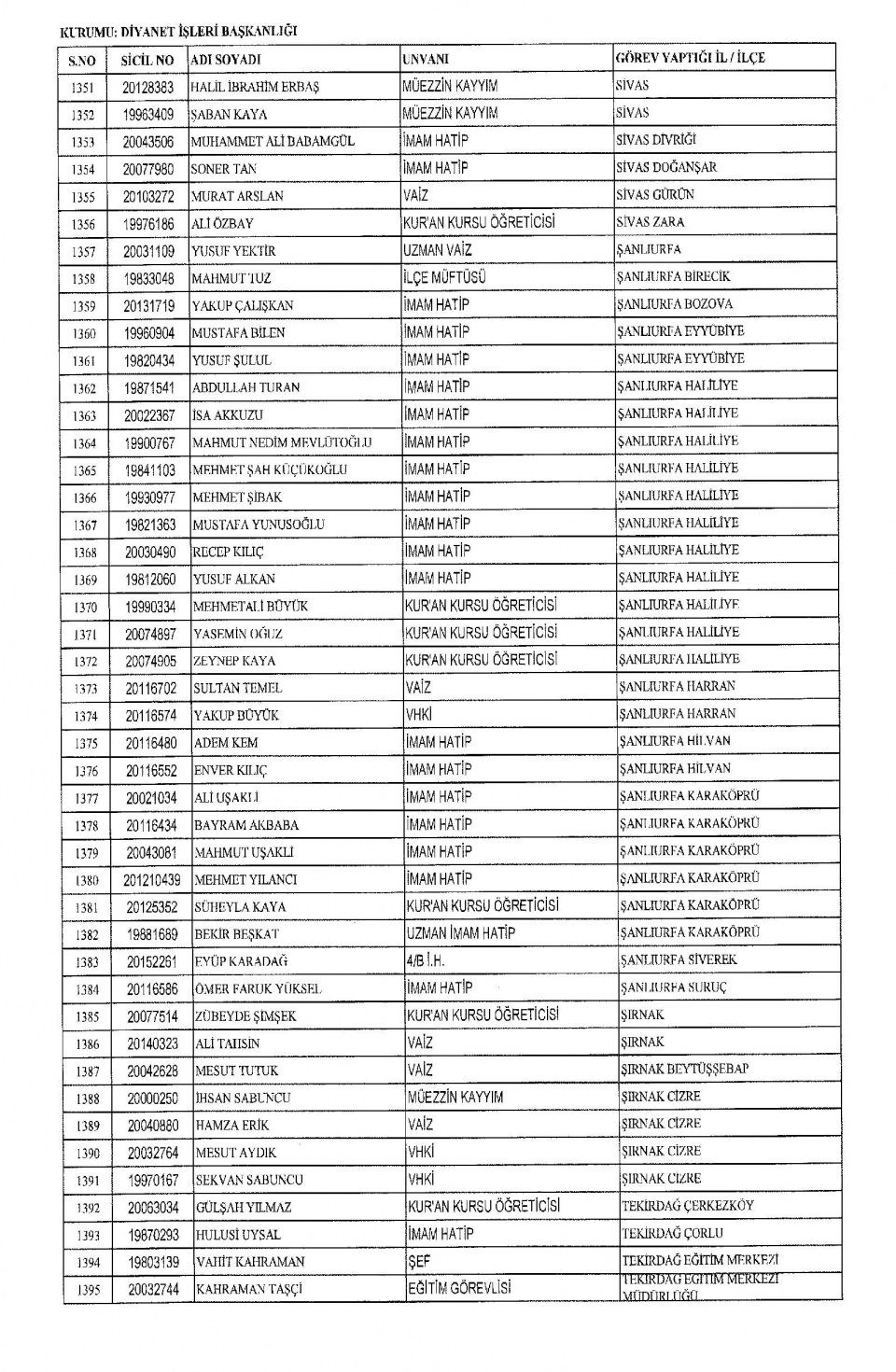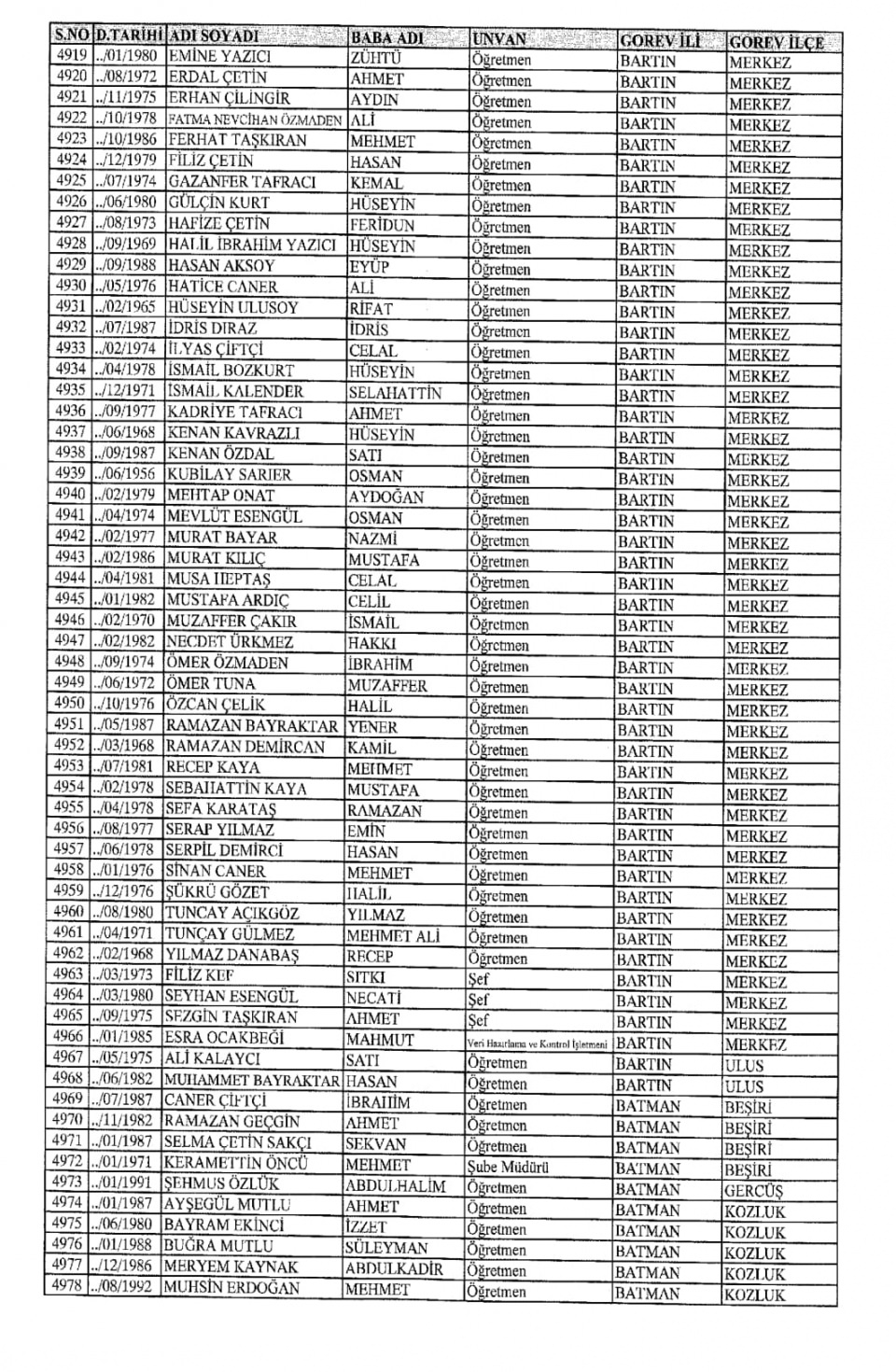 Kamudaki işlerine son verilenlerden 28 bin 163'ü Milli Eğitim Bakanlığı, 2 bin 18'i Sağlık Bakanlığı ve bağlı kuruluşları, 733'ü Gıda, Tarım ve Hayvancılık Bakanlığı ve bağlı kuruluşları, bin 519'u Diyanet İşleri Başkanlığı, 439'u Aile ve Sosyal Politikalar Bakanlığı personelinden oluşuyor.