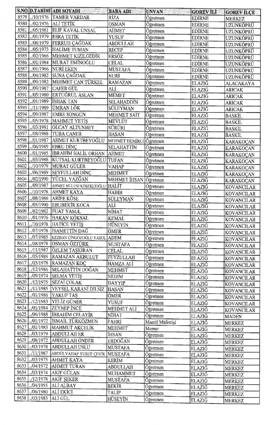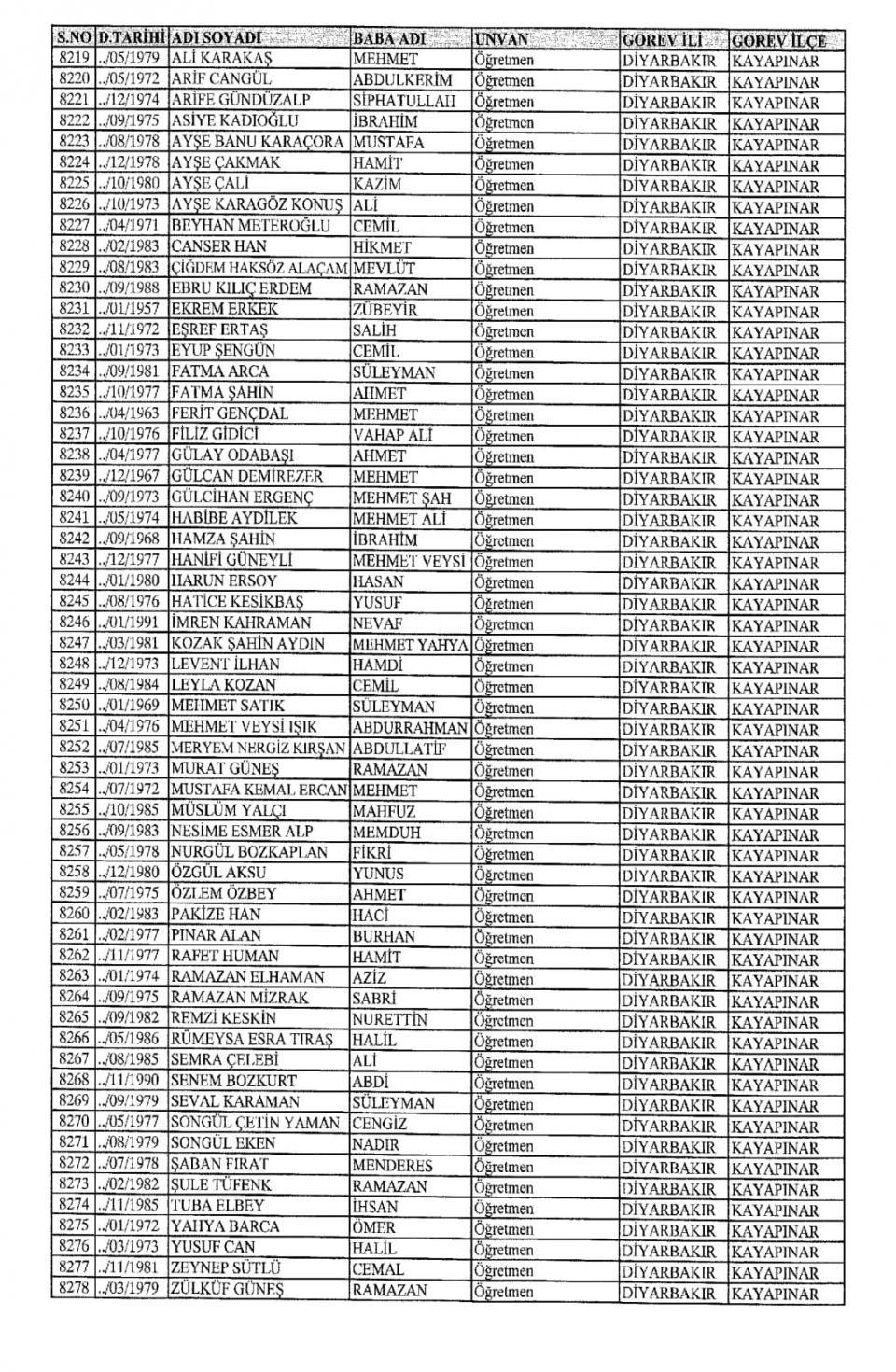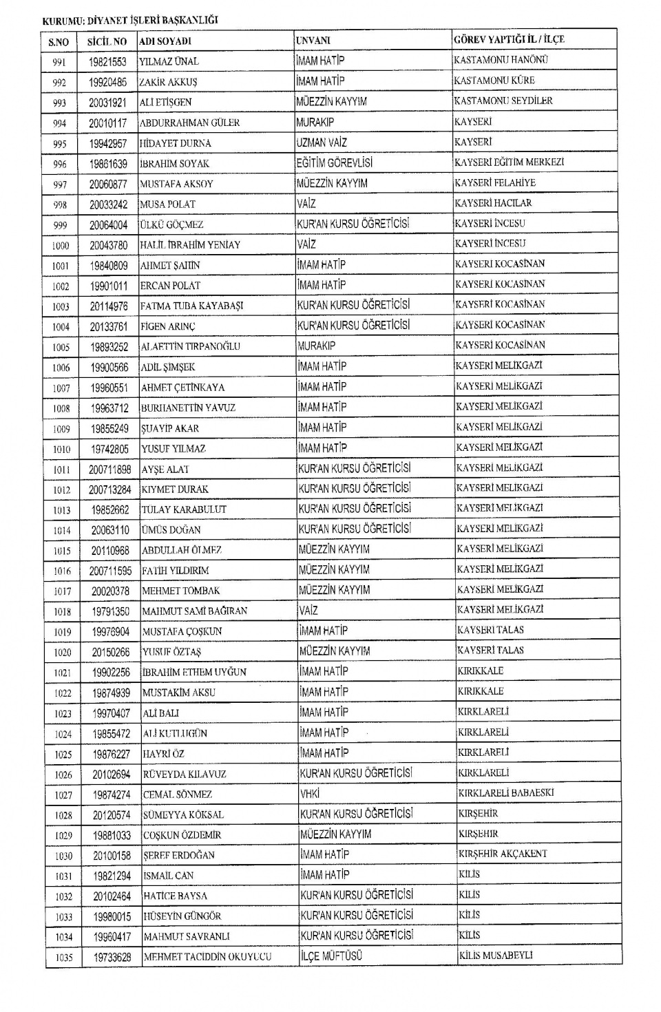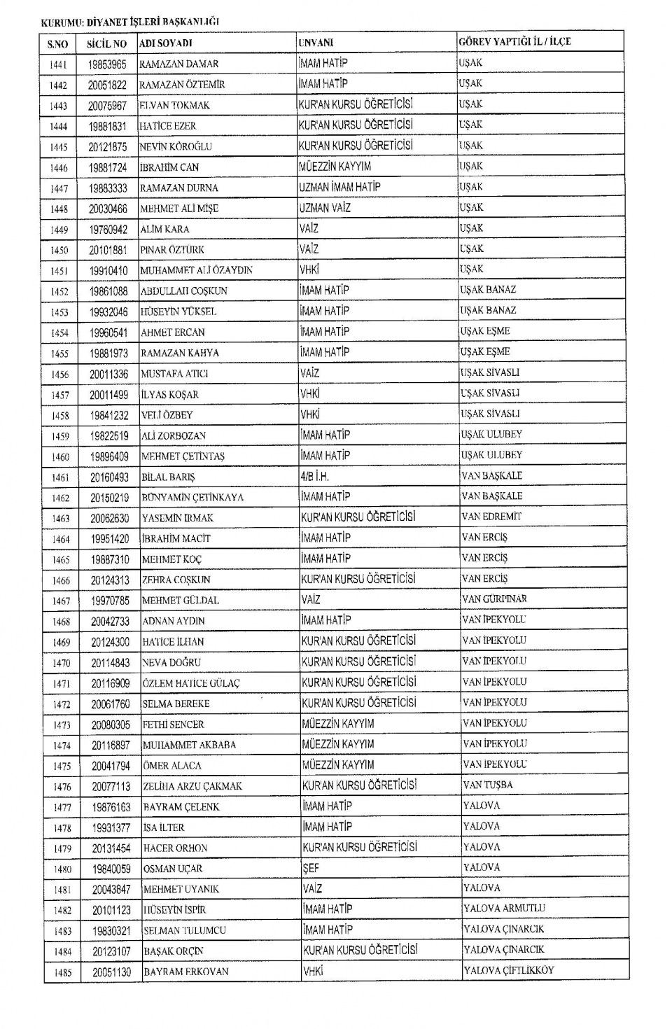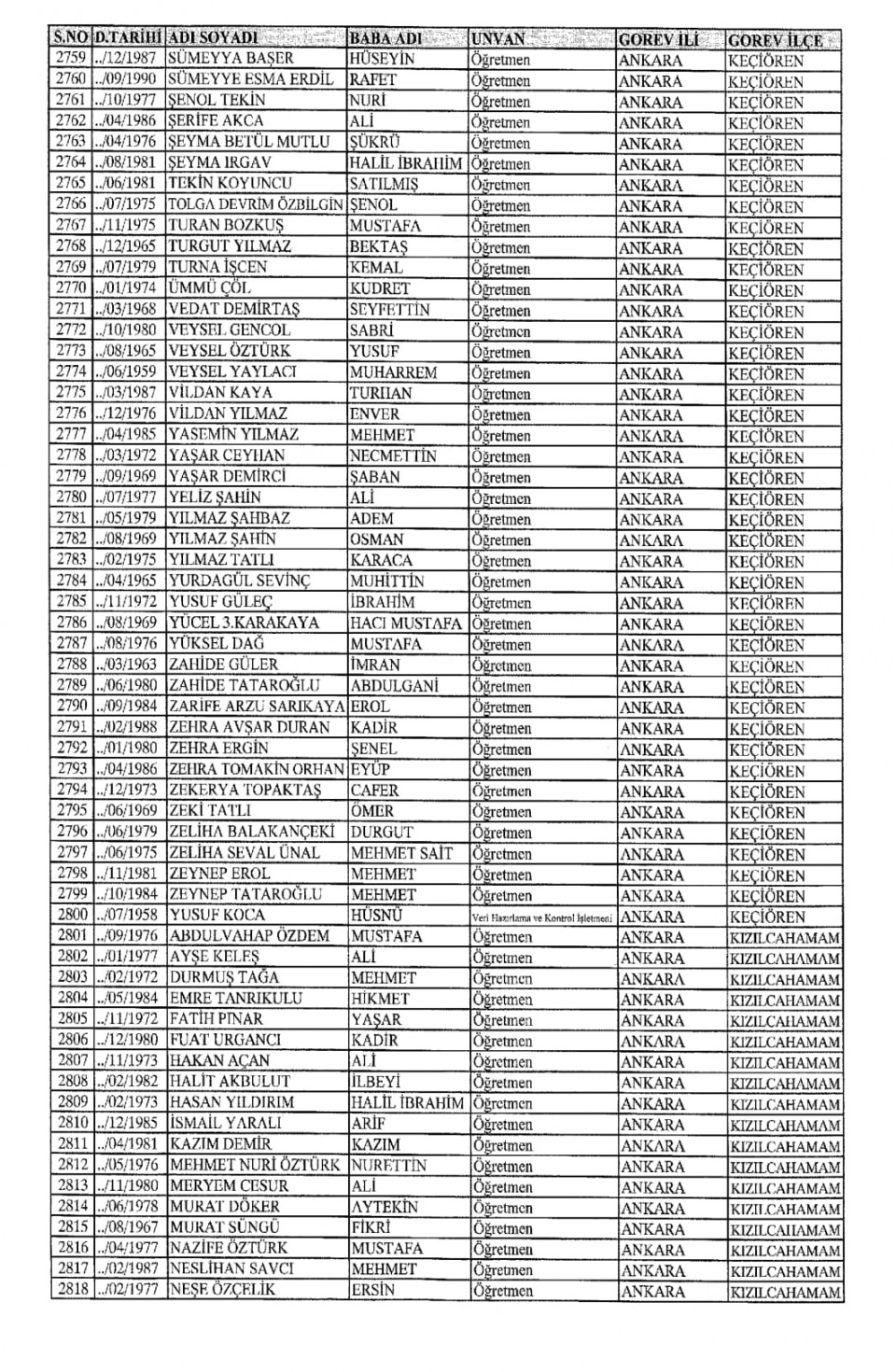 Kamudaki işlerine son verilenlerden 28 bin 163'ü Milli Eğitim Bakanlığı, 2 bin 18'i Sağlık Bakanlığı ve bağlı kuruluşları, 733'ü Gıda, Tarım ve Hayvancılık Bakanlığı ve bağlı kuruluşları, bin 519'u Diyanet İşleri Başkanlığı, 439'u Aile ve Sosyal Politikalar Bakanlığı personelinden oluşuyor.