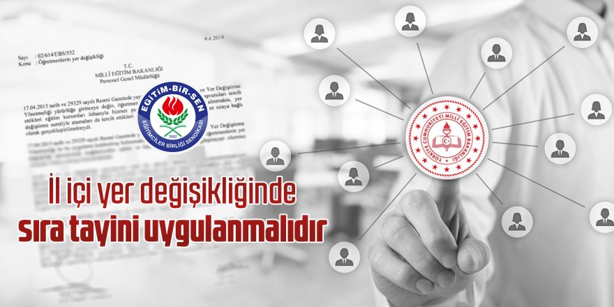 İl içi yer değişikliğinde sıra tayini uygulanmalıdır