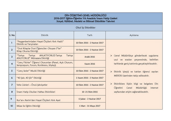 İmam hatip okulları etkinlik takvimi İmam hatip okulları etkinlik takvimi Etiketler : İmam hatip okulları etkinlik takvimi