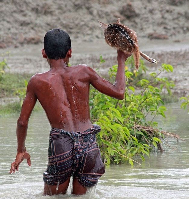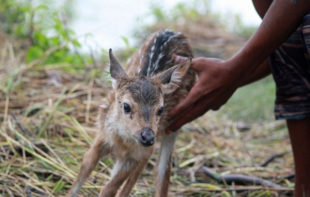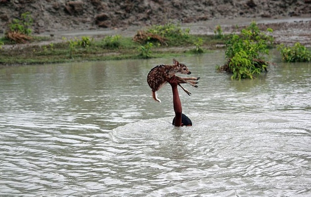 Bangladeş, Noakhali'de nehir sularına bir geyik yavrusunun düştüğünü gören Bilal isimli çocuk, hiç tereddüt etmeden sulara atladı.