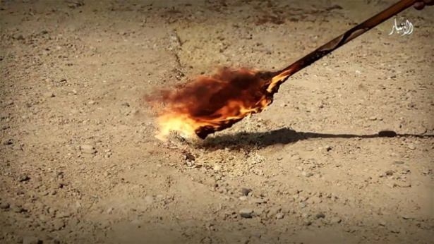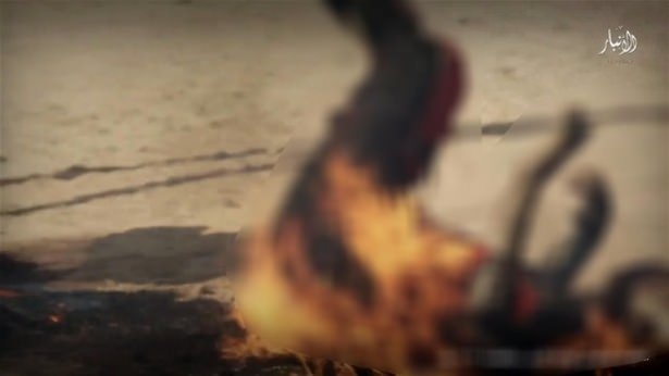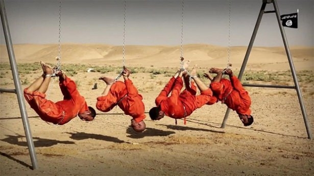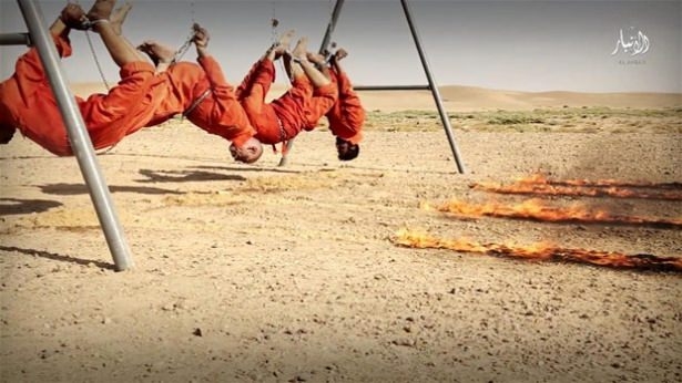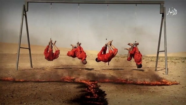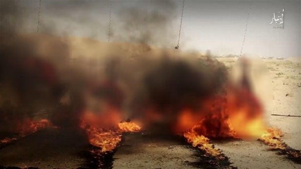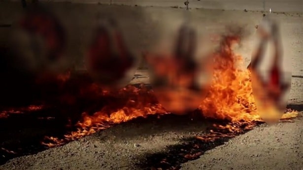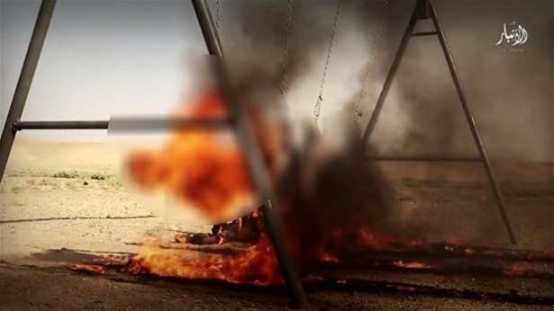 Sosyal medyadan yayılan "Onları Sana Verdikleri Zarar Kadar Cezalandır" isimli yeni IŞİD videosunda, terör örgütünün salıncak tipi düzeneğe astığı 4 kişiyi yakarak öldürdüğü görülüyor.