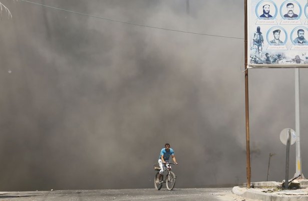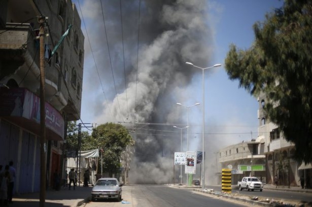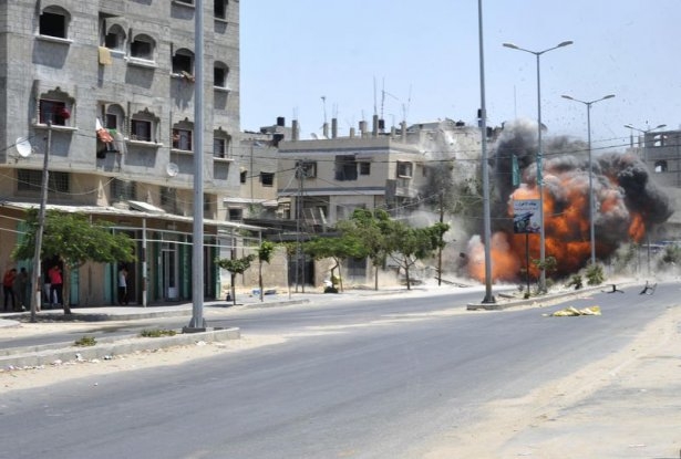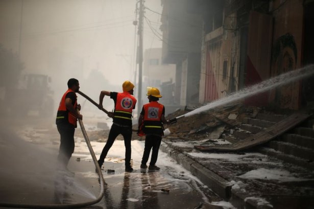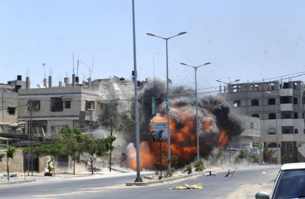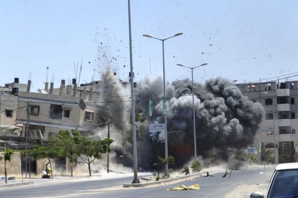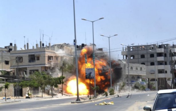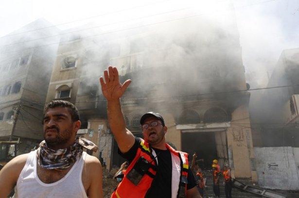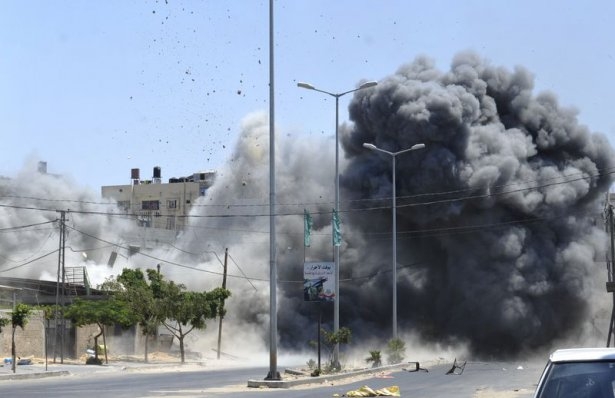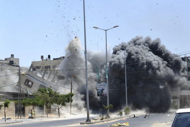 İsrail'in Gazze'ye şiddetini arttırarak devam ettirdiği saldırılarda, Ez-Zeytun Mahallesi'nde bulunan Dahduh ailesine ait bir bina isabet aldı.Saniye saniye görüntülenen saldırıda roketin binaya isabet anı fotoğraf karesine yansıdı.