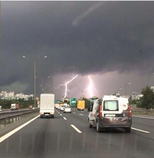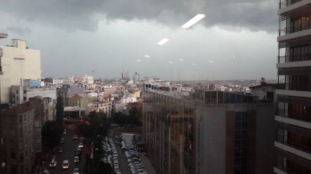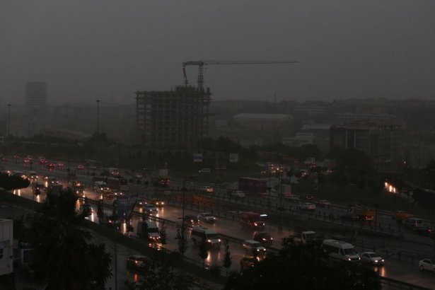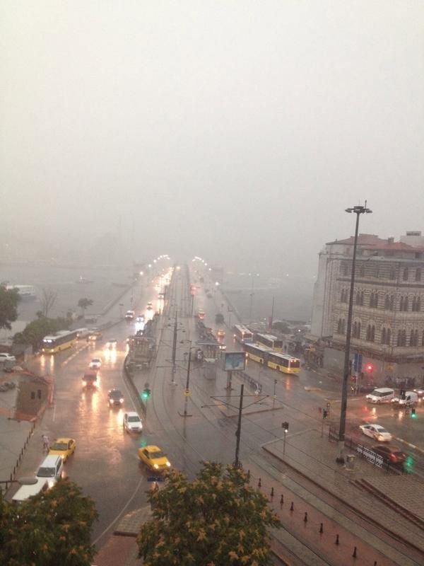 İstanbul'da meteorolojinin uyarısının ardından şiddetli yağmur başladı. Fırtına şeklinde yağan yağmur nedeniyle gökyüzü karanlığa gömüldü. İşte fırtına sonrası İstanbul...