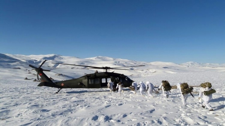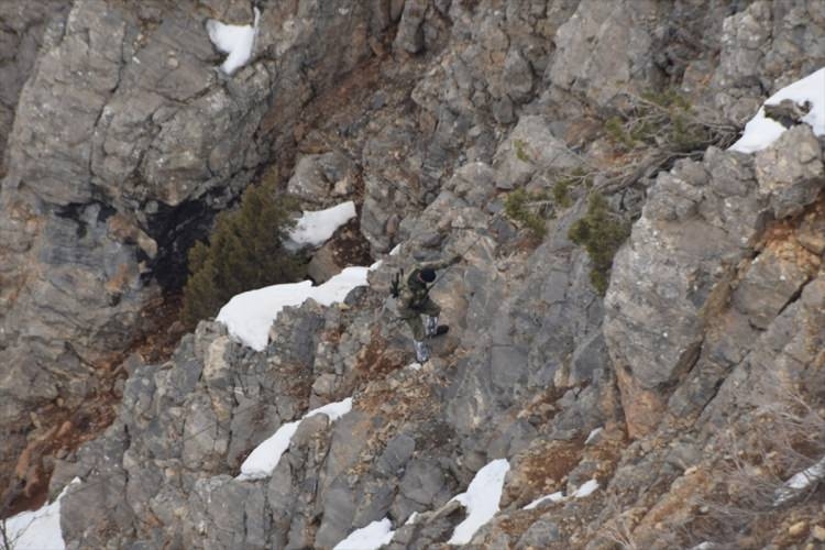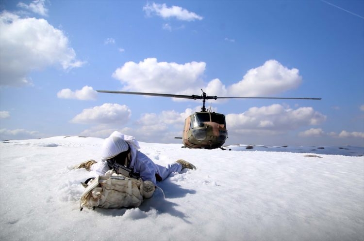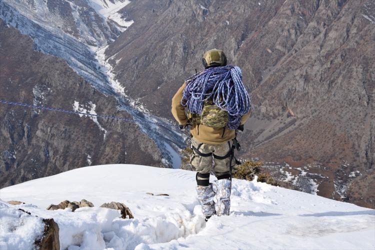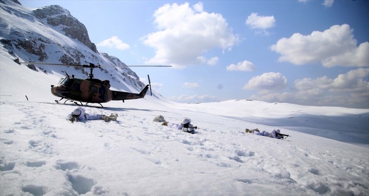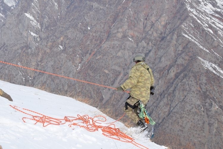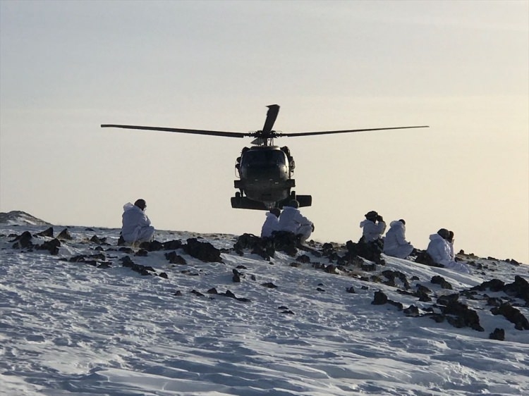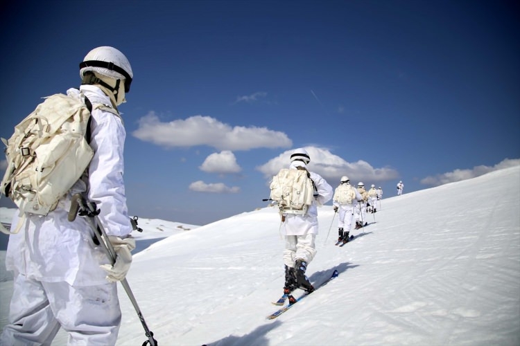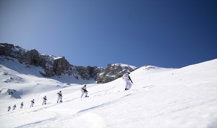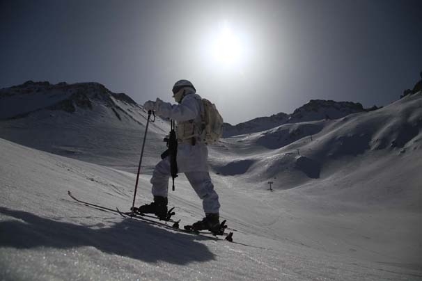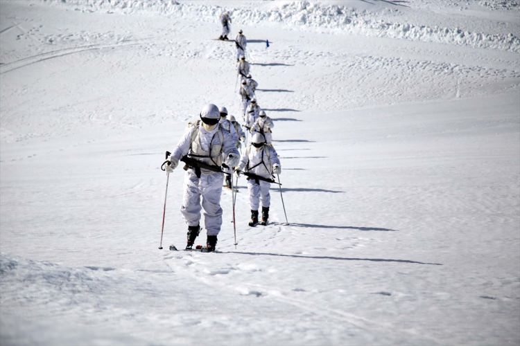 Tatbikat kapsamında helikopterlerle dağın 2 bin 600 metrelik doruk noktasına bırakılan komando adayları, kurs boyunca öğrendikleri ileri kayakçılık ve dağcılık teknikleriyle, senaryo gereği "düşman" hatlarına sızarak karşılarındakileri hiç ummadıkları yerden yok etti.