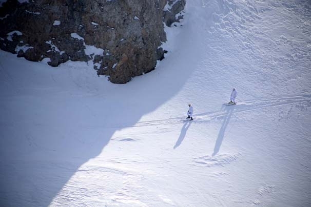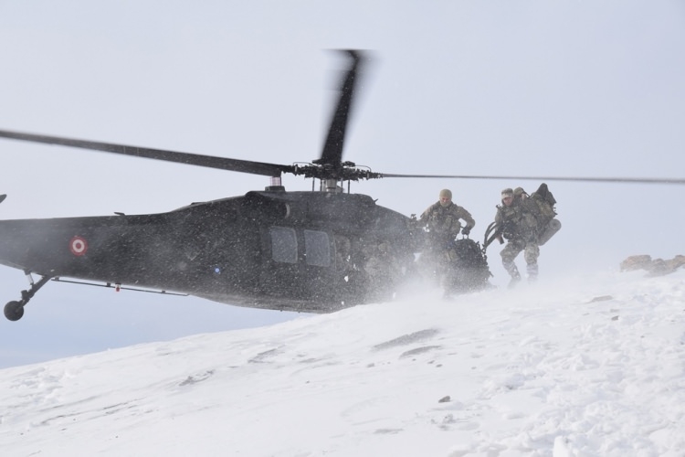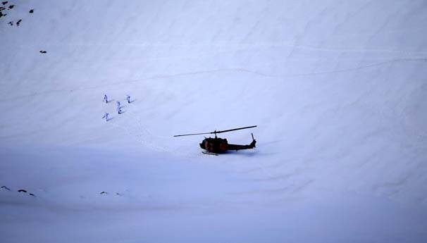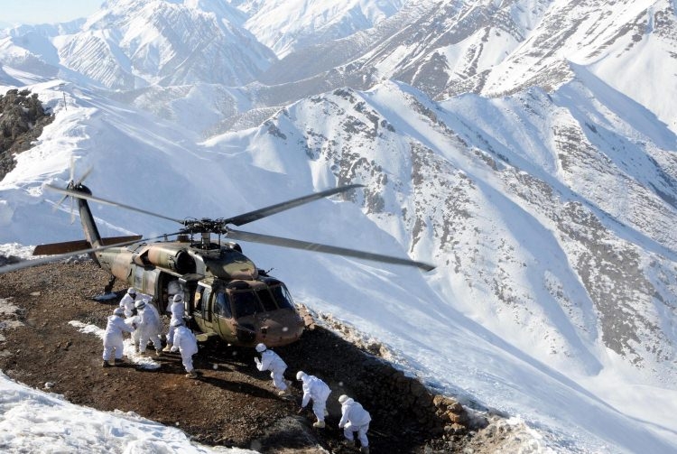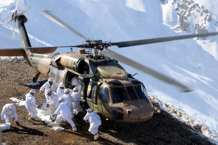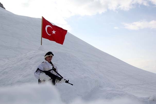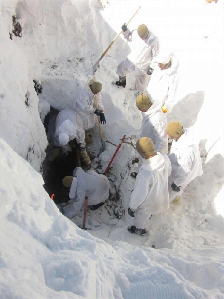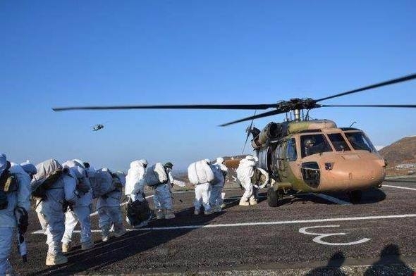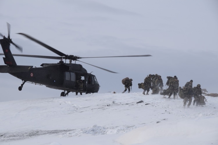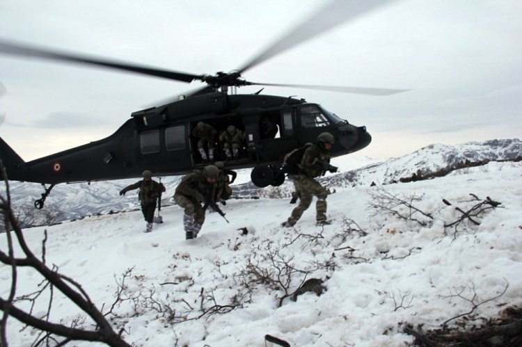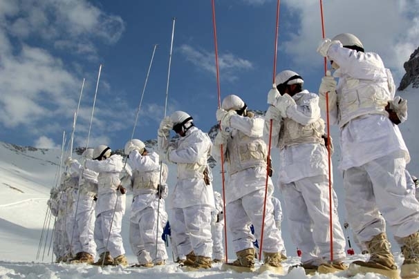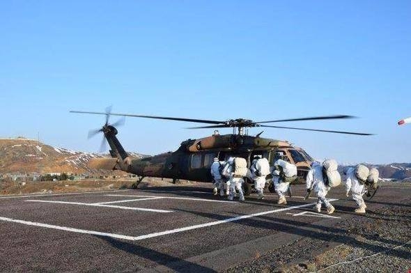 Tatbikat kapsamında helikopterlerle dağın 2 bin 600 metrelik doruk noktasına bırakılan komando adayları, kurs boyunca öğrendikleri ileri kayakçılık ve dağcılık teknikleriyle, senaryo gereği "düşman" hatlarına sızarak karşılarındakileri hiç ummadıkları yerden yok etti.