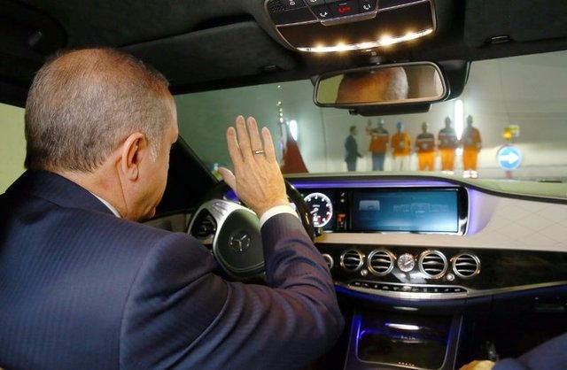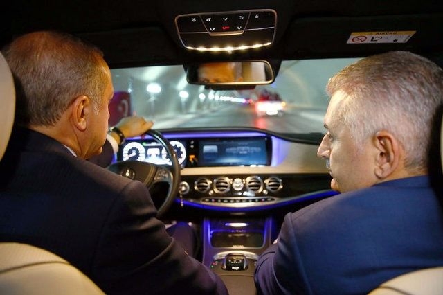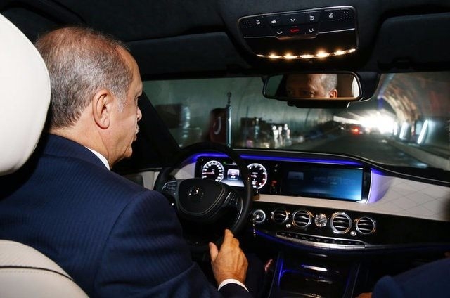 Avrasya Tüneli'nden ilk geçişi Avrupa'dan Asya Kıtası'na Cumhurbaşkanı Recep Tayyip Erdoğan makam otomobili ile gerçekleştirdi. Erdoğan'ın kullandığı makam otomobilinde yanında Başbakan Binali Yıldırım'ın bulunduğu görüldü