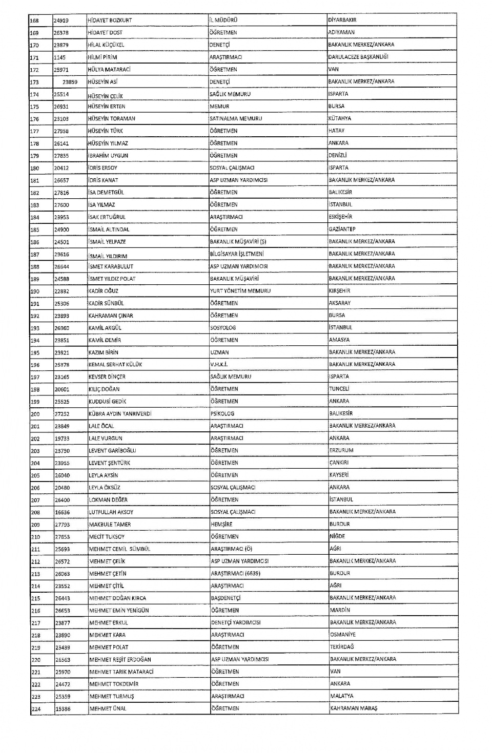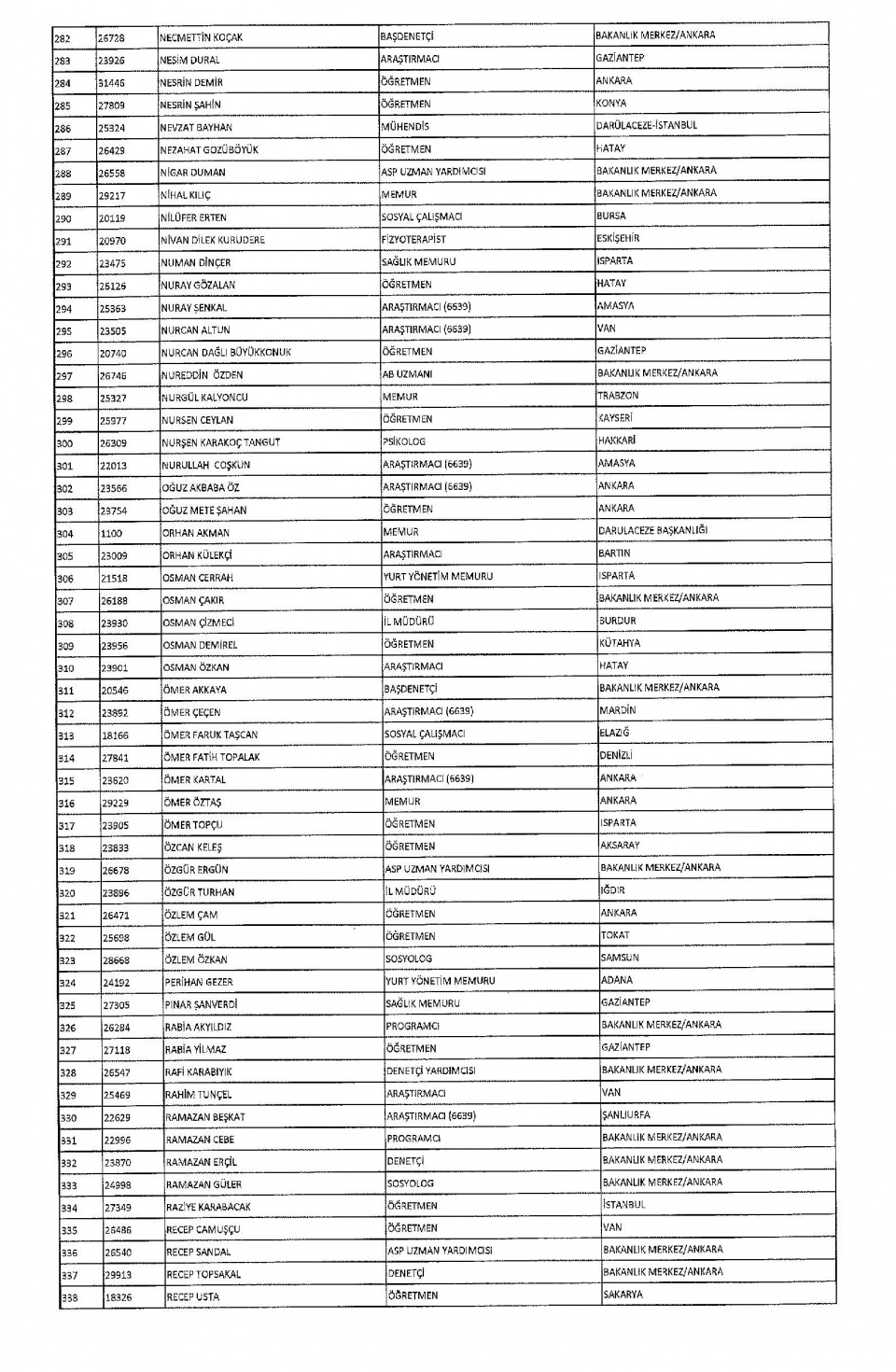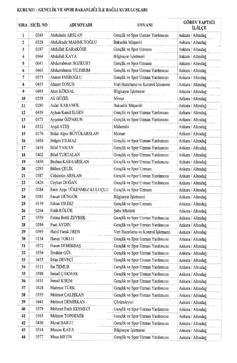 Kamudaki işlerine son verilenlerden 28 bin 163'ü Milli Eğitim Bakanlığı, 2 bin 18'i Sağlık Bakanlığı ve bağlı kuruluşları, 733'ü Gıda, Tarım ve Hayvancılık Bakanlığı ve bağlı kuruluşları, bin 519'u Diyanet İşleri Başkanlığı, 439'u Aile ve Sosyal Politikalar Bakanlığı personelinden oluşuyor.