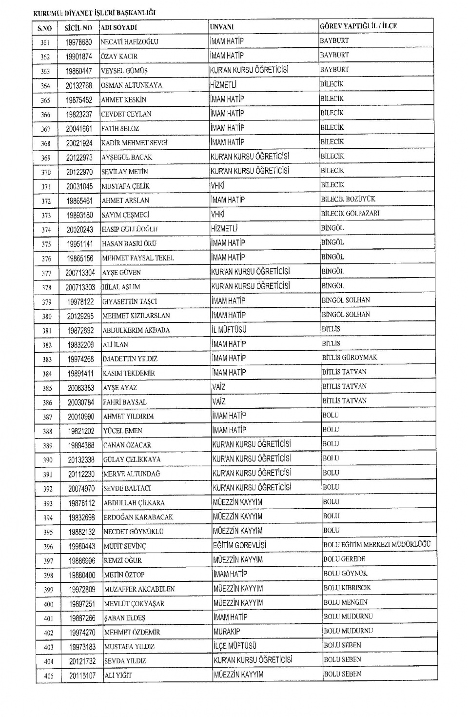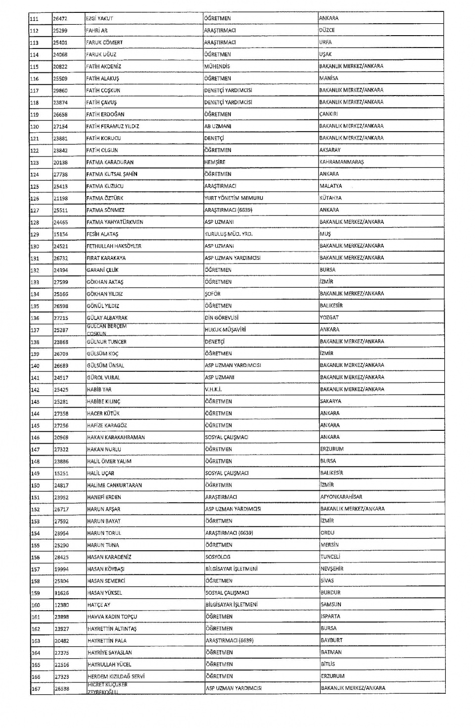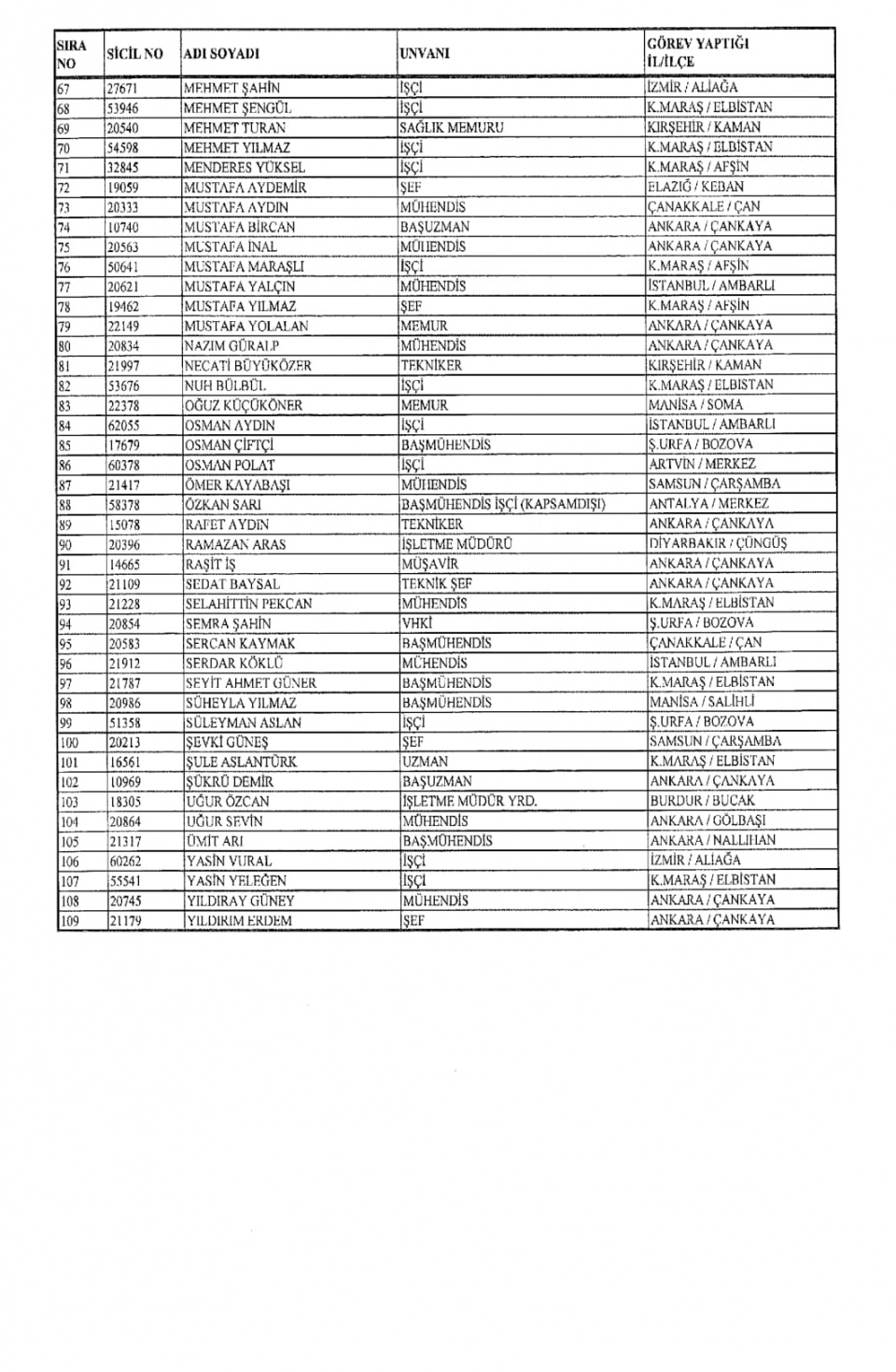 Kamudaki işlerine son verilenlerden 28 bin 163'ü Milli Eğitim Bakanlığı, 2 bin 18'i Sağlık Bakanlığı ve bağlı kuruluşları, 733'ü Gıda, Tarım ve Hayvancılık Bakanlığı ve bağlı kuruluşları, bin 519'u Diyanet İşleri Başkanlığı, 439'u Aile ve Sosyal Politikalar Bakanlığı personelinden oluşuyor.