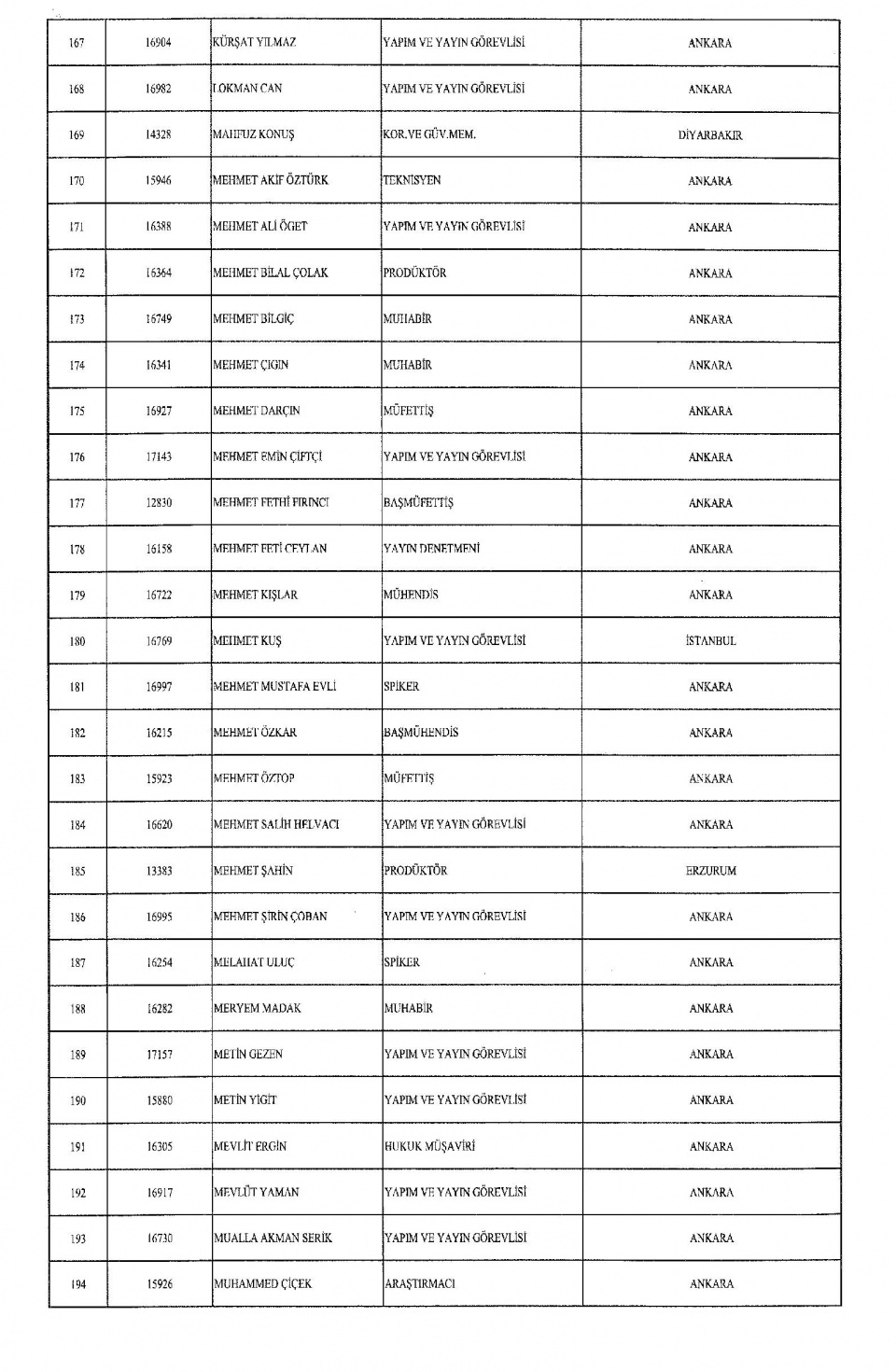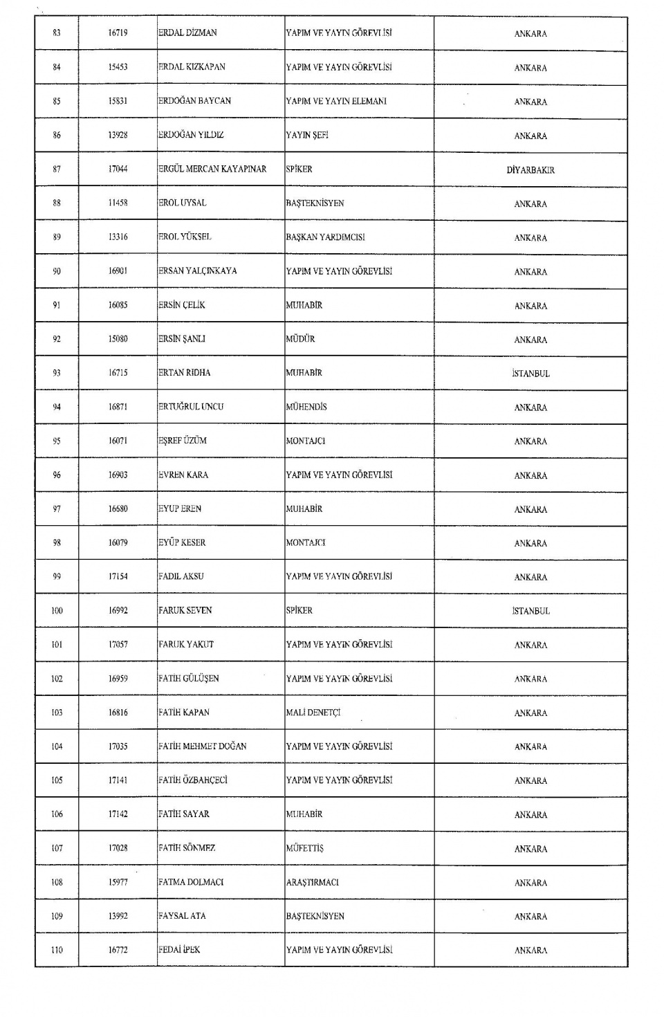 Resmi Gazete'de yer alan 672 sayılı KHK ile terör örgütlerine veya Milli Güvenlik Kurulunca devletin milli güvenliğine karşı faaliyette bulunduğuna karar verilen yapı, oluşum veya gruplara üyeliği, mensubiyeti veya iltisakı yahut bunlarla irtibatı olan kamu kurumlarındaki çok sayıda çalışanın görevlerine son verildi.