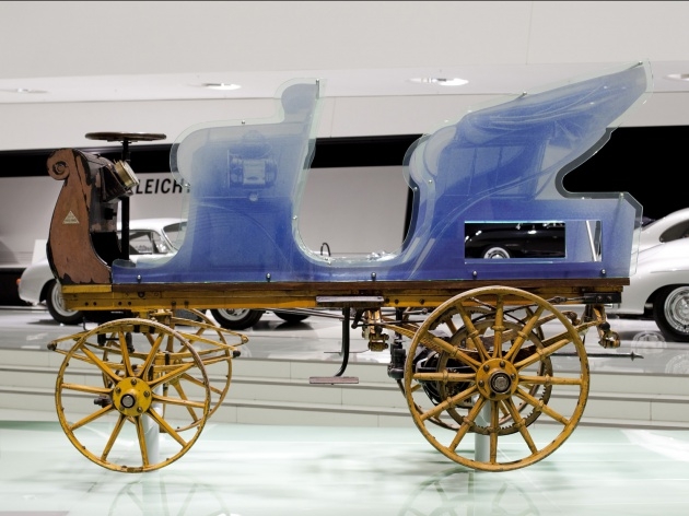 Şirketin kurucusu Ferdinand Porsche’nin, 22 yaşındayken ilk tasarladığı araç olan Egger-Lohner, ilk bakışta bir at arabasını andırsa da aslında döneminin en son teknolojisini üzerinde taşıyor.