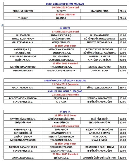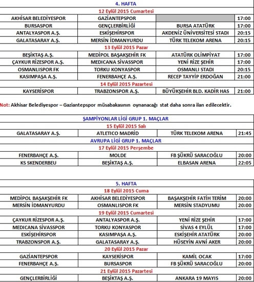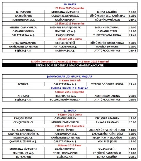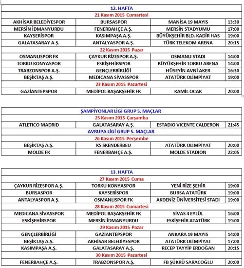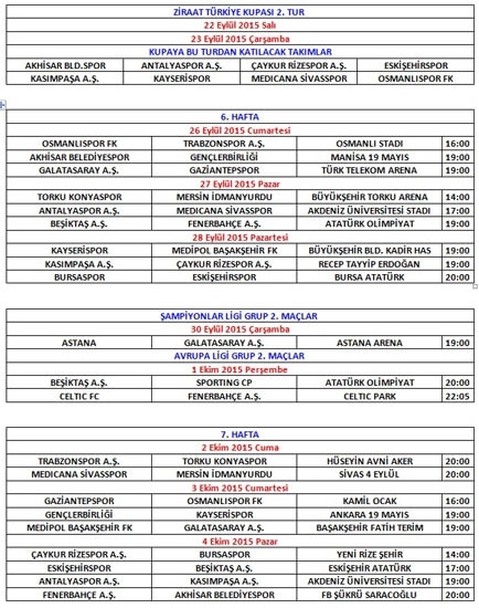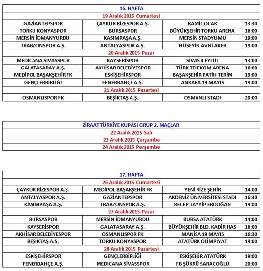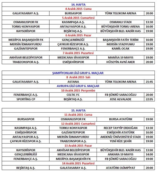 Türkiye Futbol Federasyonu, Spor Toto Süper Lig'de ilk yarıda kalan 14 haftanın fikstürünü açıkladı.