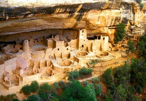 Mesa Verde Milli Parkı'nda Pueblo halkı tarafından yüksek bir vadiye inşa edilen bir köyün kalıntıları yer alır.