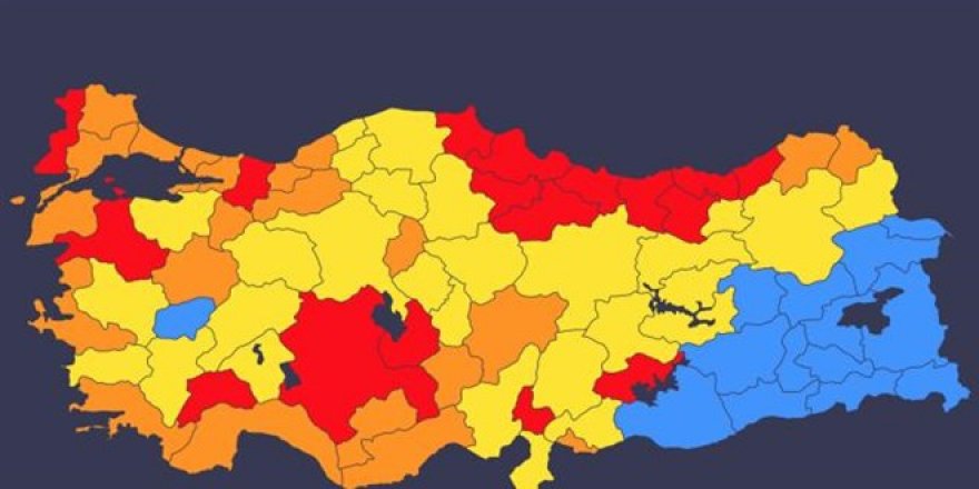 Kırmızı iller: Edirne, Balıkesir, Sakarya, Burdur, Konya, Aksaray, Sinop, Samsun, Amasya, Tokat, Ordu, Giresun, Gümüşhane, Trabzon, Rize, Osmaniye ve Adıyaman.