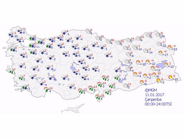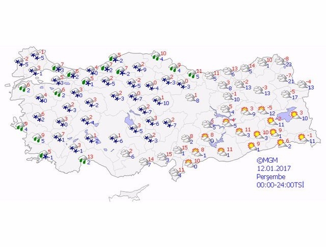 Öğle saatlerinde kar yağışının yeniden başlaması ve akşam saatlerine kadar da molalarla devam etmesi bekleniyor. Akşam lodos yönüne dönmesi beklenen rüzgarın güneyden taşıyacağı ılık hava ile sıcaklıkların birkaç derece artması bekleniyor.