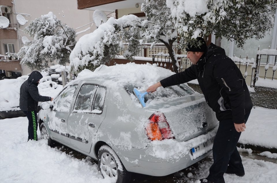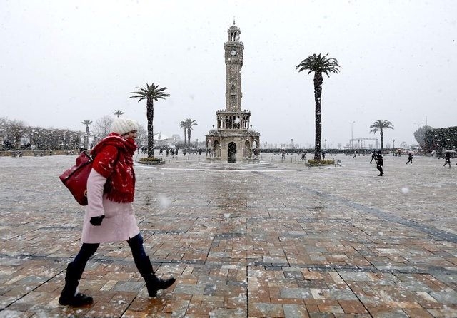 Hava sıcaklığının mevsim normallerinin altında seyrettiği İzmir'de kar yağışı etkili oluyor. Sabah saatlerinde karla karışık yağmur olarak görülen yağış, bir süre sonra kara döndü. Lapa lapa yağan kar, yüksek kesimlerin yanı sıra şehir merkezini de beyaz örtüyle kapladı.