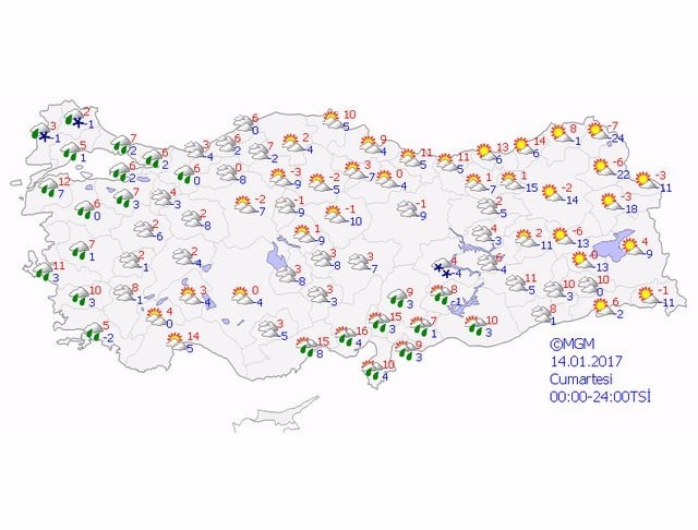 Güney Ege ve Akdeniz kıyılarında yağmur ve sağanak, yağış alan diğer yerlerde karla karışık yağmur ve kar şeklinde görülecek yağışların, Muğla, Antalya ve Mersin'in kıyı ve alçak kesimlerinde kuvvetli ve yer yer çok kuvvetli sağanak ve gök gürültülü sağanak yağış, Muğla merkez ile iç ve yüksek kesimleri, Antalya ve Mersin'in iç ve yüksek kesimleri (Rakımı 800 metre ve üzeri olan yerler), Isparta, Burdur ile Konya'nın güneybatı ve Karaman'ın güney ilçelerinde yoğun kar şeklinde olması bekleniyor.