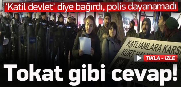 'Devlet katil değildir' diyen polis müdürü ile kadın arasında kısa süreli bir tartışma yaşandı. 'Ben mi kurşun kullanıyorum ben mi katlettim o kadar insanı' diyen kadına polis müdürü ''Polis, asker şehit oluyor. Onları şehit edenler katil'' diyerek dağılmalarını istedi. Yaşanan tartışmanın ardından grup polis kontrolünde bölgeden uzaklaştırıldı.