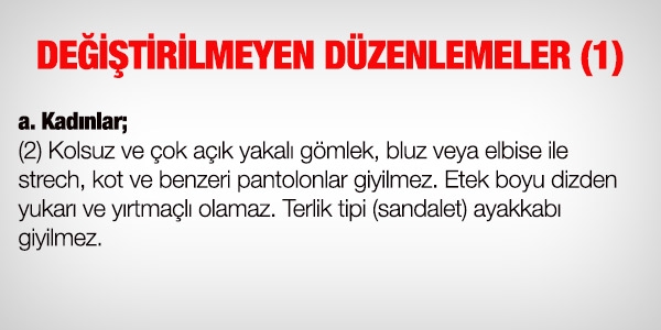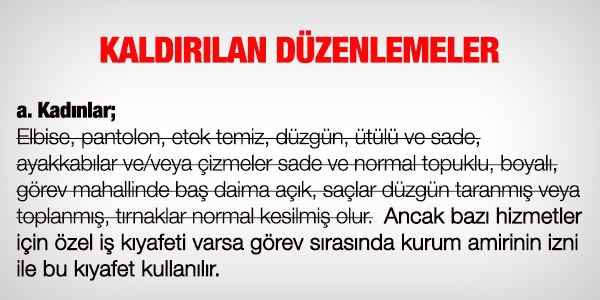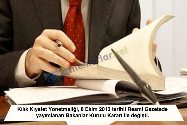 Kılık Kıyafet Yönetmeliği, 8 Ekim 2013 tarihli Resmi Gazetede yayımlanan Bakanlar Kurulu Kararı ile değişti.