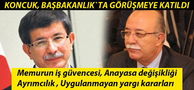 Genel Başkan İsmail Koncuk, 11 Kasım'da Başbakanlığın bulunduğu Çankaya Köşkünde, Başbakan Sn. Ahmet Davutoğlu, bir çok bakan ve sivil toplum örgütleri ve sendika başkanlarının katılımı ile önemli bir toplantıya katıldı. Kamu çalışanlarının yaşadığı sıkıntıları bütün detaylarıyla Başbakan’a ileten Genel Başkan, ana hatları ile aşağıdaki konuları dile getirdi: