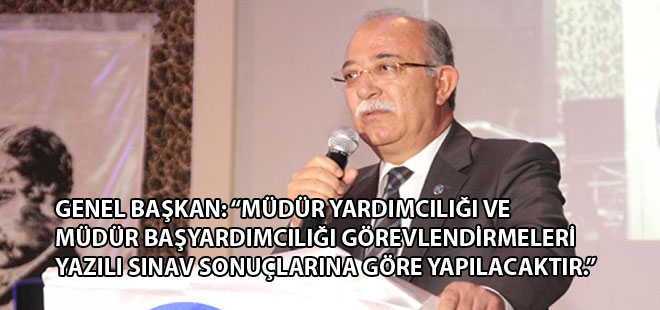 GENEL BAŞKAN: “MÜDÜR YARDIMCILIĞI VE MÜDÜR BAŞYARDIMCILIĞI GÖREVLENDİRMELERİ YAZILI SINAV SONUÇLARINA GÖRE YAPILACAKTIR.”