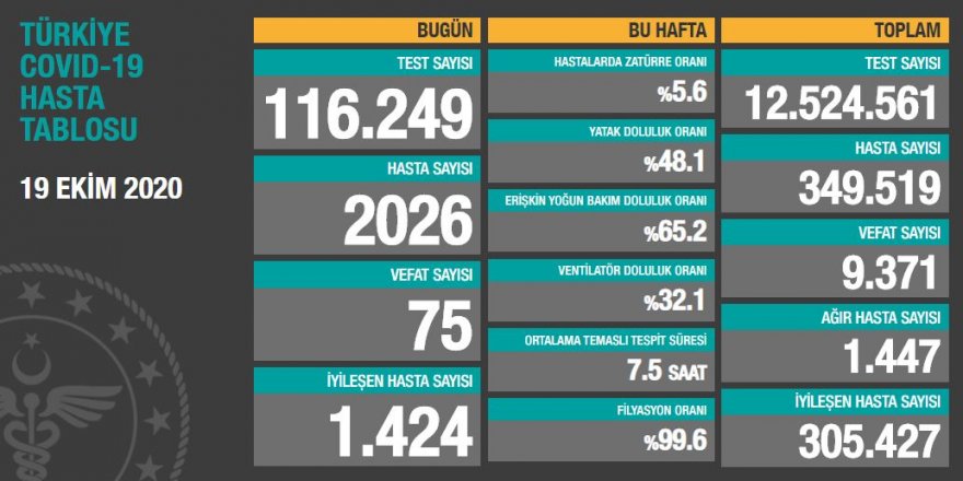 Sağlık Bakanlığı 19 Ekim 2020 tarihli verileri açıkladı.