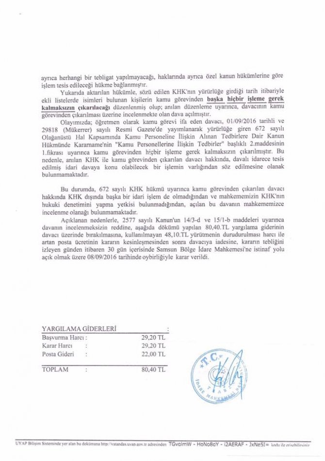 Mahkeme İhraç Kararını Verdi: İncelenmeksizin Red!