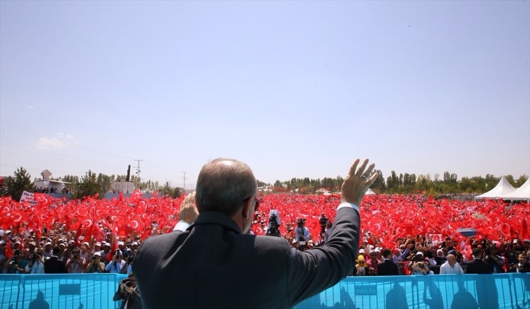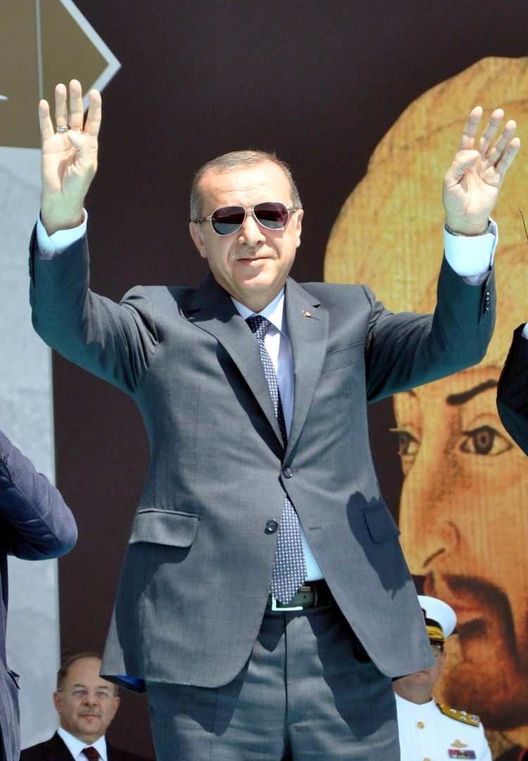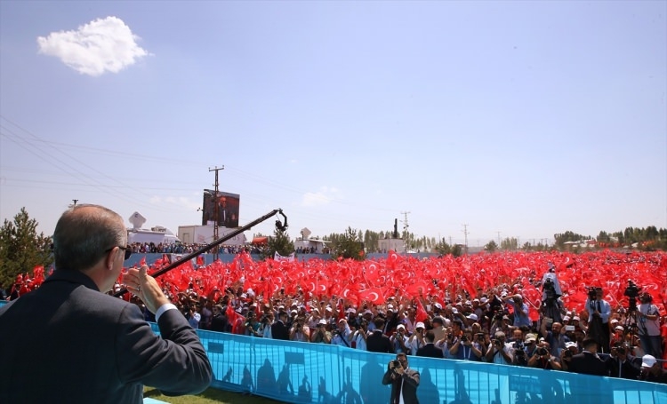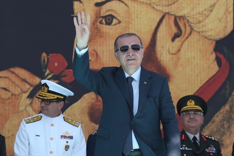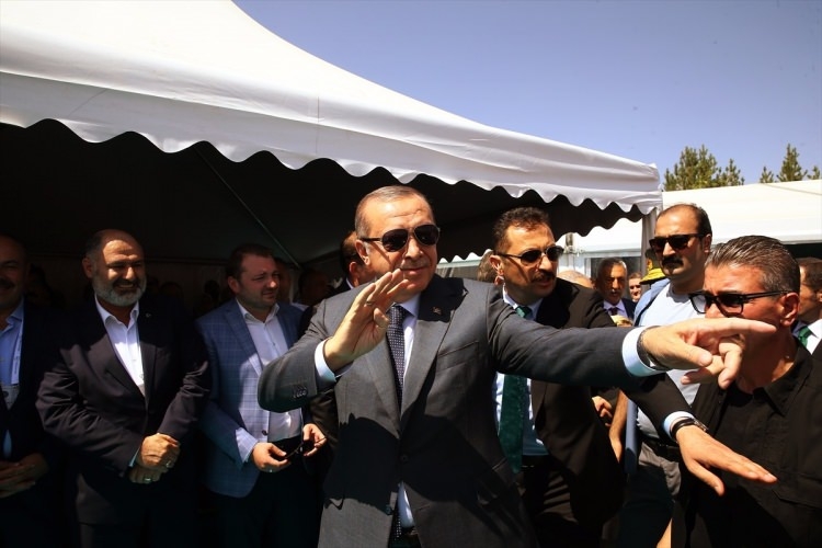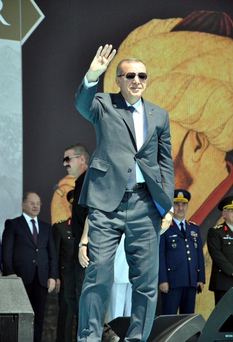 Beraberindeki bakanlar ve komutanlarla alana gelen Cumhurbaşkanı Erdoğan, halkı selamladı.