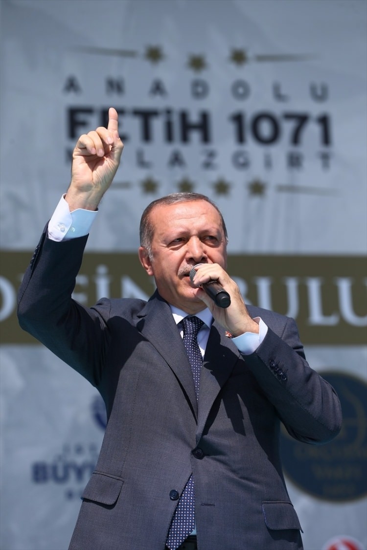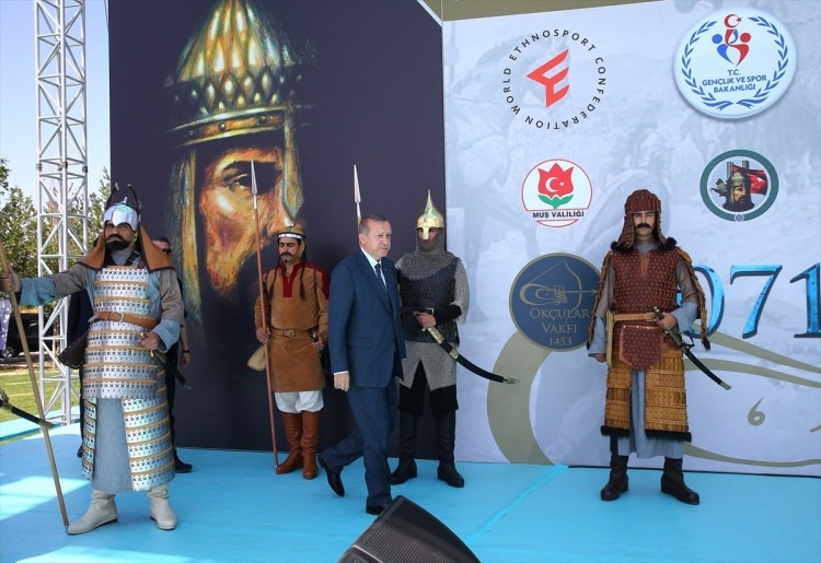 Cumhurbaşkanı Recep Tayyip Erdoğan, Anadolu'nun Fethi Malazgirt 1071 Anma Programı'na katıldı. Cumhurbaşkanı Erdoğan Kara Kuvvetleri Komutanı Orgeneral Yaşar Güler ve Hava Kuvvetleri Komutanı Orgeneral Hasan Küçükakyüz ile tokalaştı.