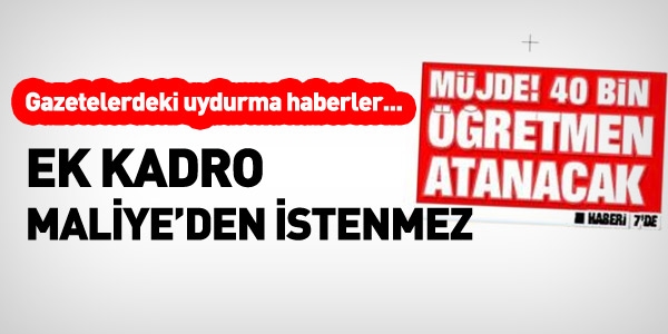 Bugün hem Takvim hem de Habertürk Gazetesinde, Şubat'ta 40 bin öğretmen ataması için, MEB'in Maliye'den ek atama izni isteyeceğine dair haberler yer aldı.
