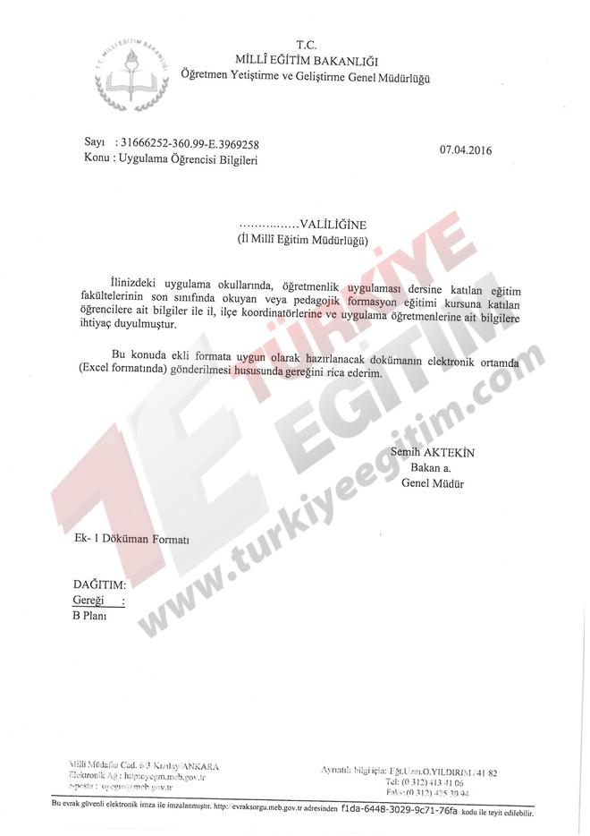 İşte konu hakkındaki MEB Öğretmen Yetiştirme ve Geliştirme Genel Müdürlüğü yazısı: