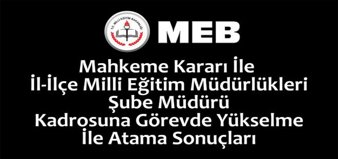 Mahkeme Kararı İle İl-İlçe Milli Eğitim Müdürlükleri Şube Müdürü Kadrosuna Görevde Yükselme İle Atama Sonuçları açıklandı.