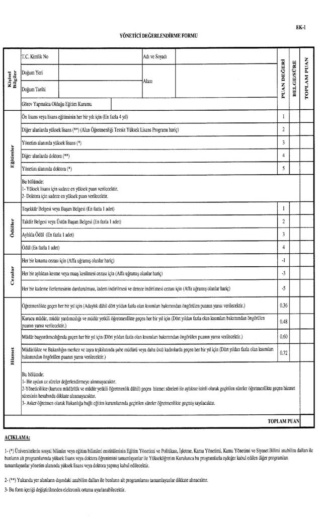 (5) Değerlendirme komisyonu; müdür adaylarını, Ek-1’de yer alan Yönetici Değerlendirme Formu üzerinden değerlendirmekle görevlidir.